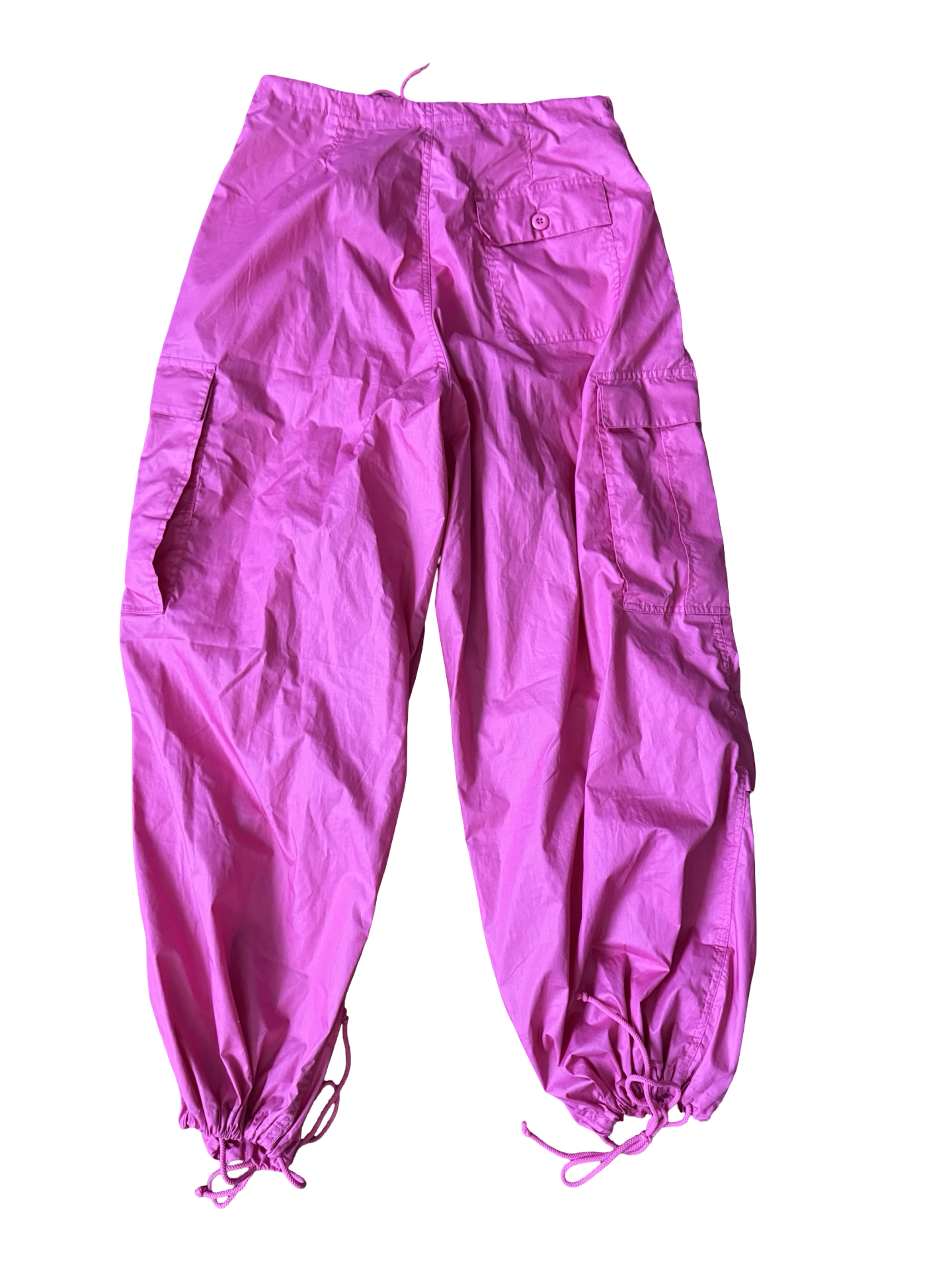 Bubblegum Pink Drawstring Cargo Parachute Pants Size S
