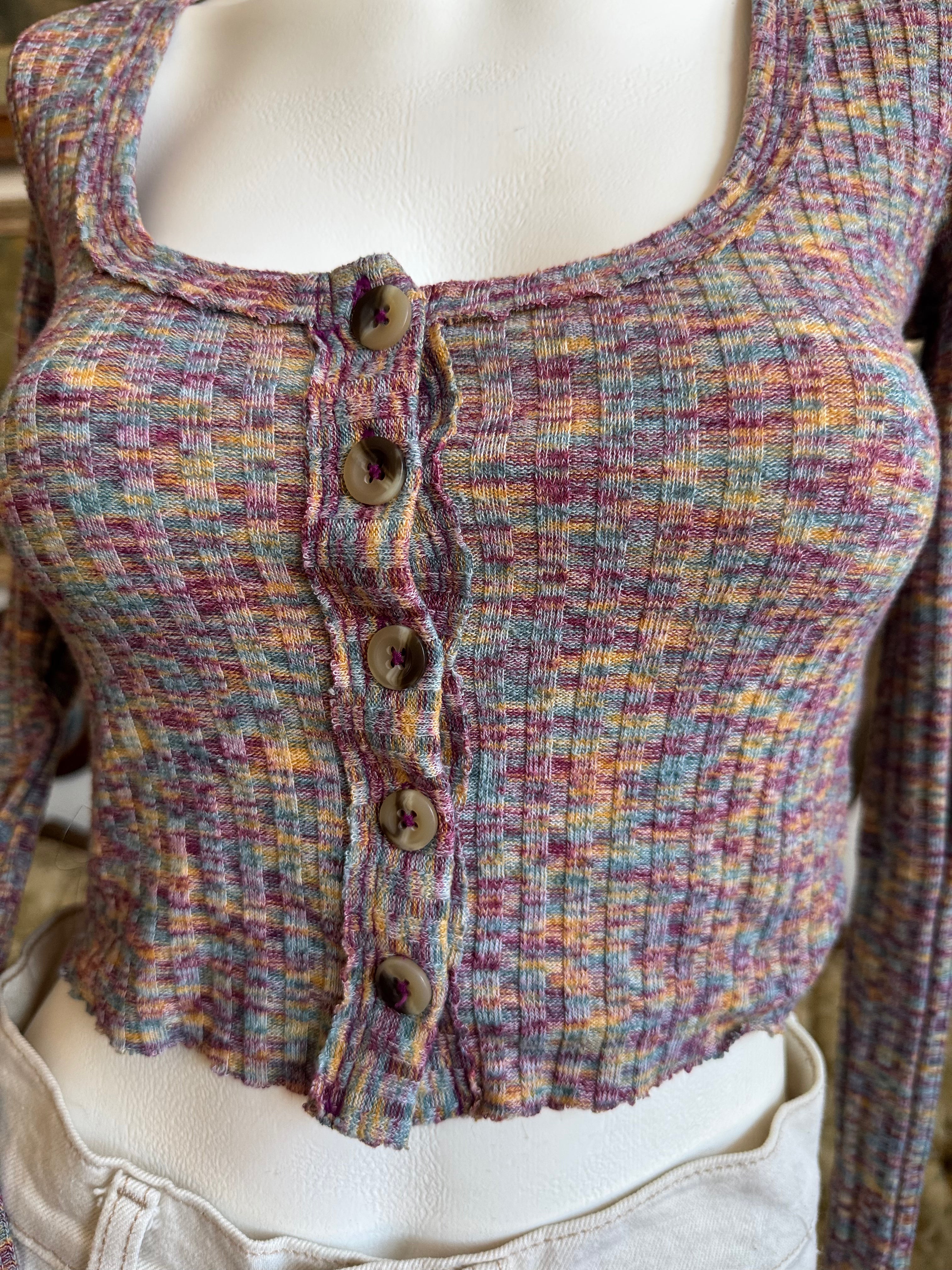 UO Ashton Ribbed Cropped Cardigan Top Size Small