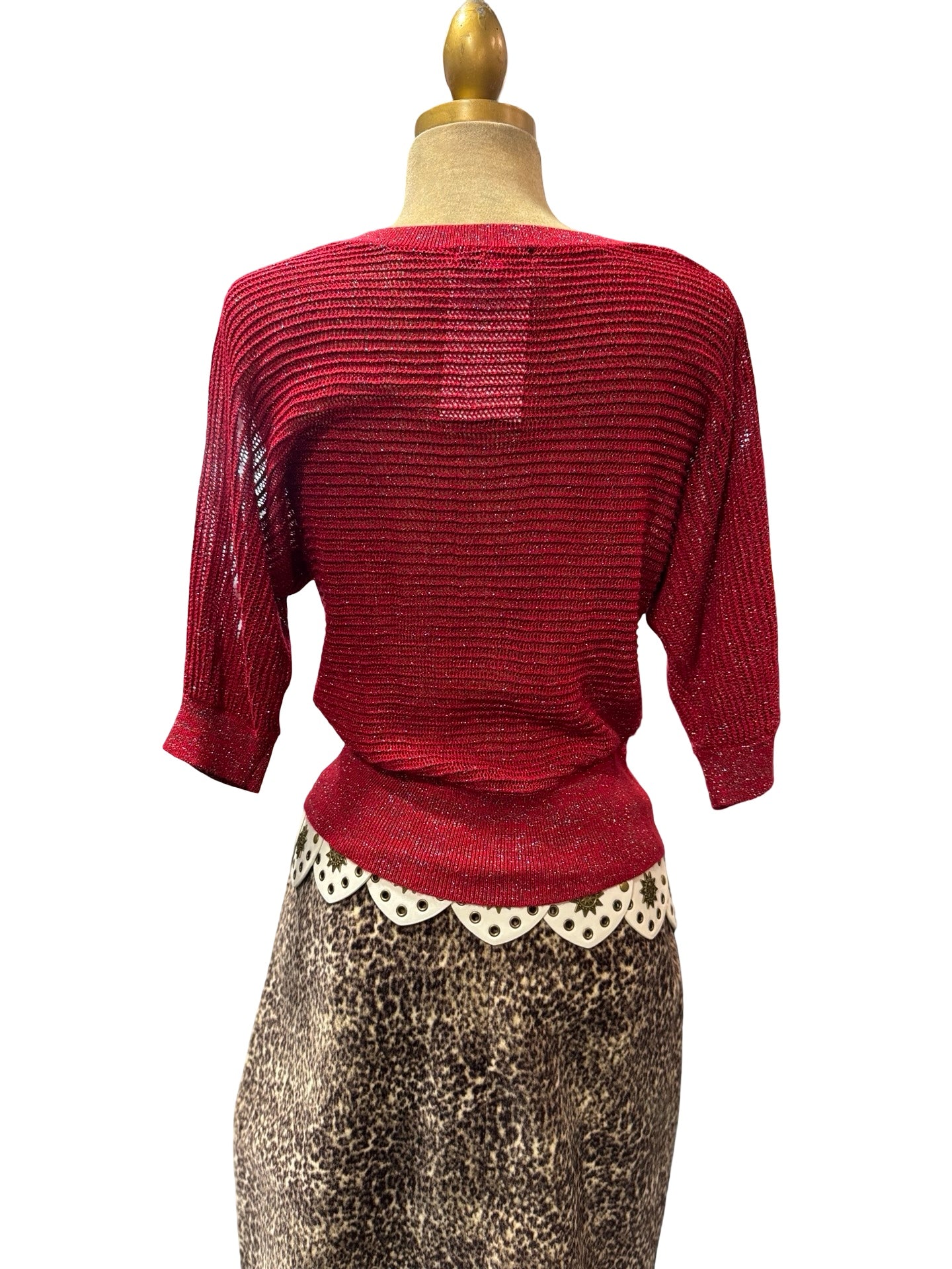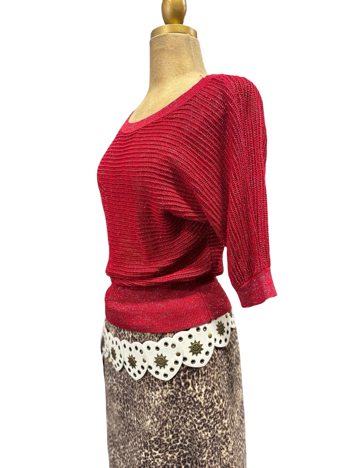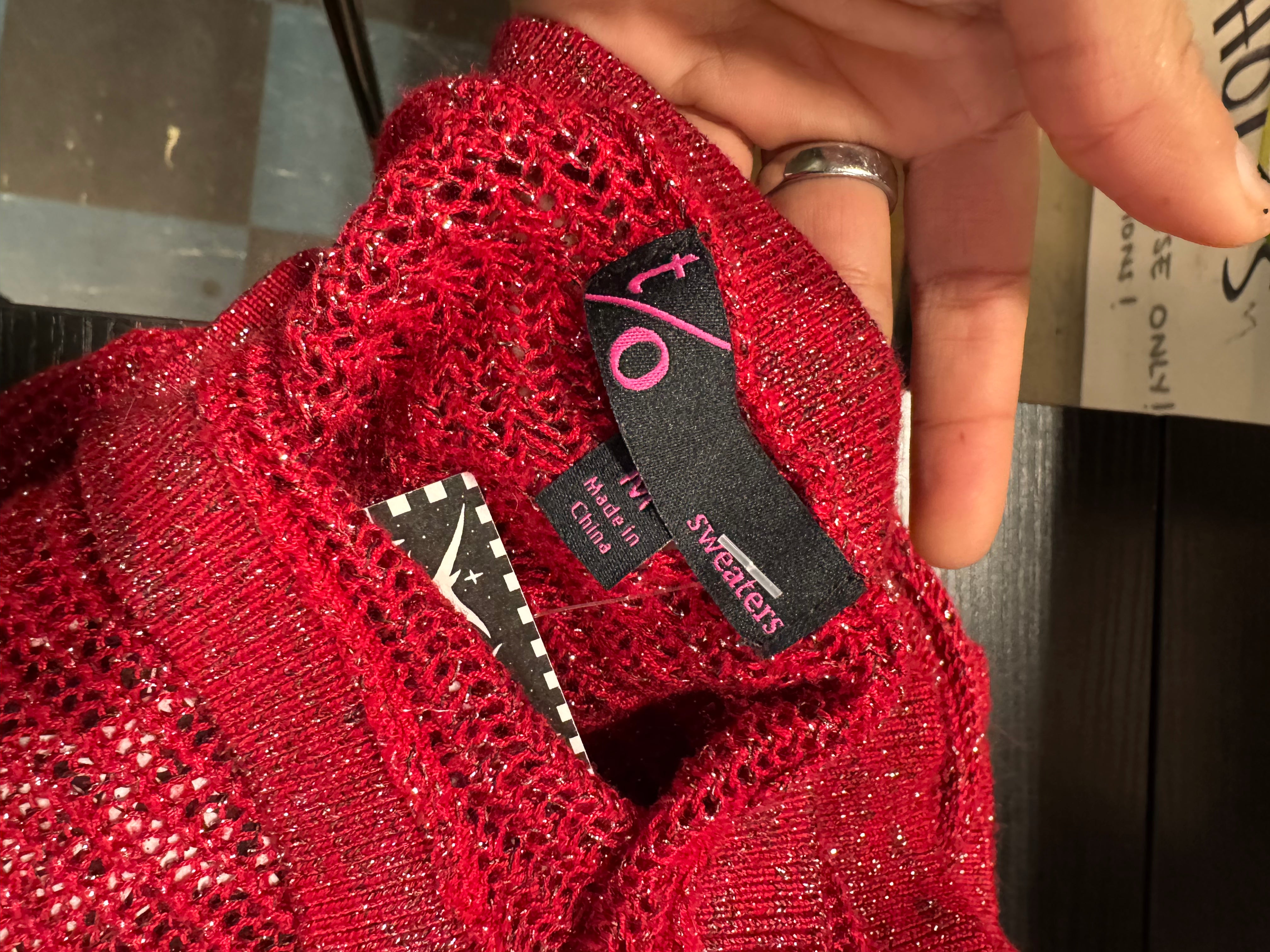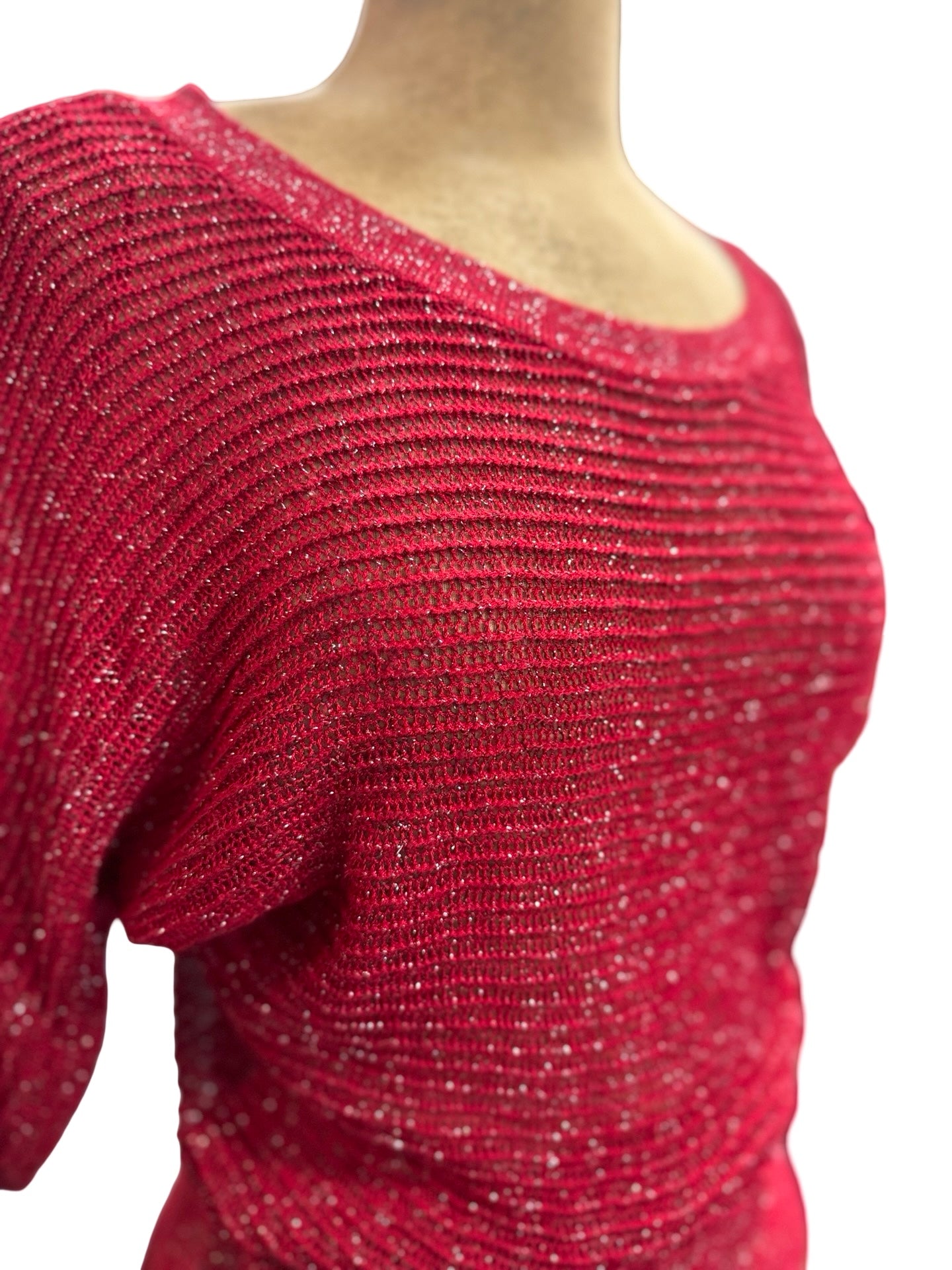 Y2K Red Mesh Knit Sparkly Top Size Medium
