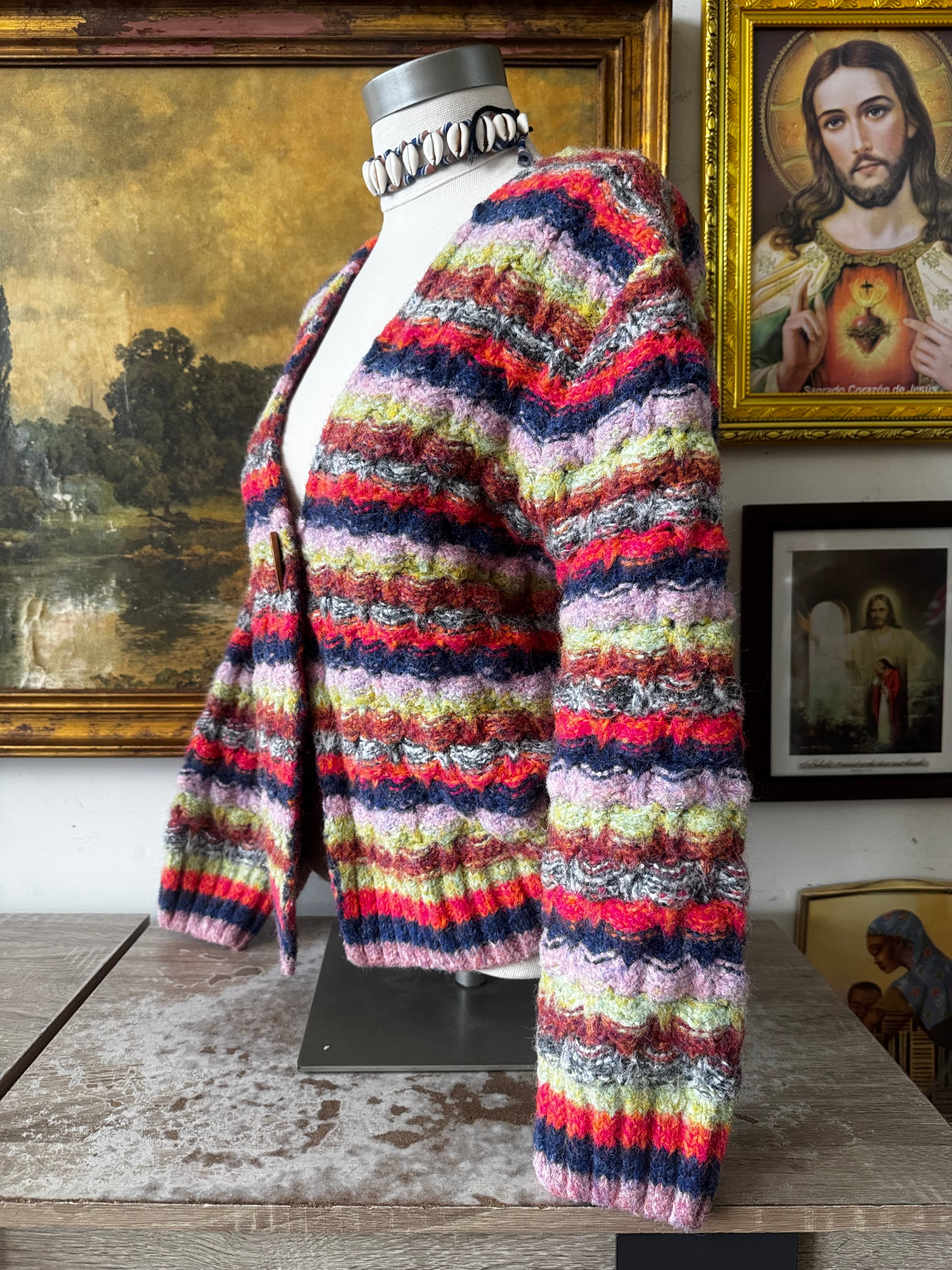 Rainbow Striped Knit Button Cardigan by Earthbound Size Medium