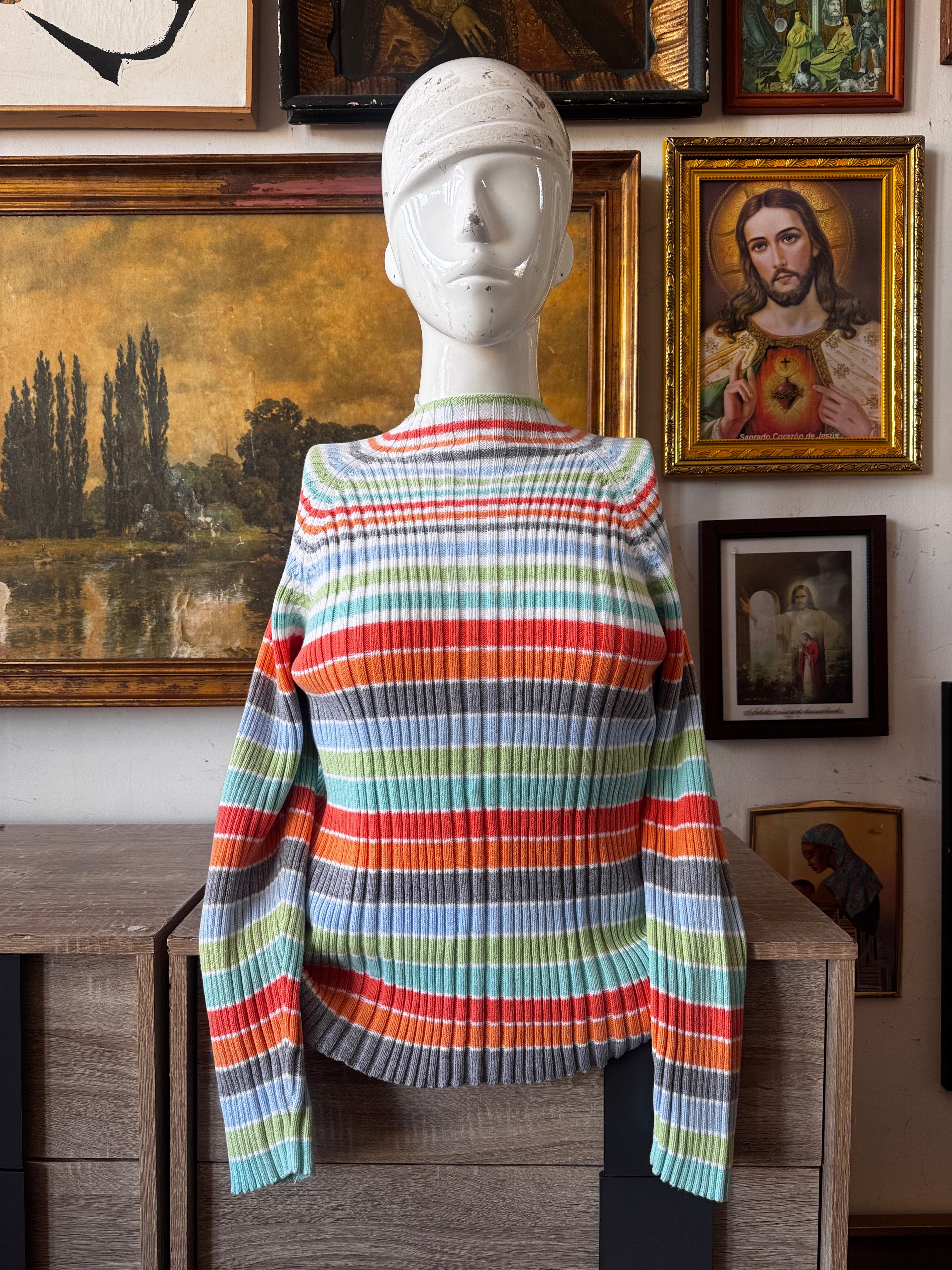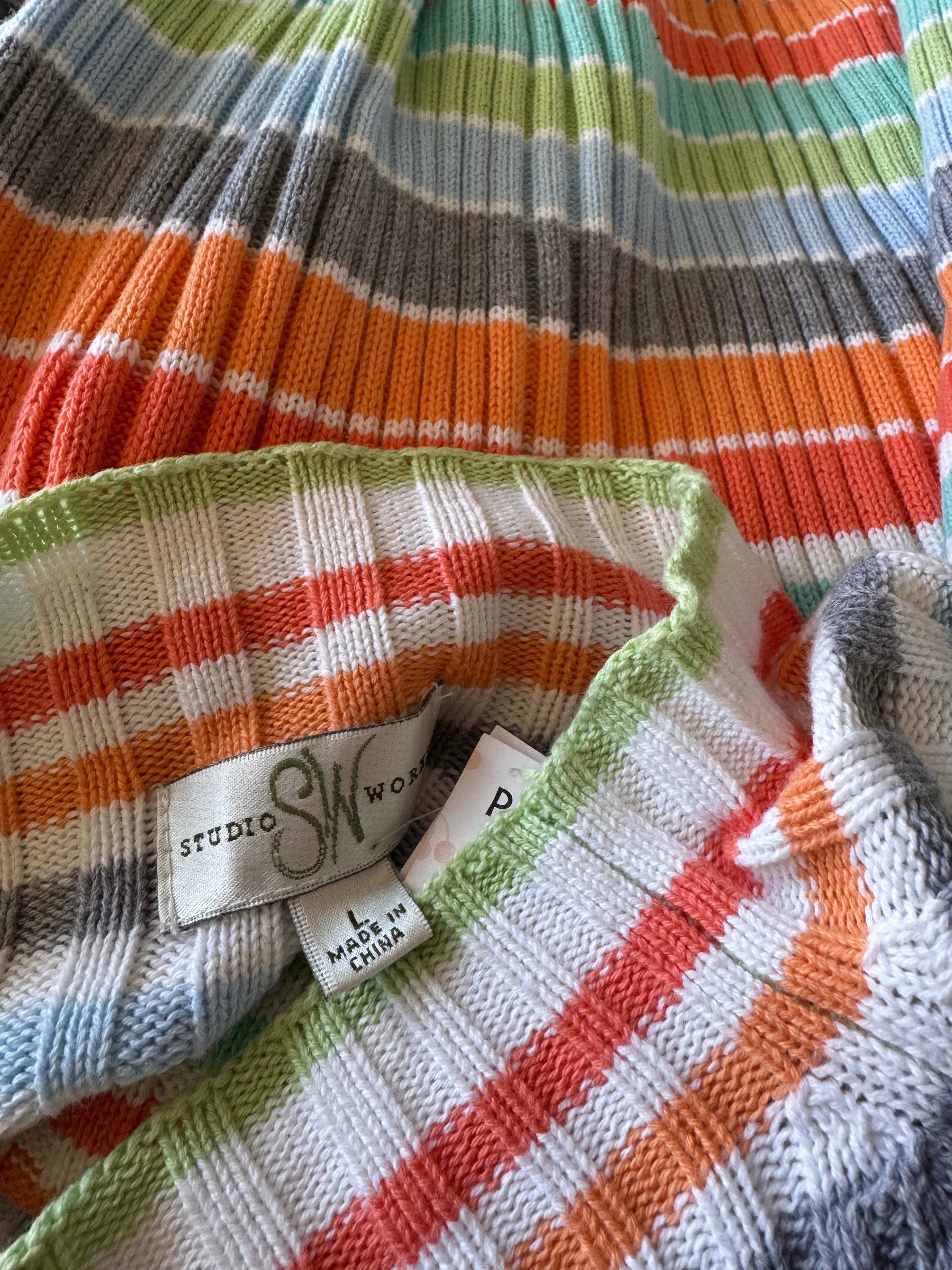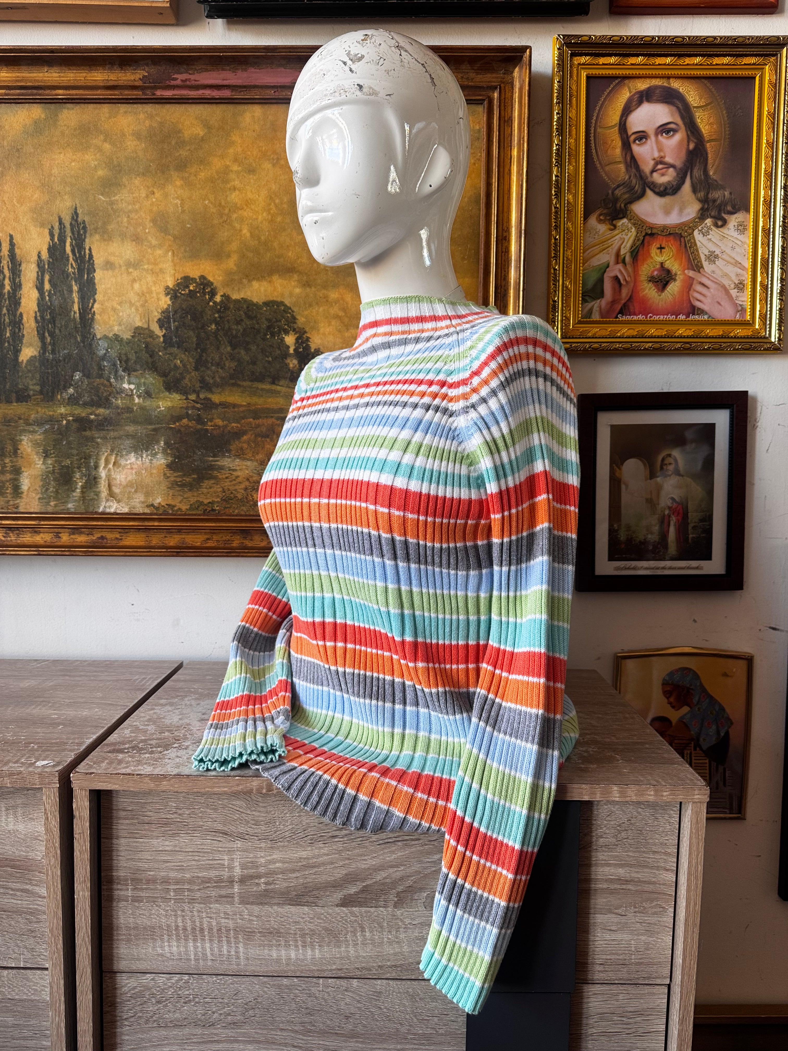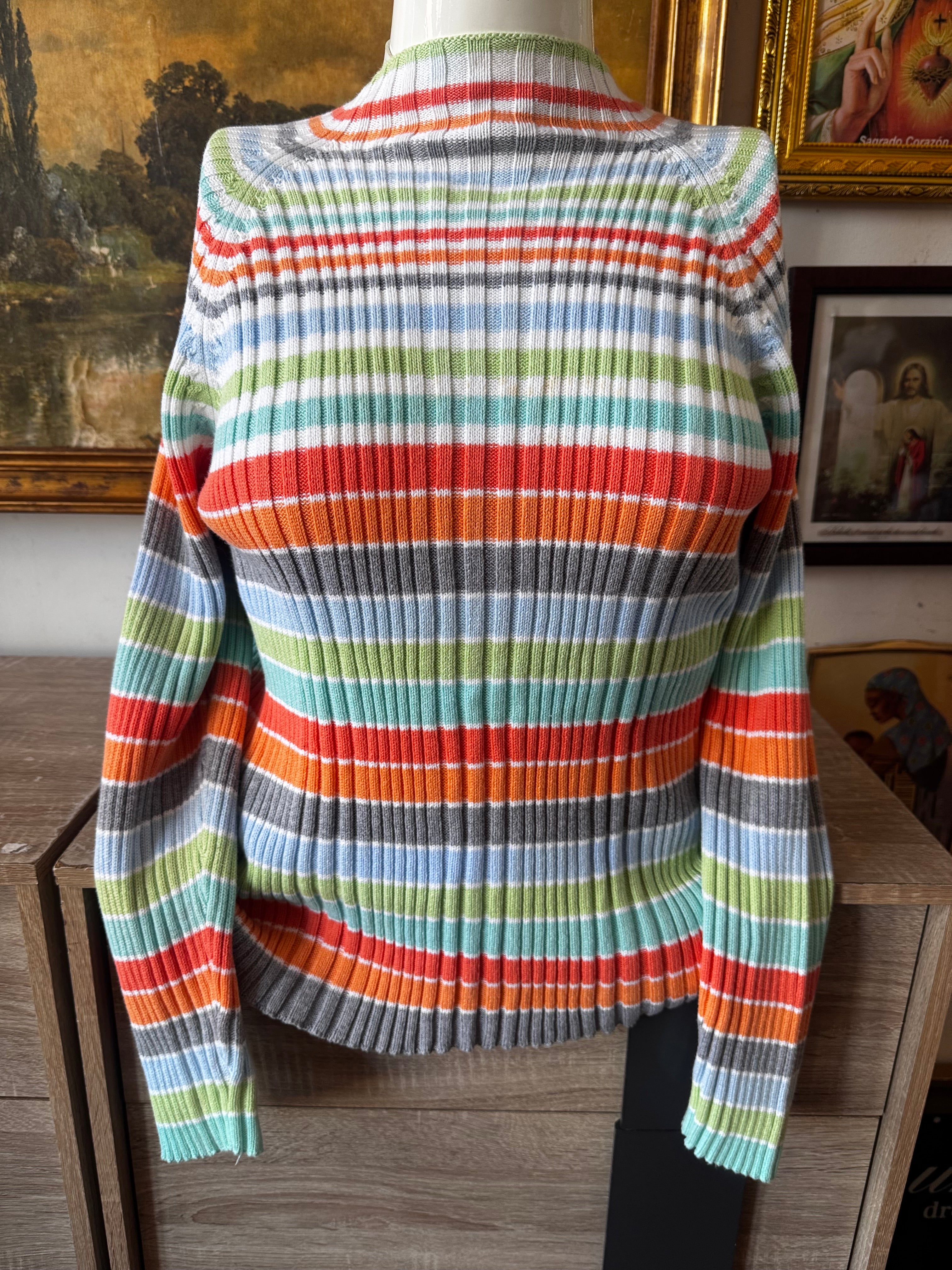 Cherry Cola Threads Y2k Stripe Rib Knit Sweater Top Size L