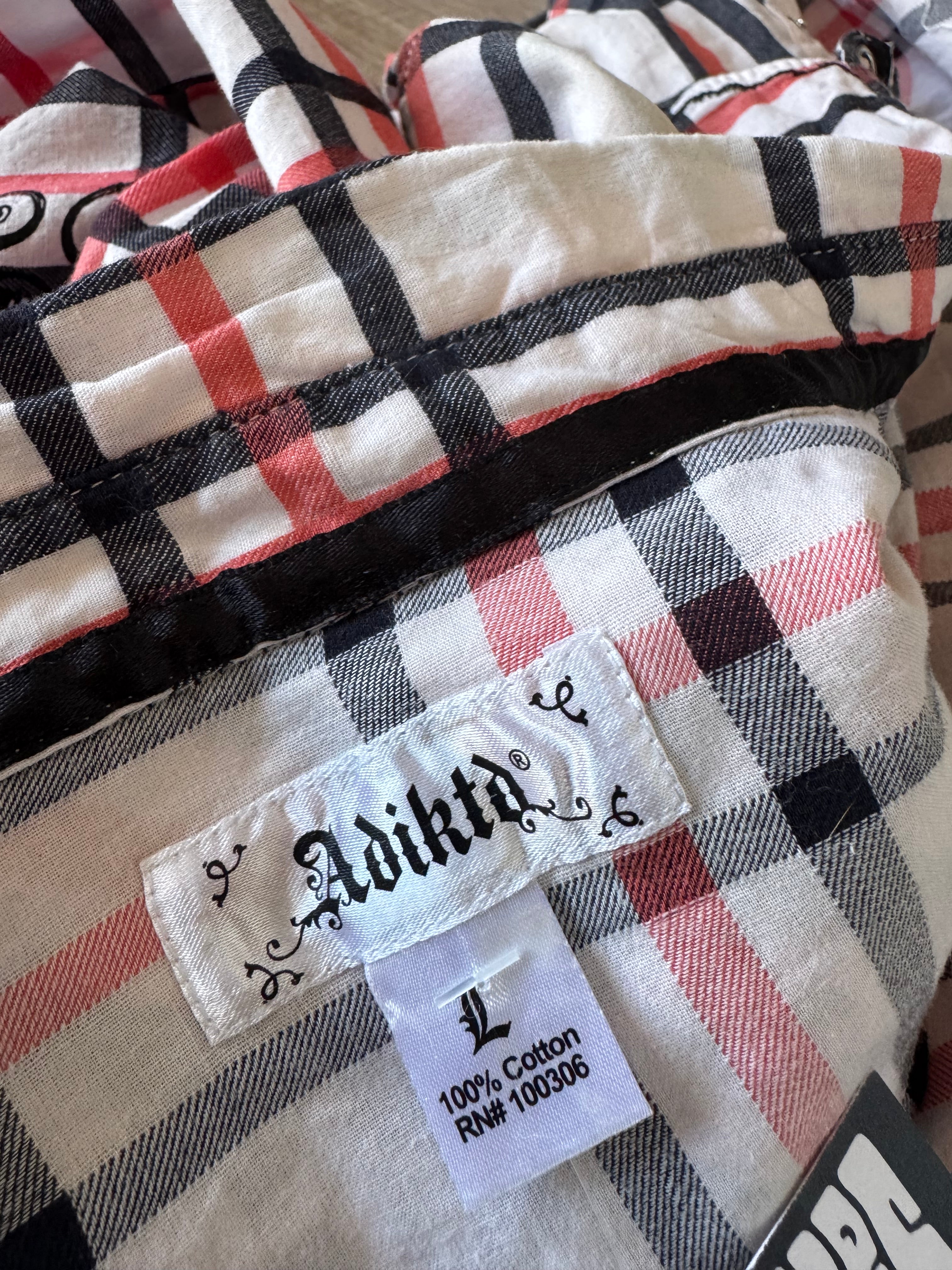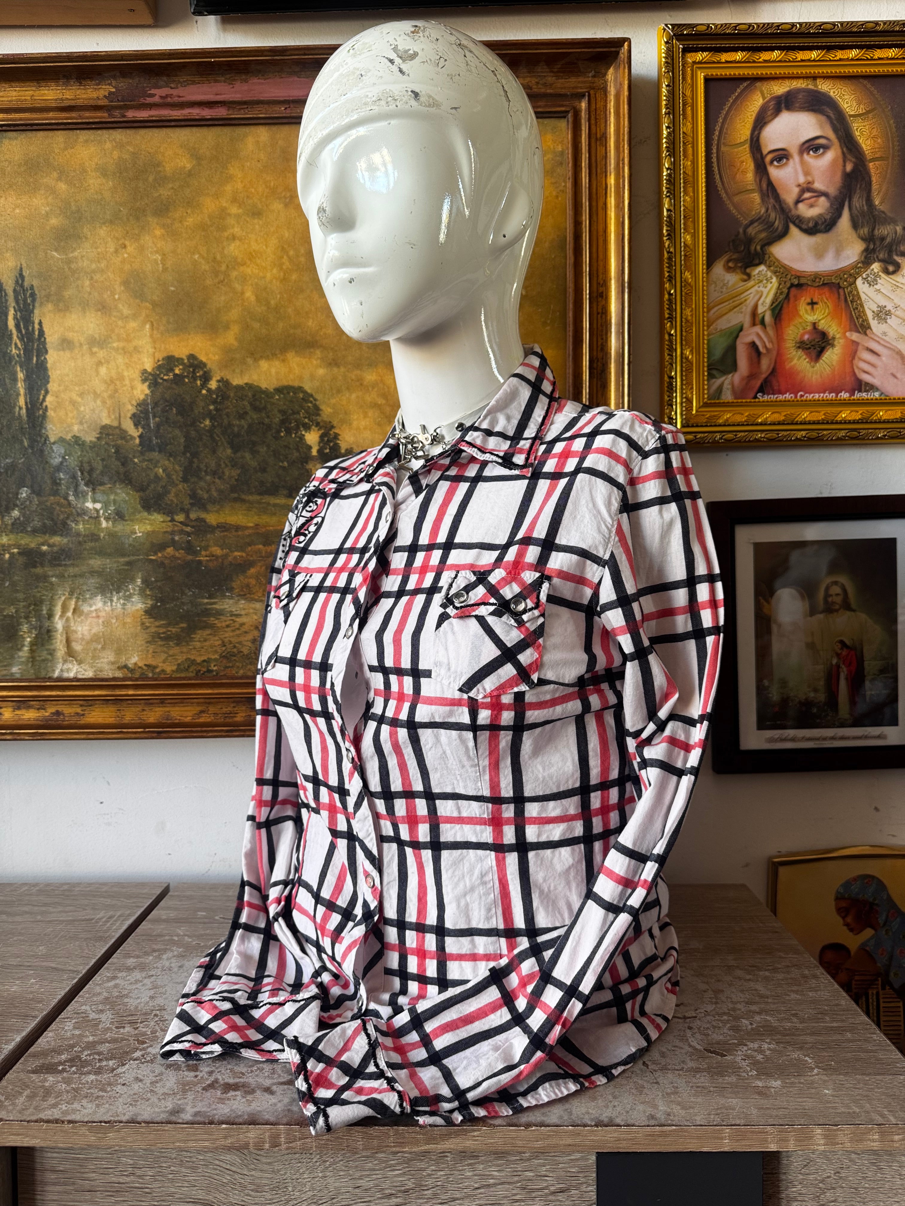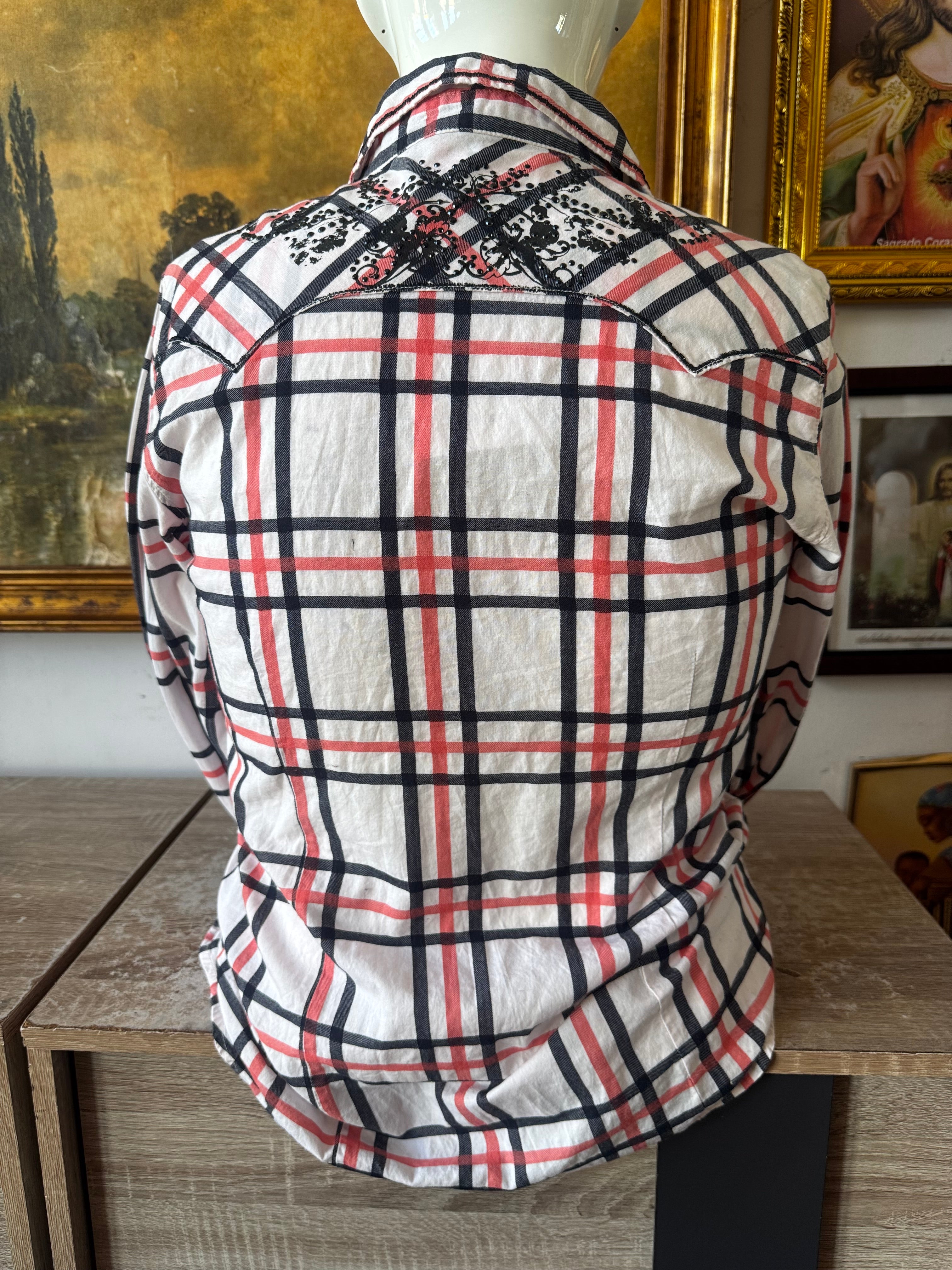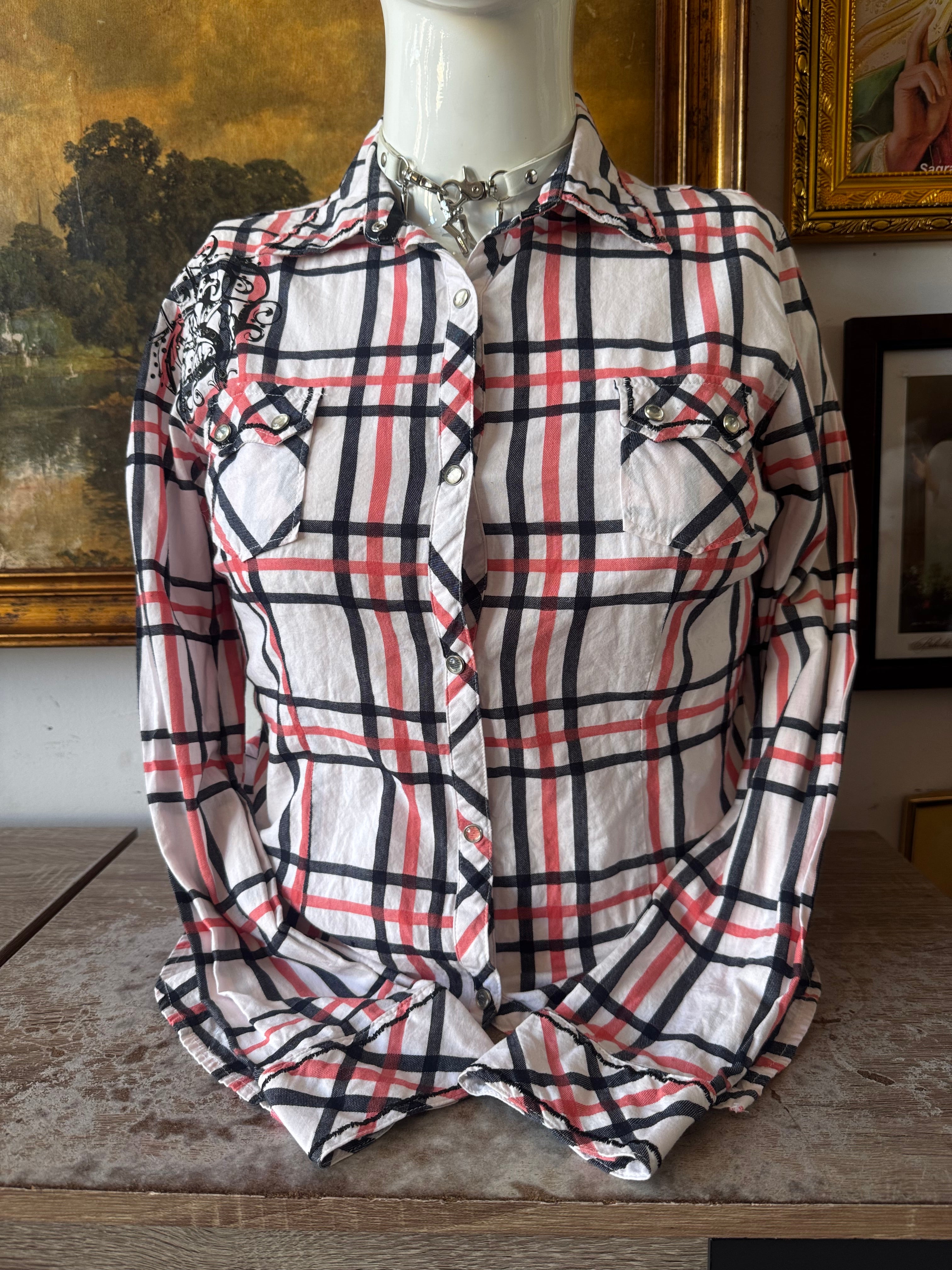 Y2k Adiktd Plaid Sequin Snap Button Front Top Size L