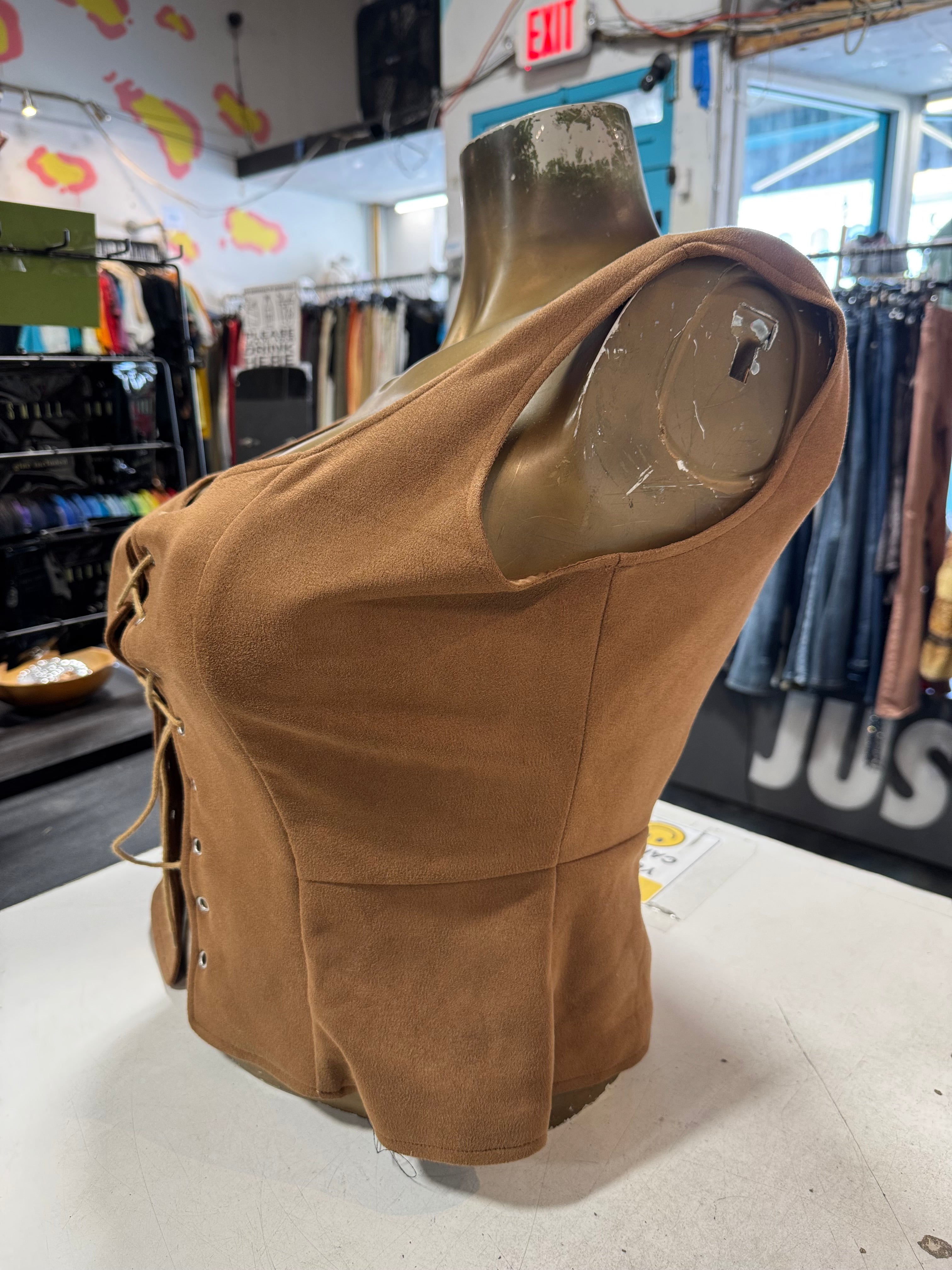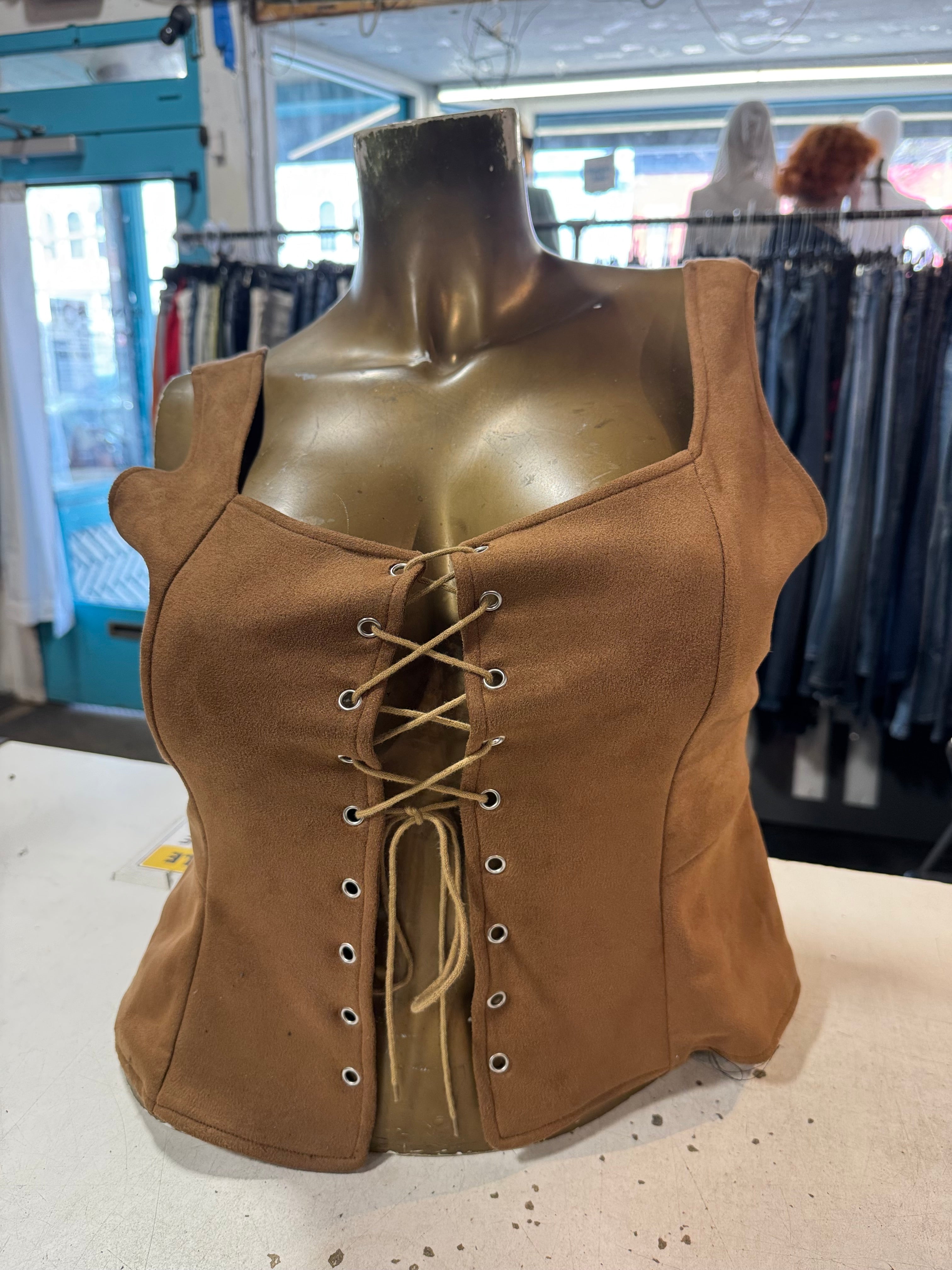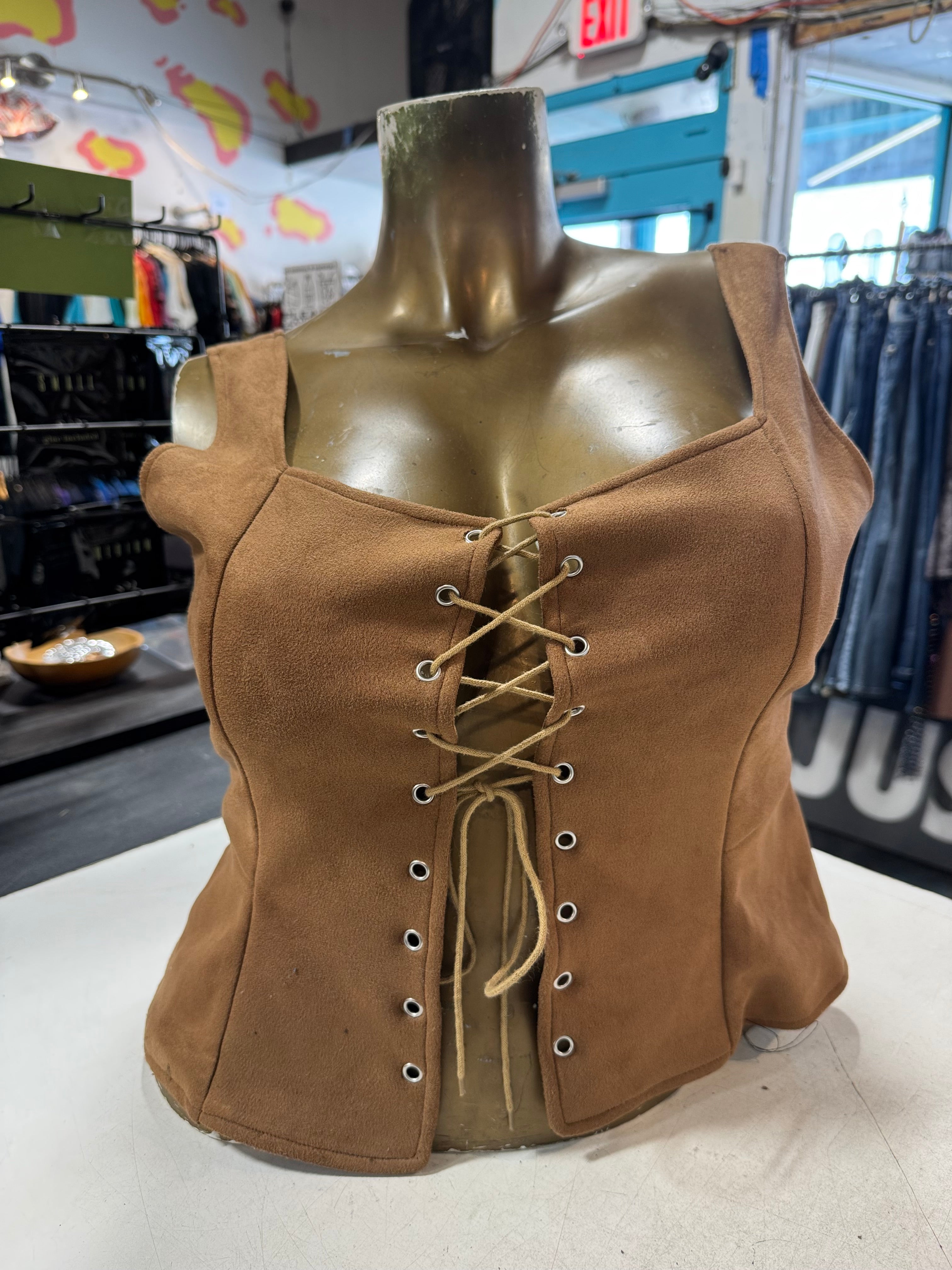 Description: Faux Suede Renaissance Style Lace-Up Corset Top Size XL