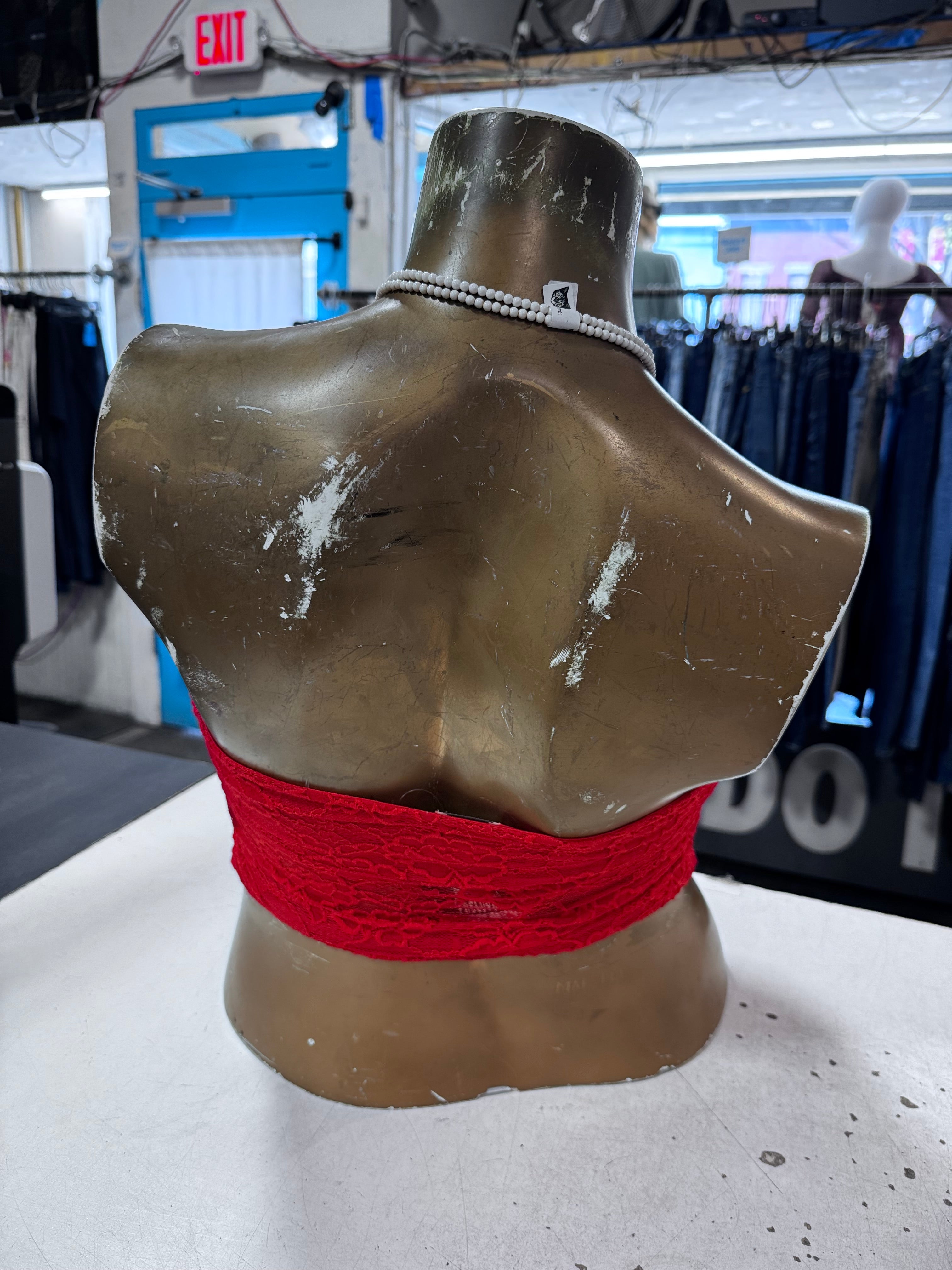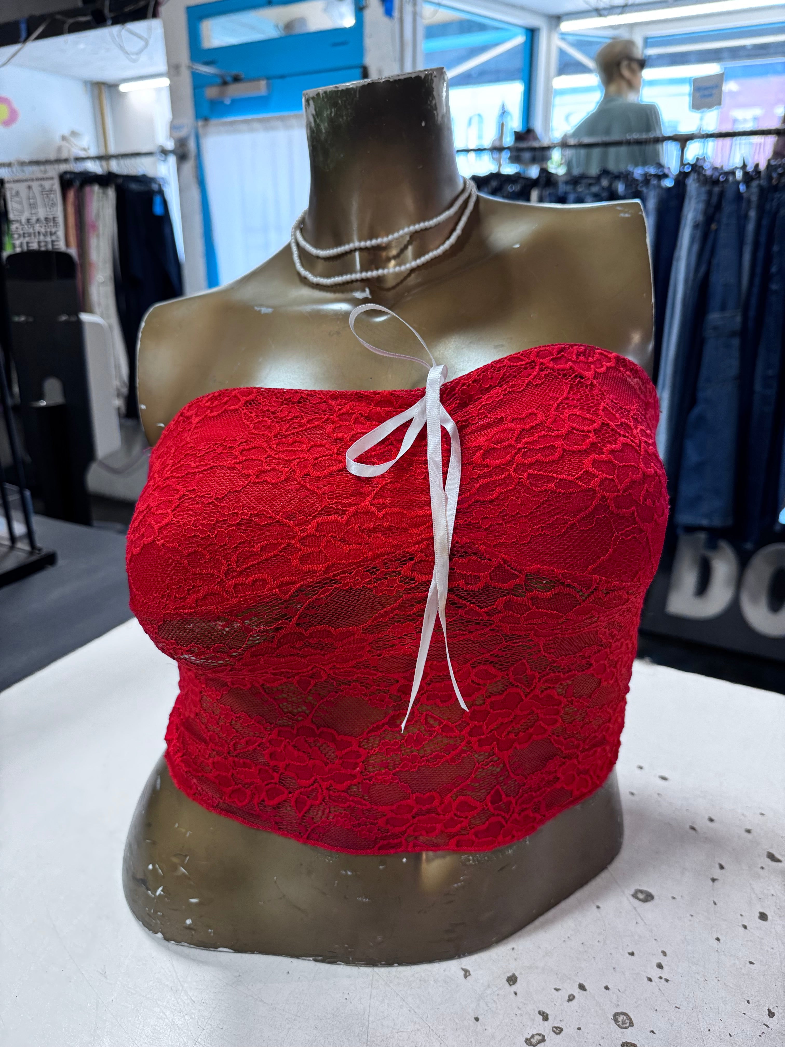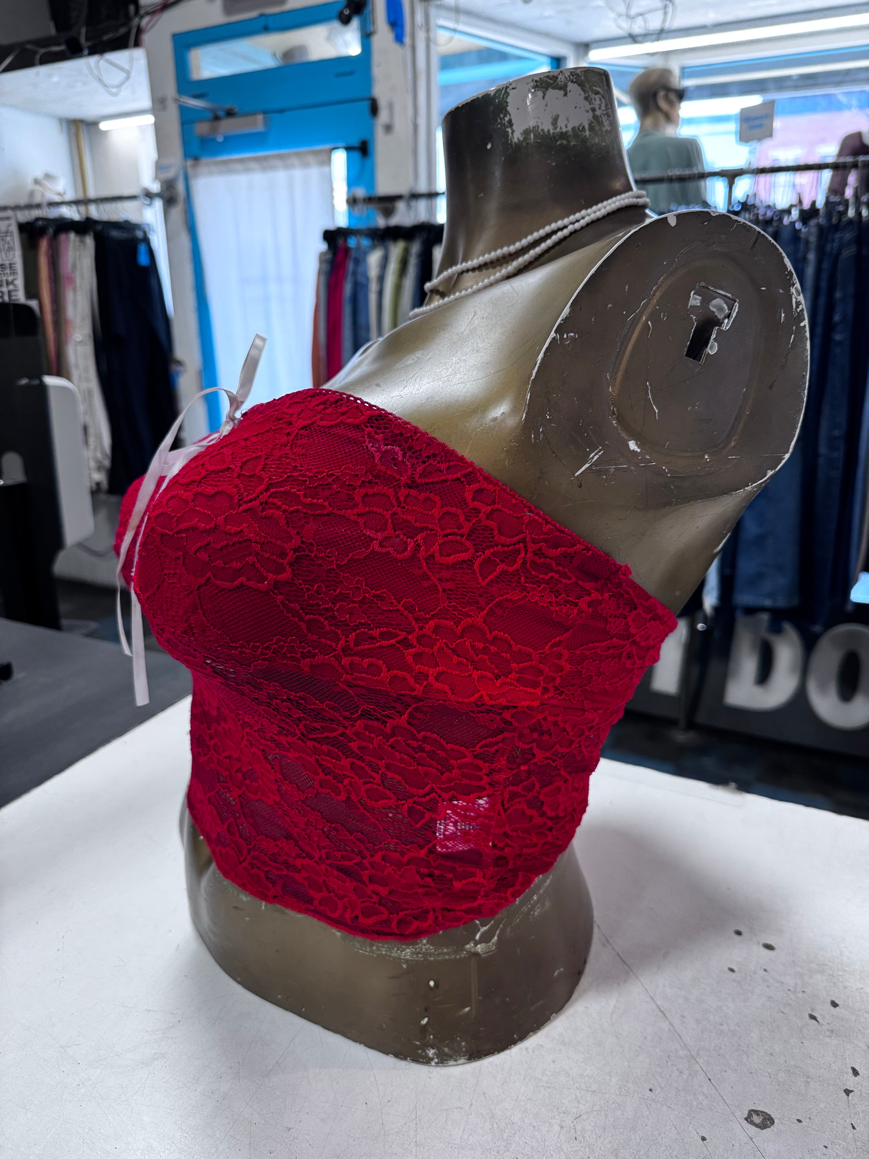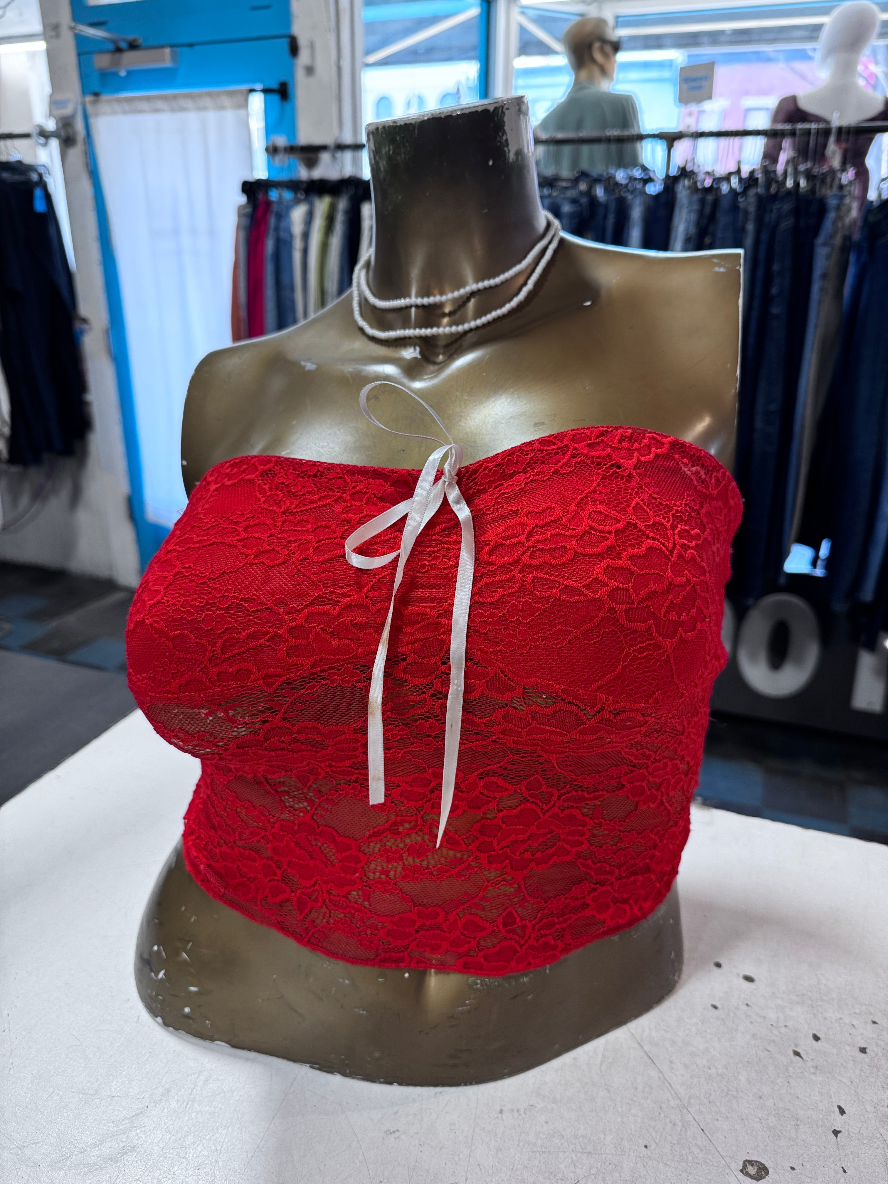 Red Delicate Floral Lace Tube Top With White Ribbon Tie By Princess Polly Us Size M