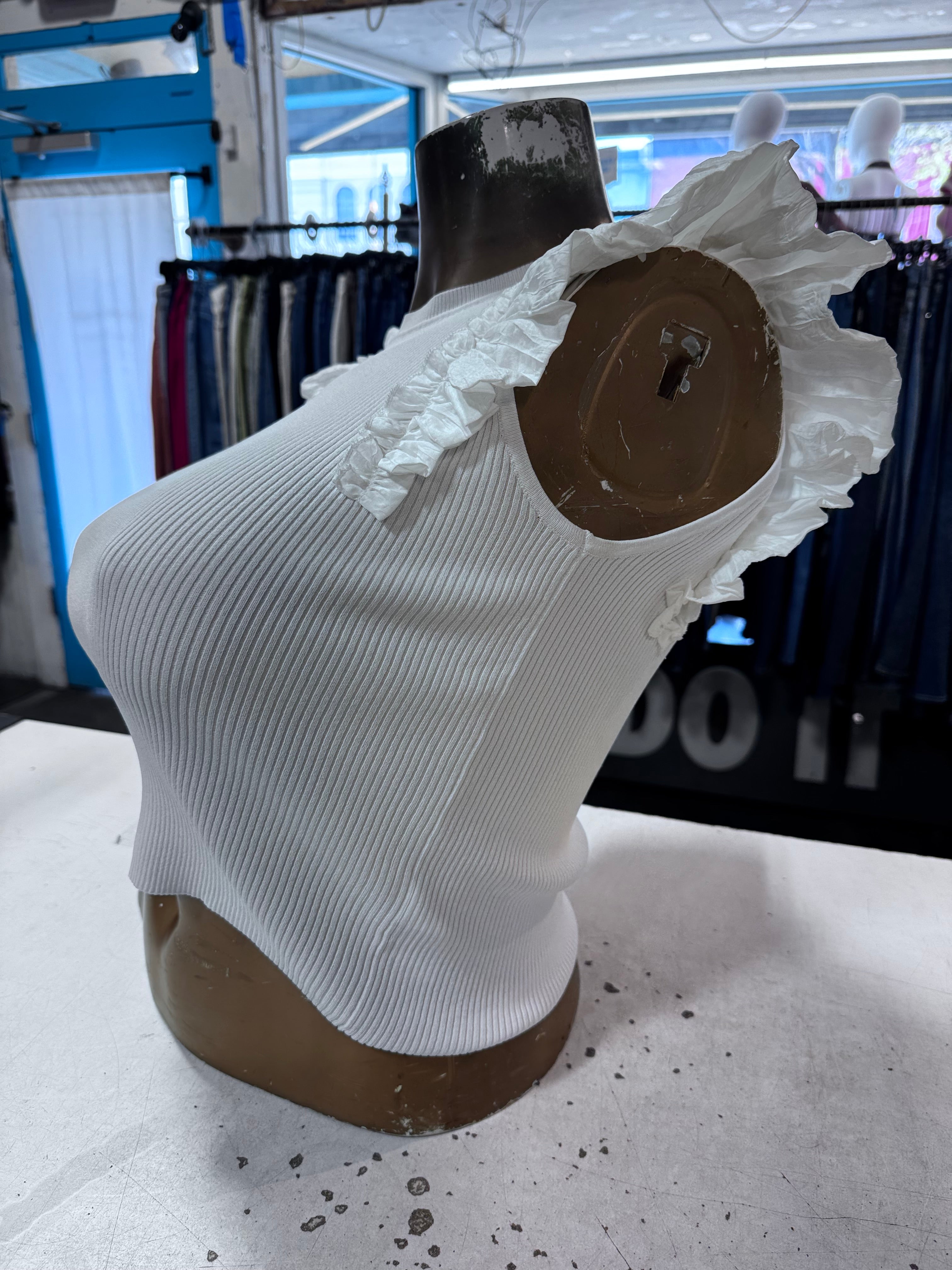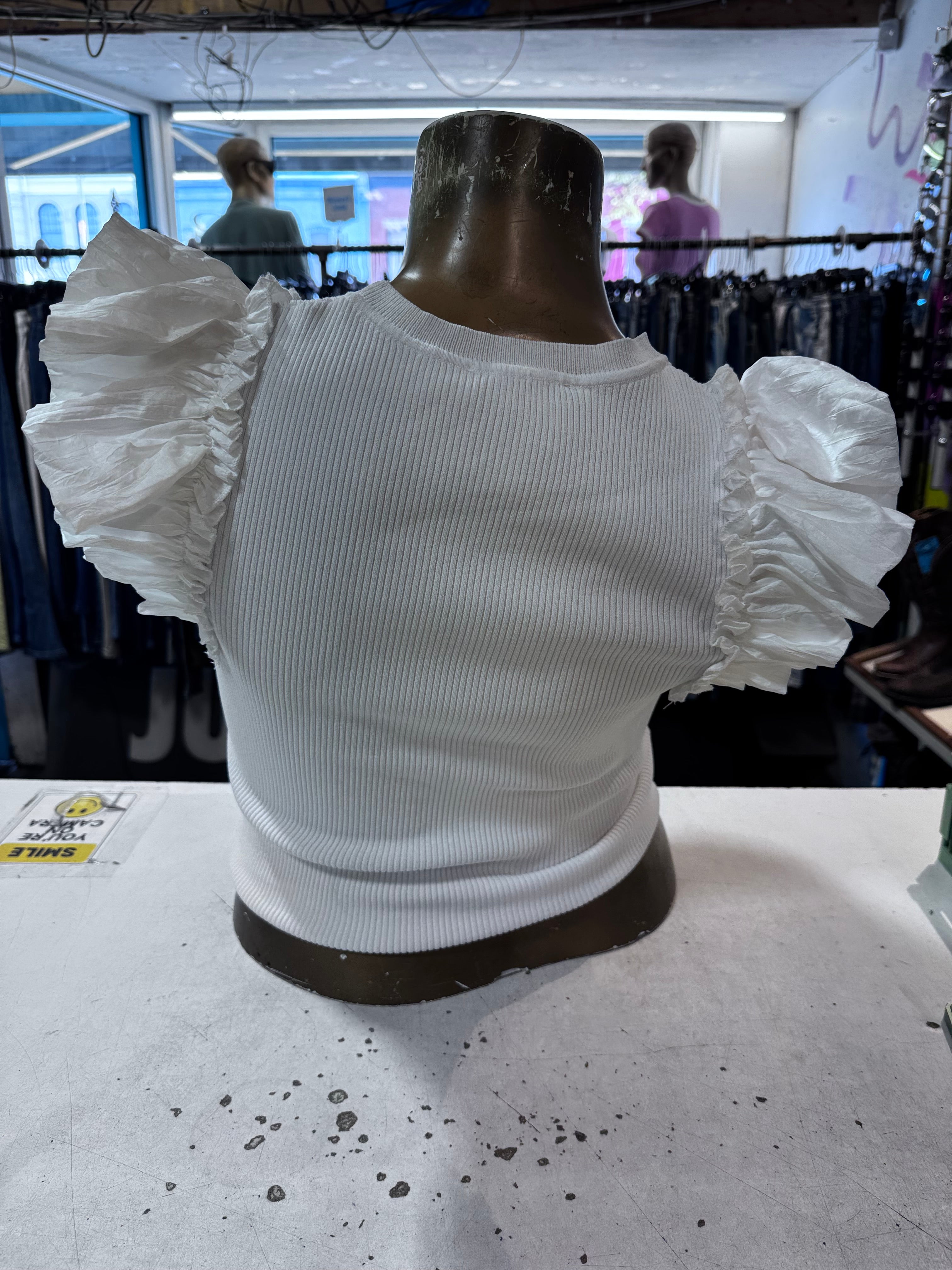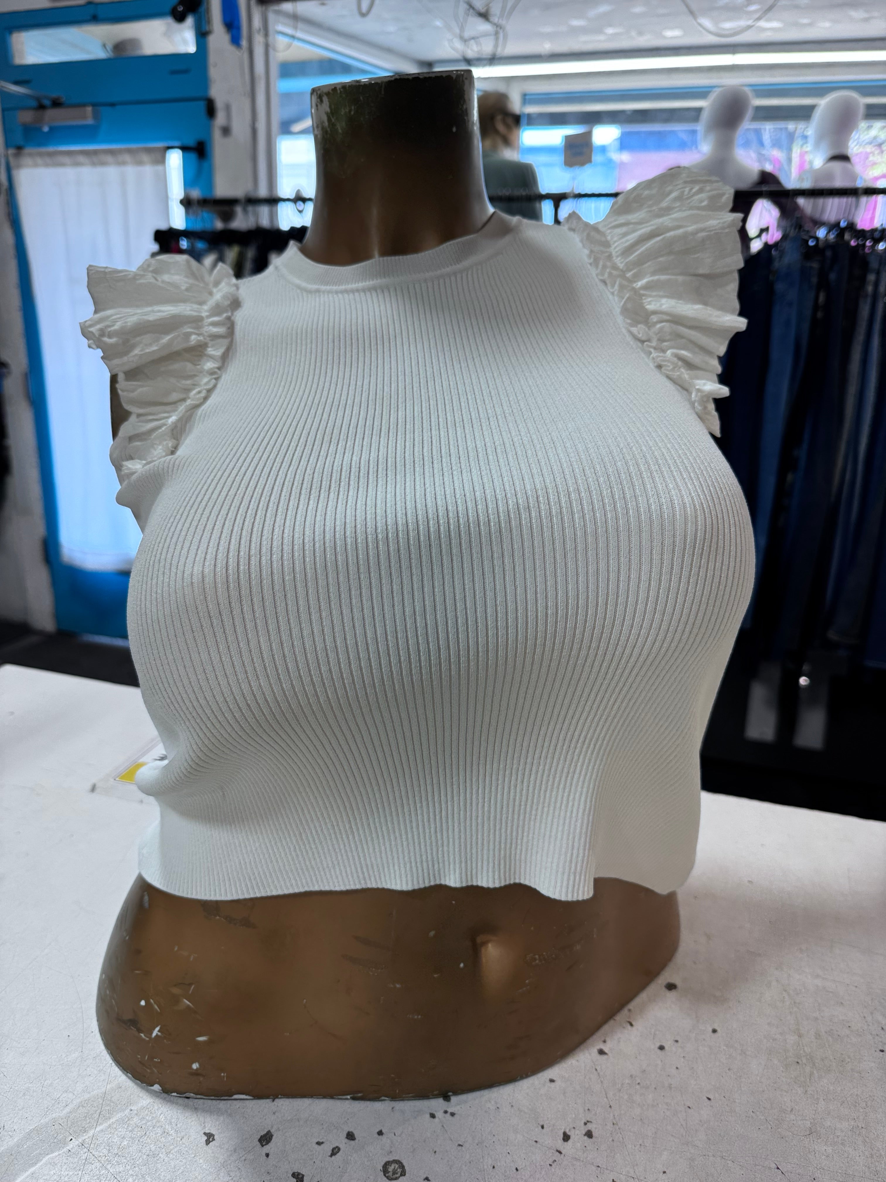 Double Flutter Ruffle Sleeve Ribbed Top Size Large By Industry Republic Clothing