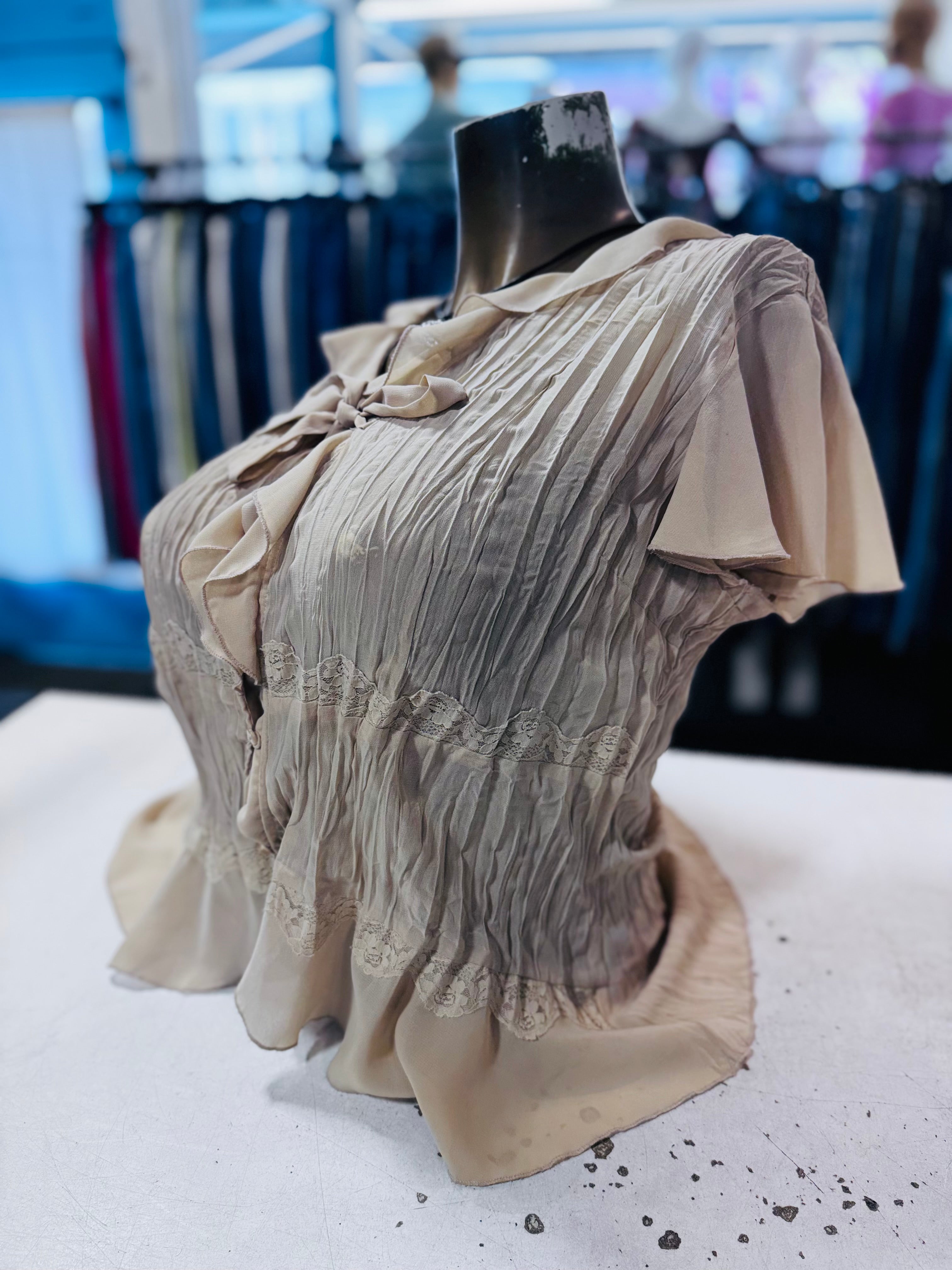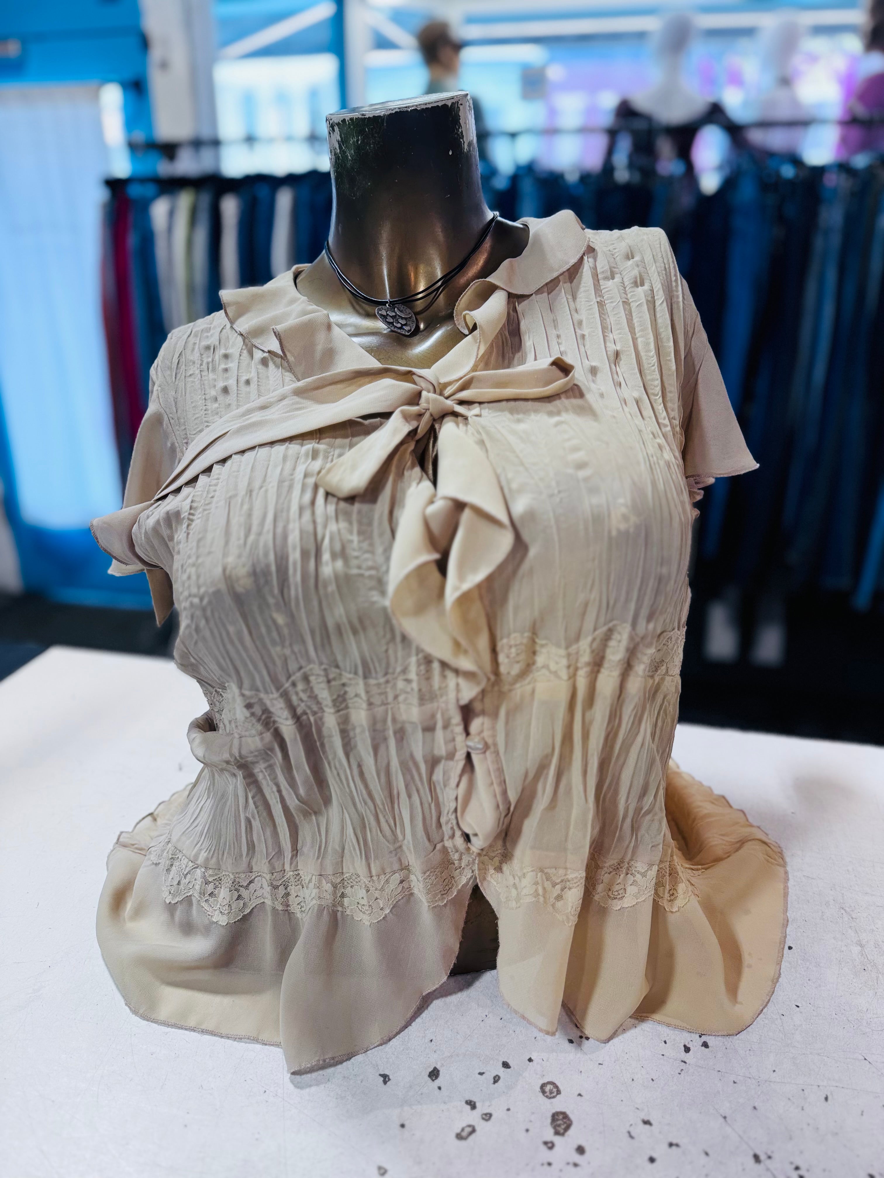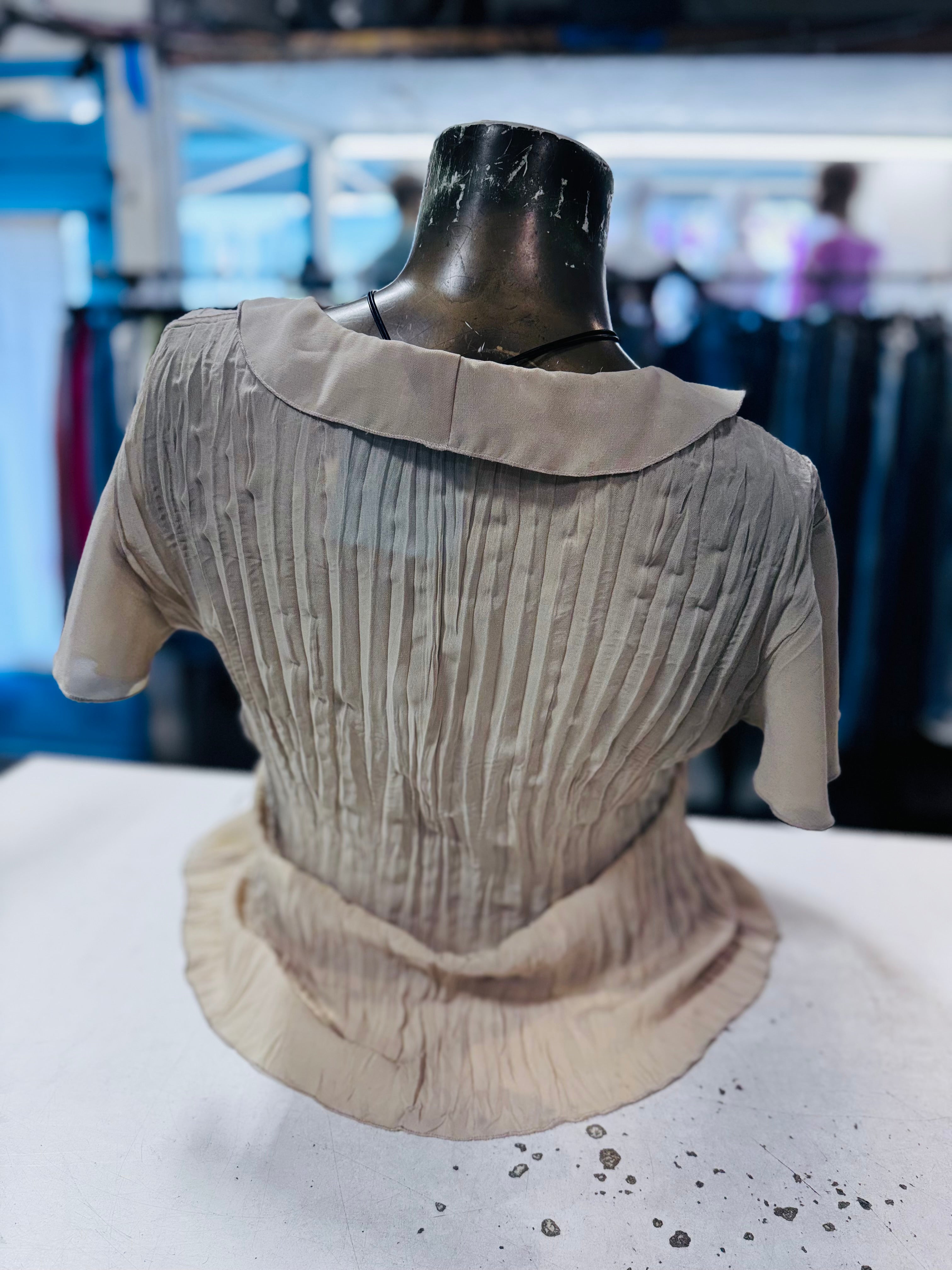 Description: W+W Y2K Sheer Tan Pleated Coquette Top Size XL