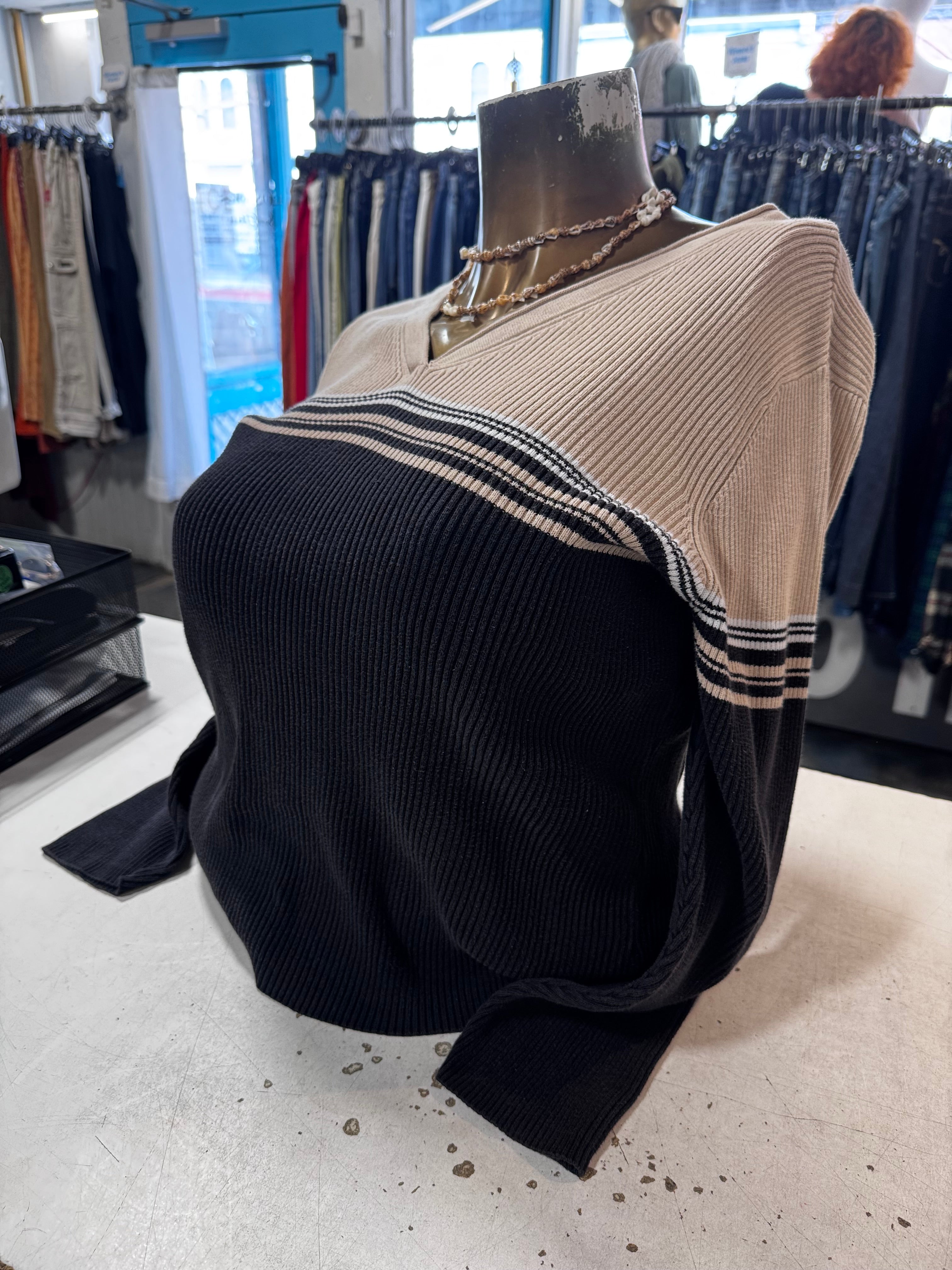 W+W Y2K Ribbed Knit Bar Stripe Sweater Size 18/20W