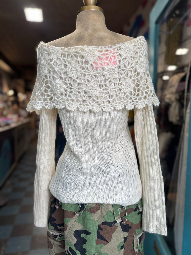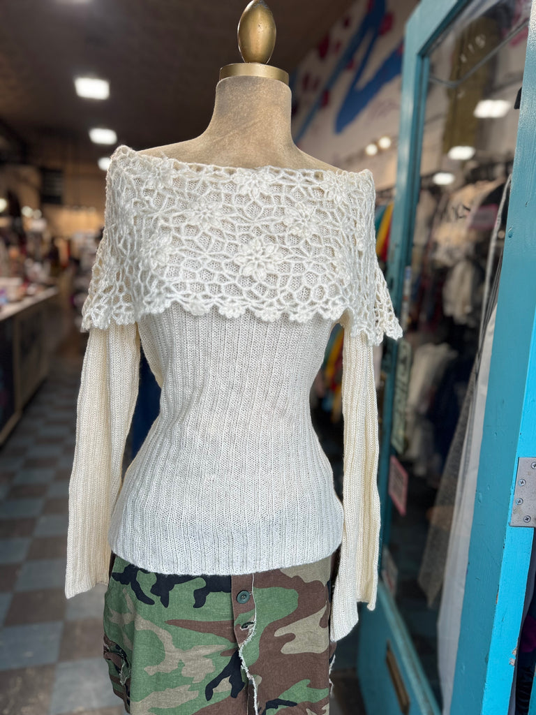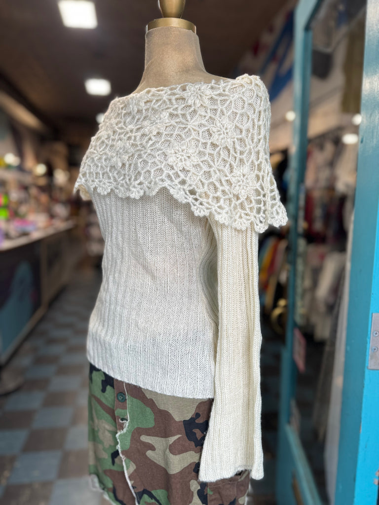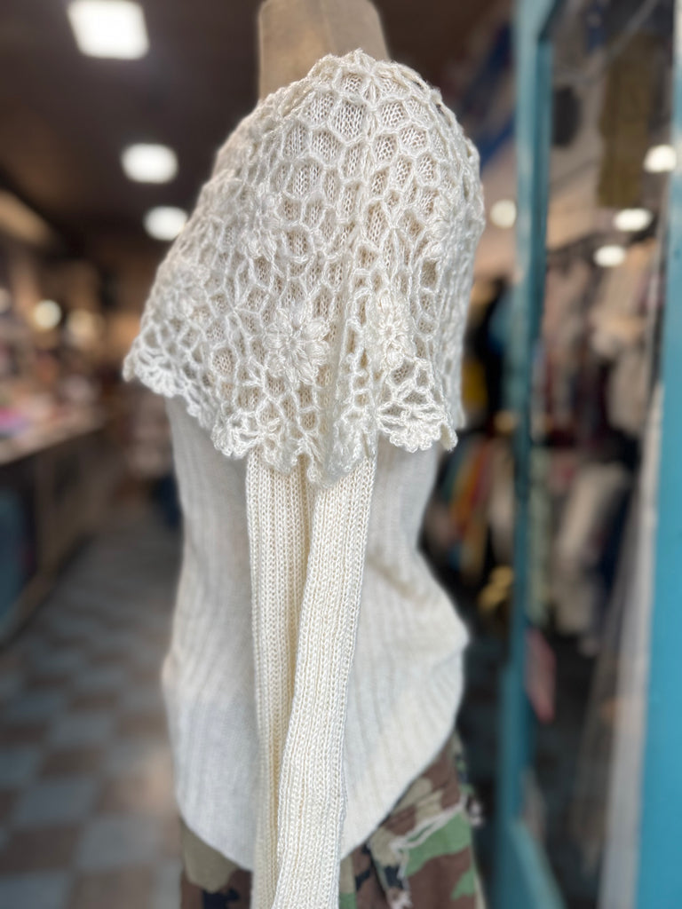 Anthropology Moth Crochet Bell Sleeve Sweater Size S