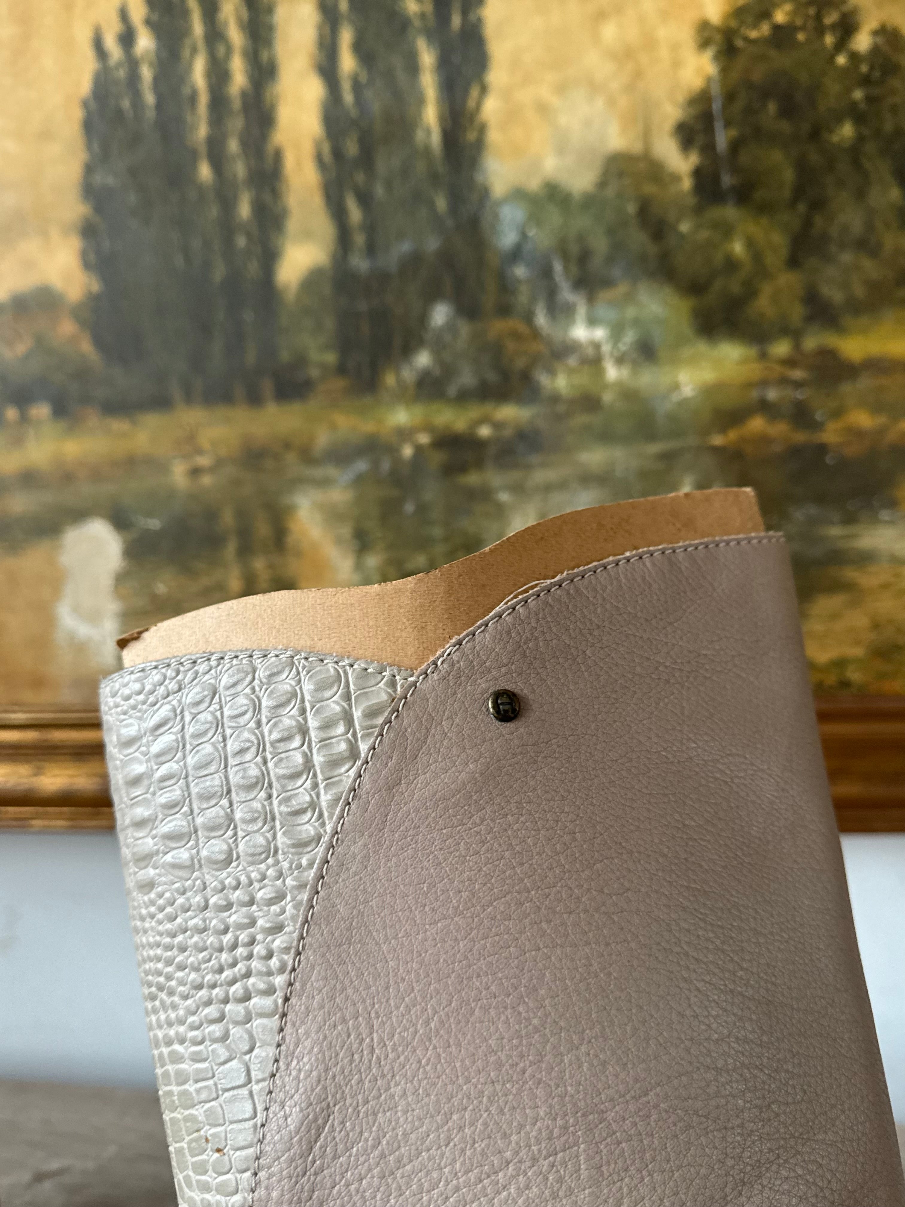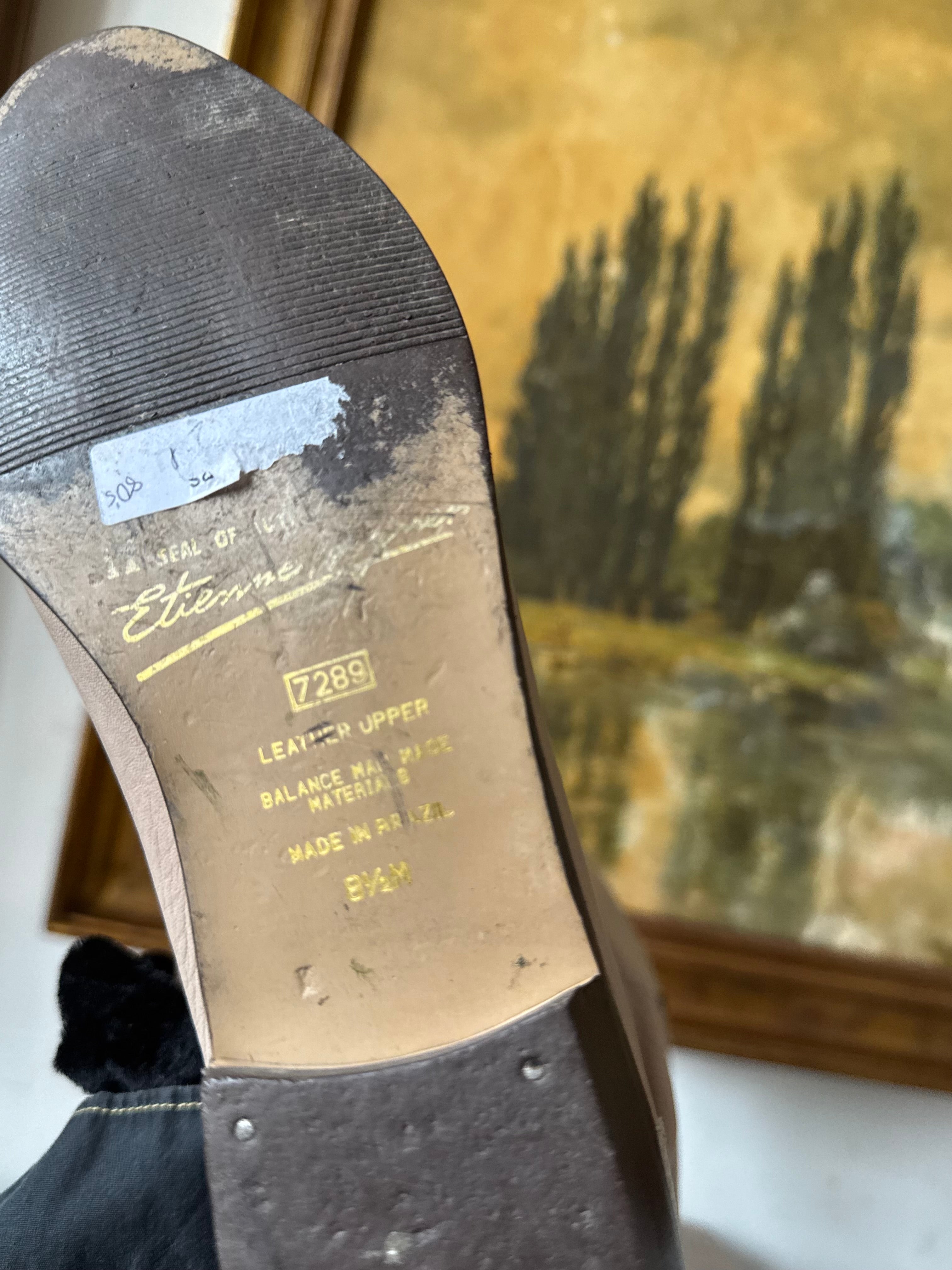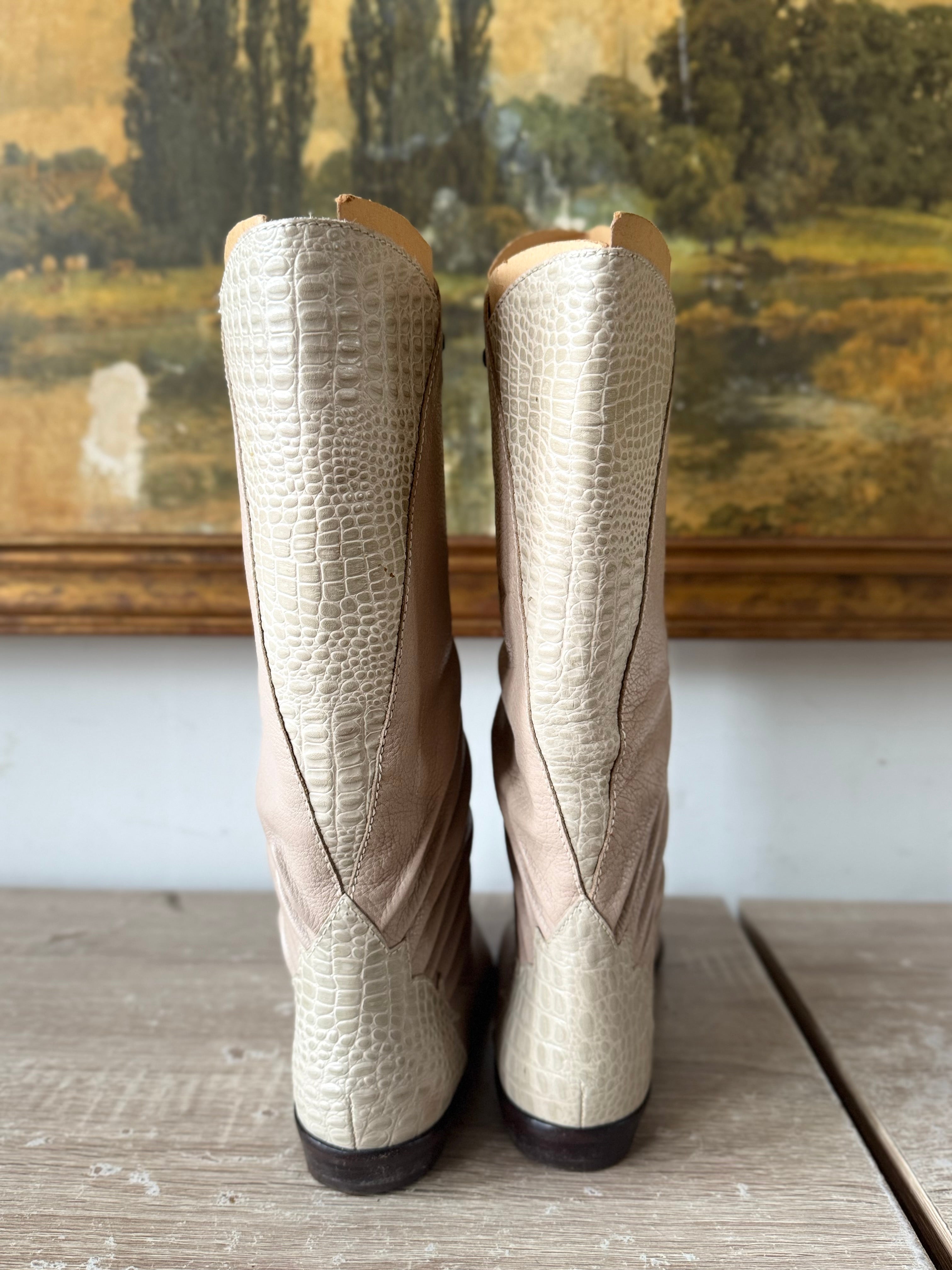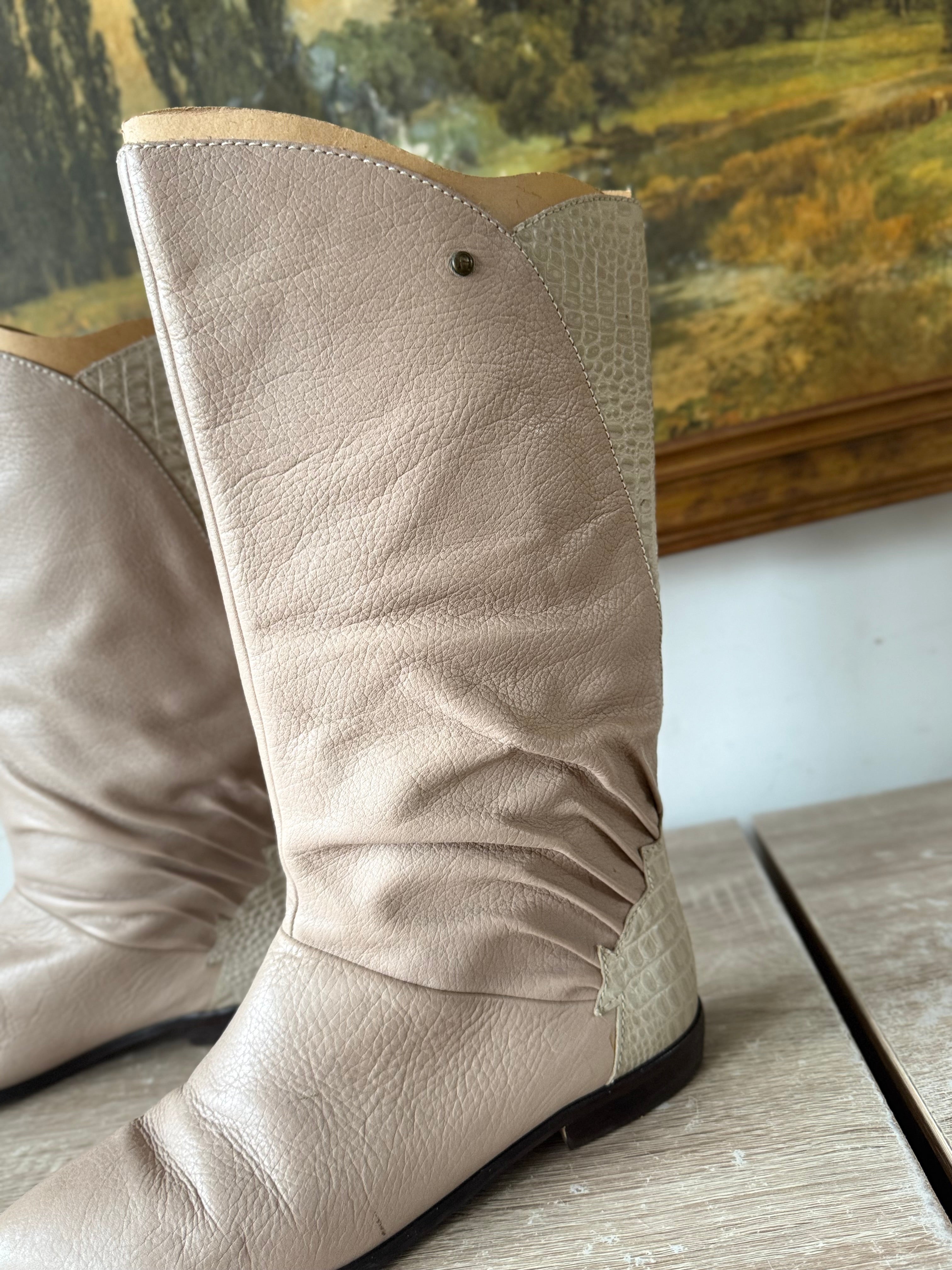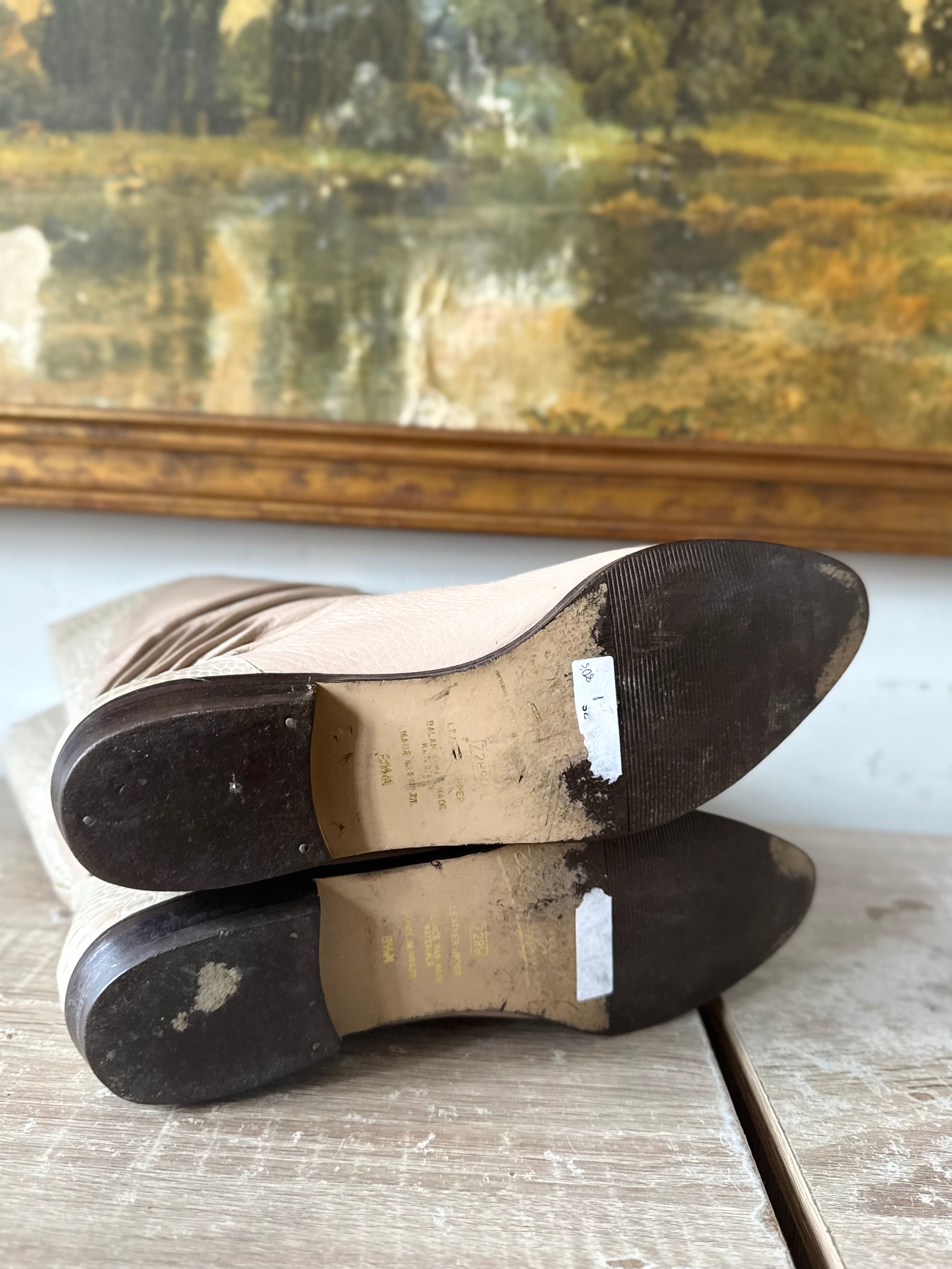 Vintage 80s Taupe Leather Calf Boots Womens SIze 8.5