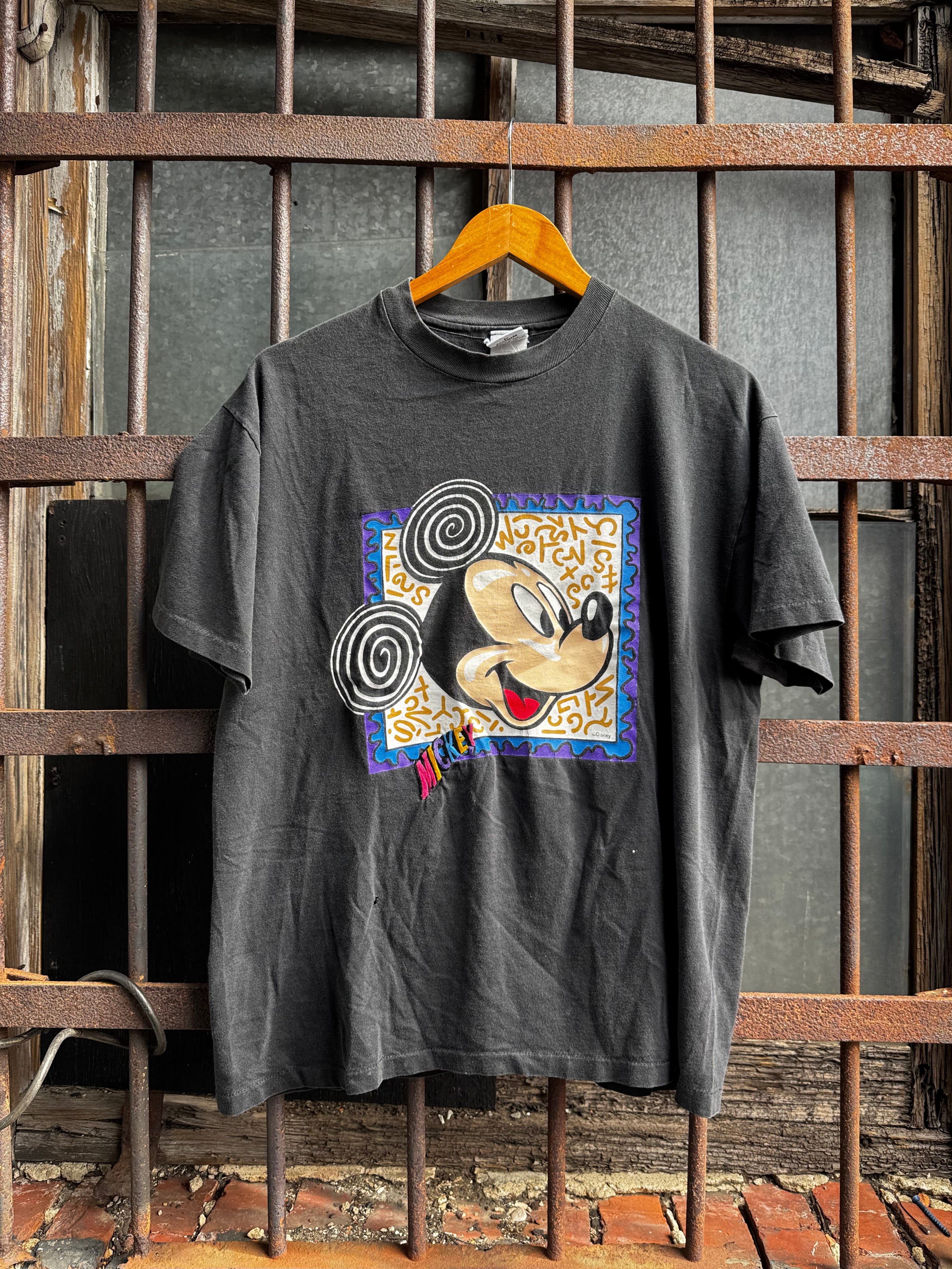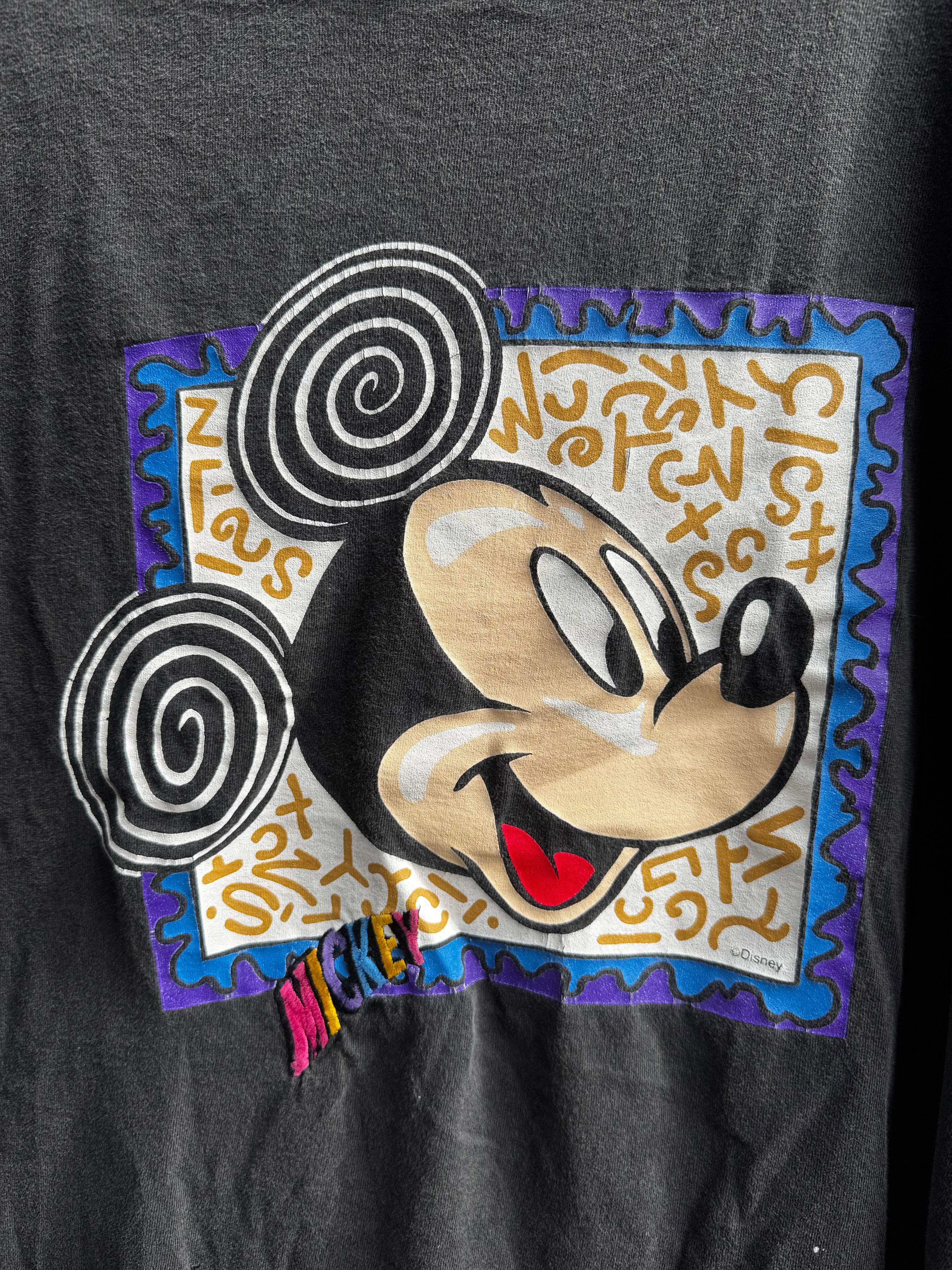 Vintage 90’s Disney Mickey Mouse Neon Puffy Print Graphic Tee Size Large
