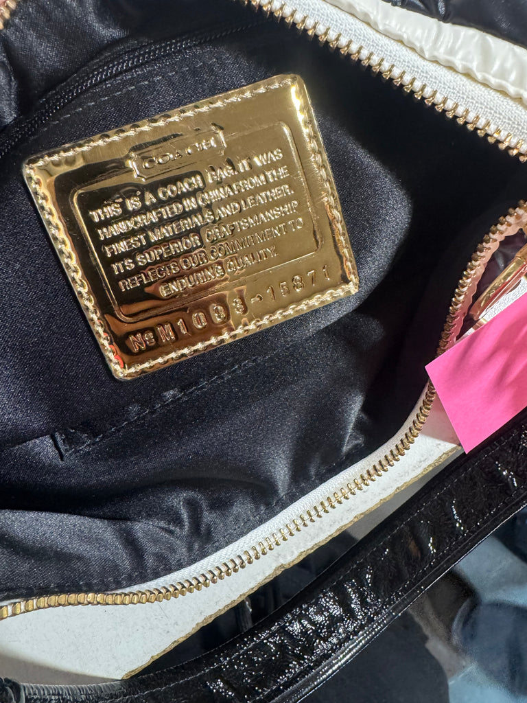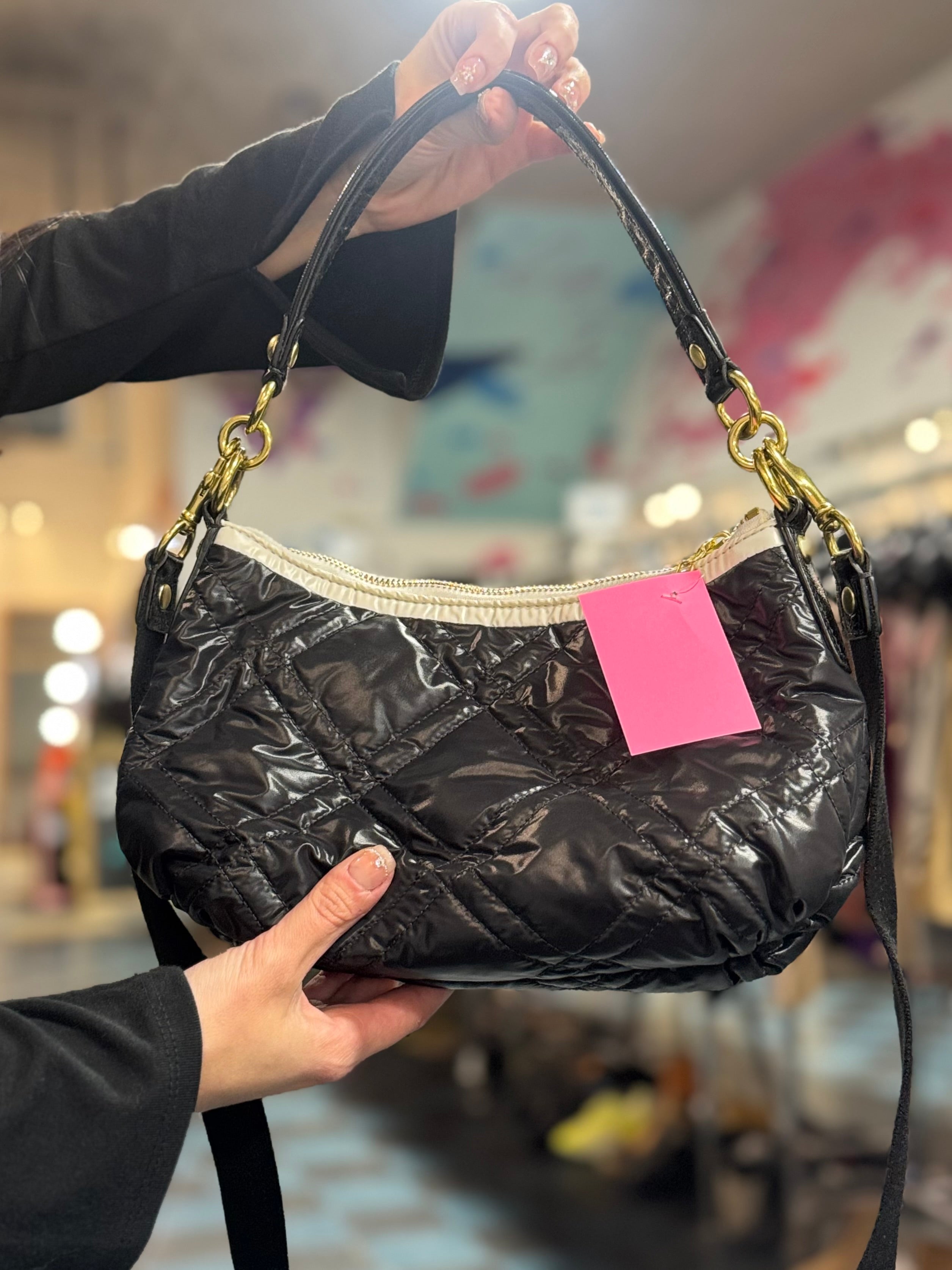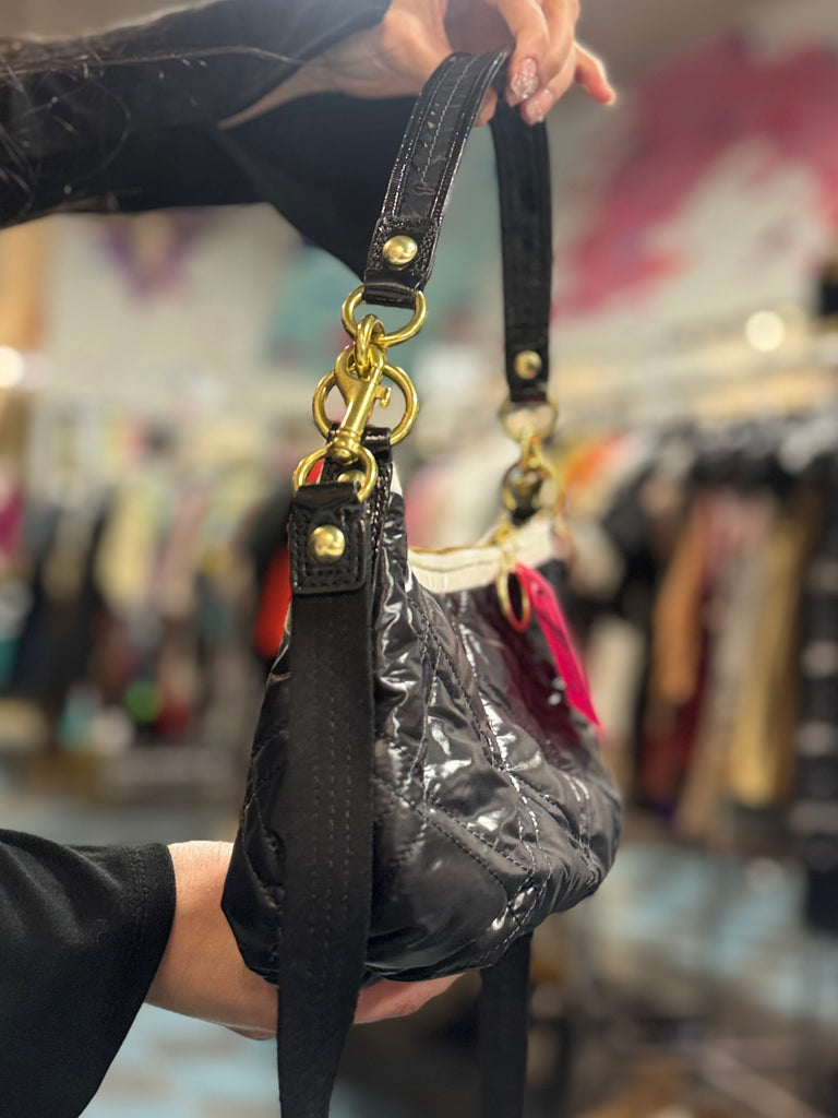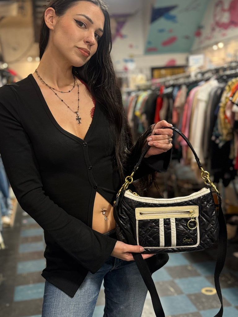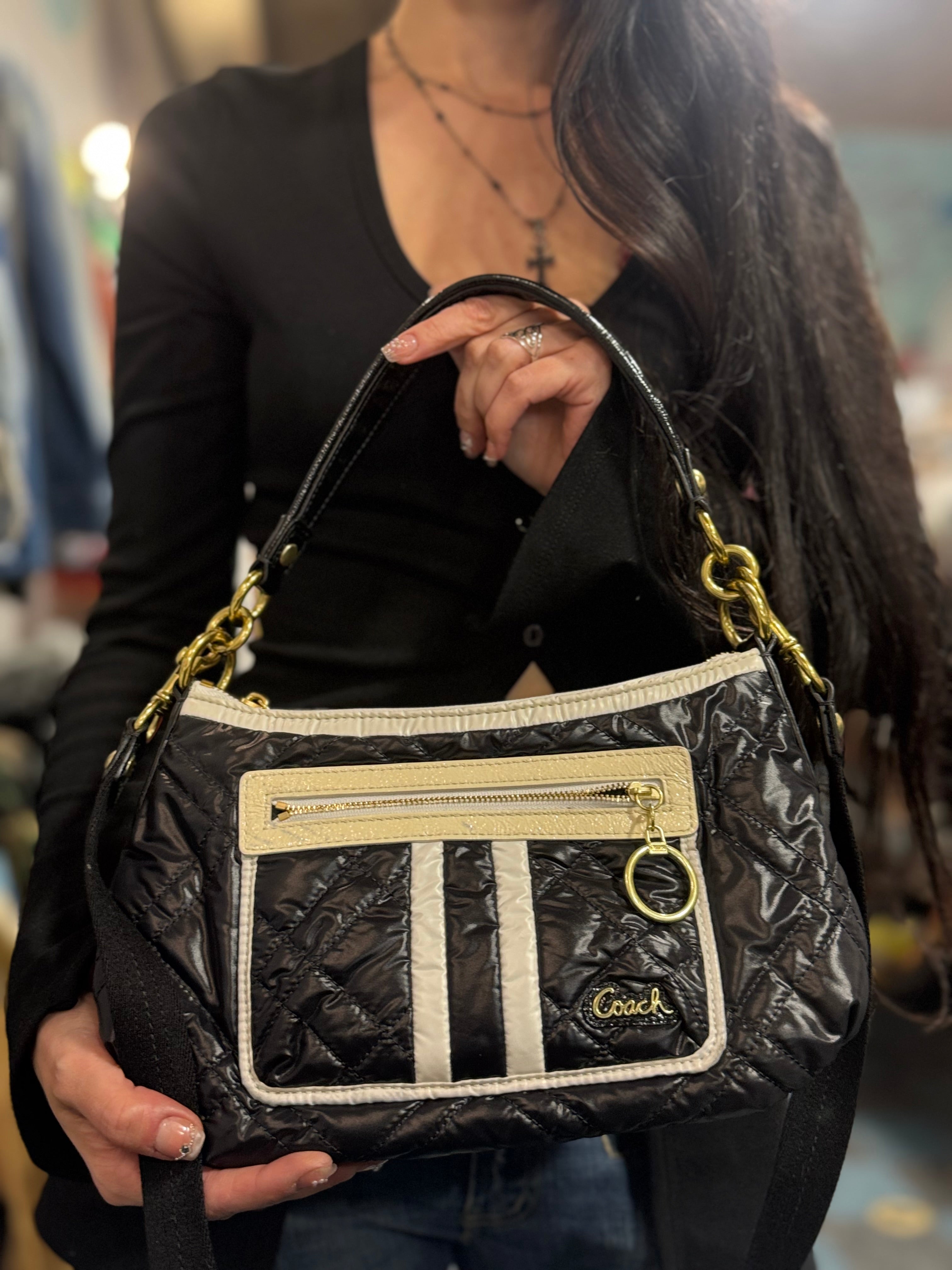 Black Quilted Coach Puffer Bag With Gold Hardware