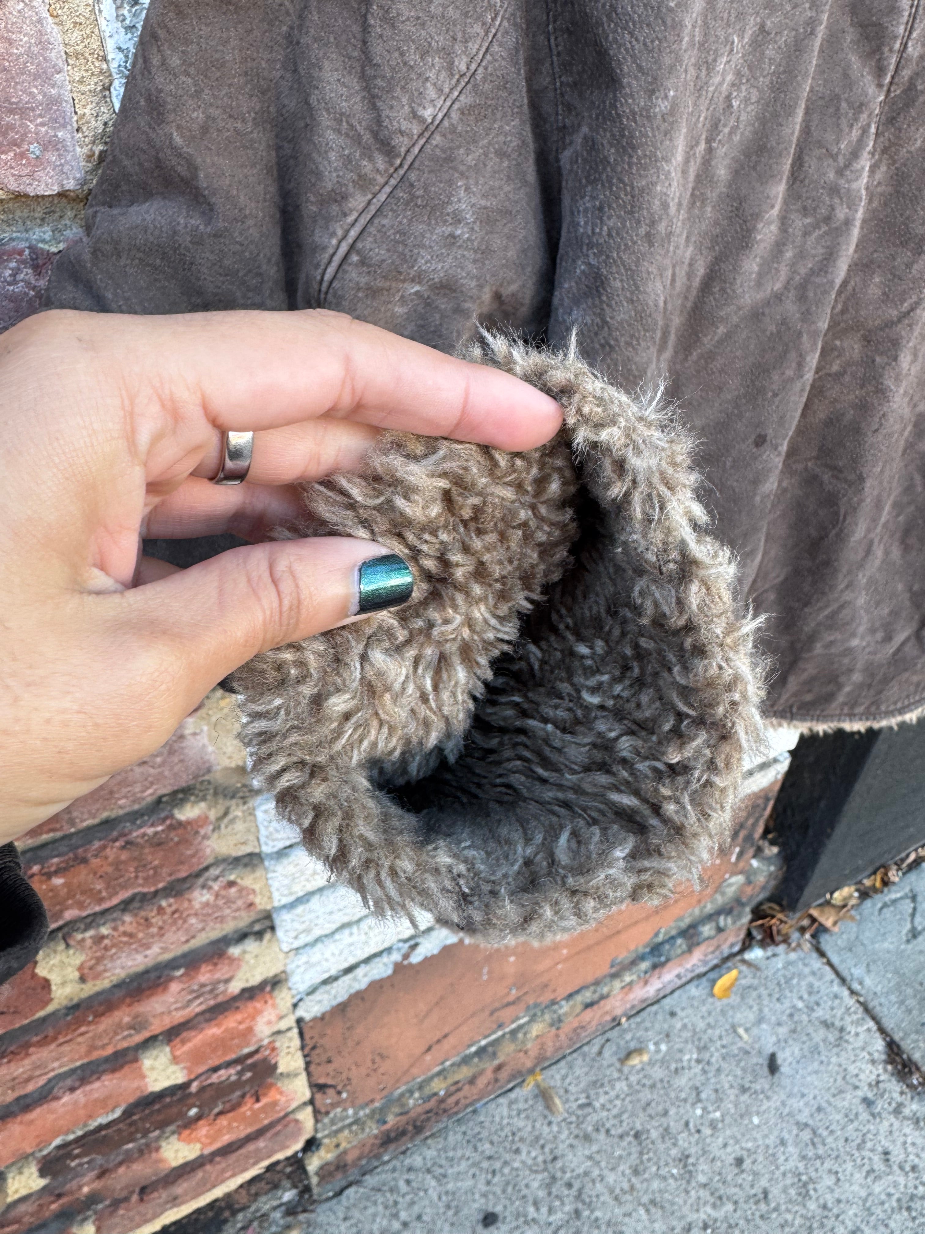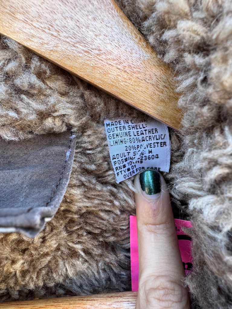 Brown Leather Faux Fur Lined Button Up Coat Size M