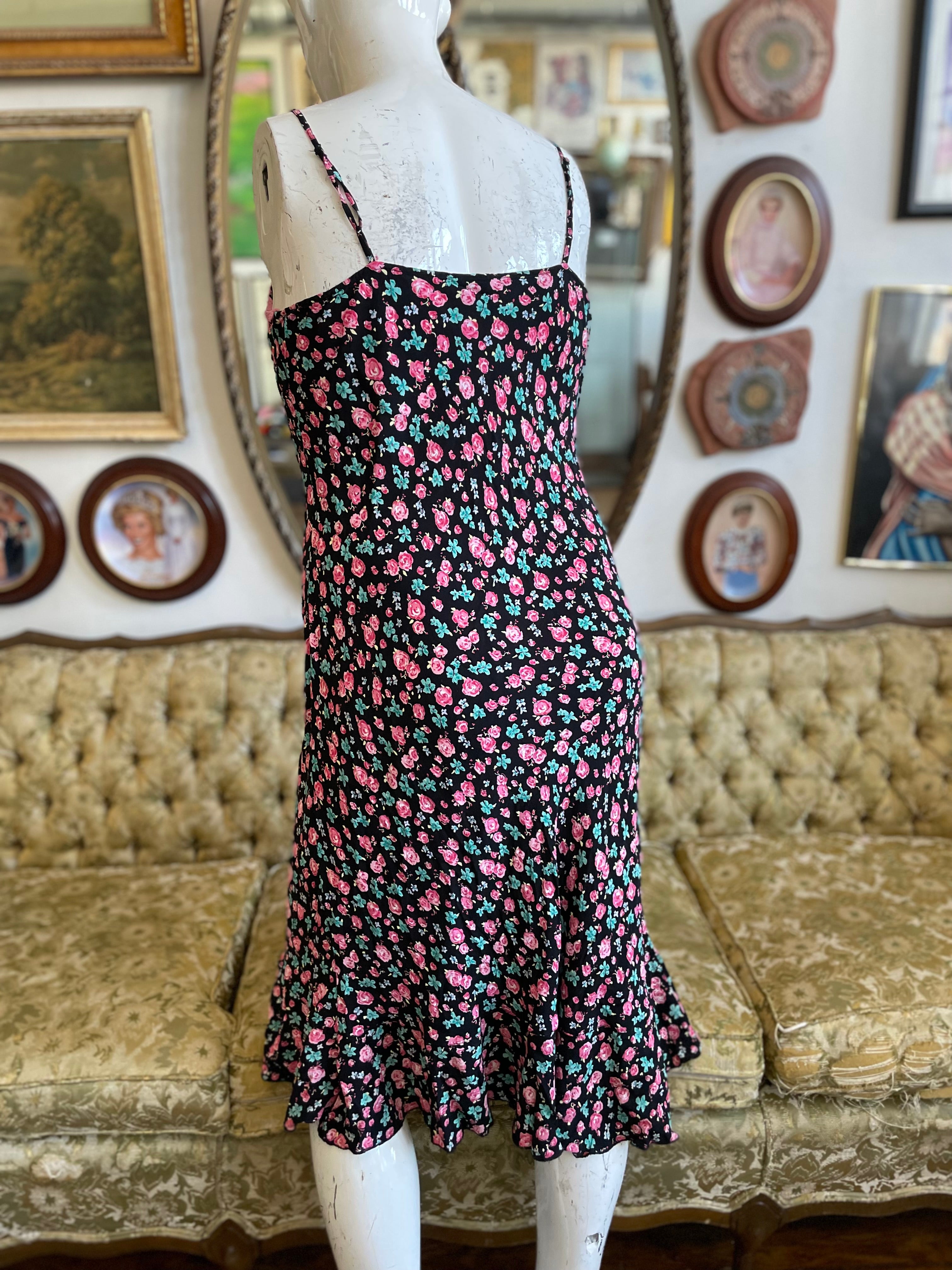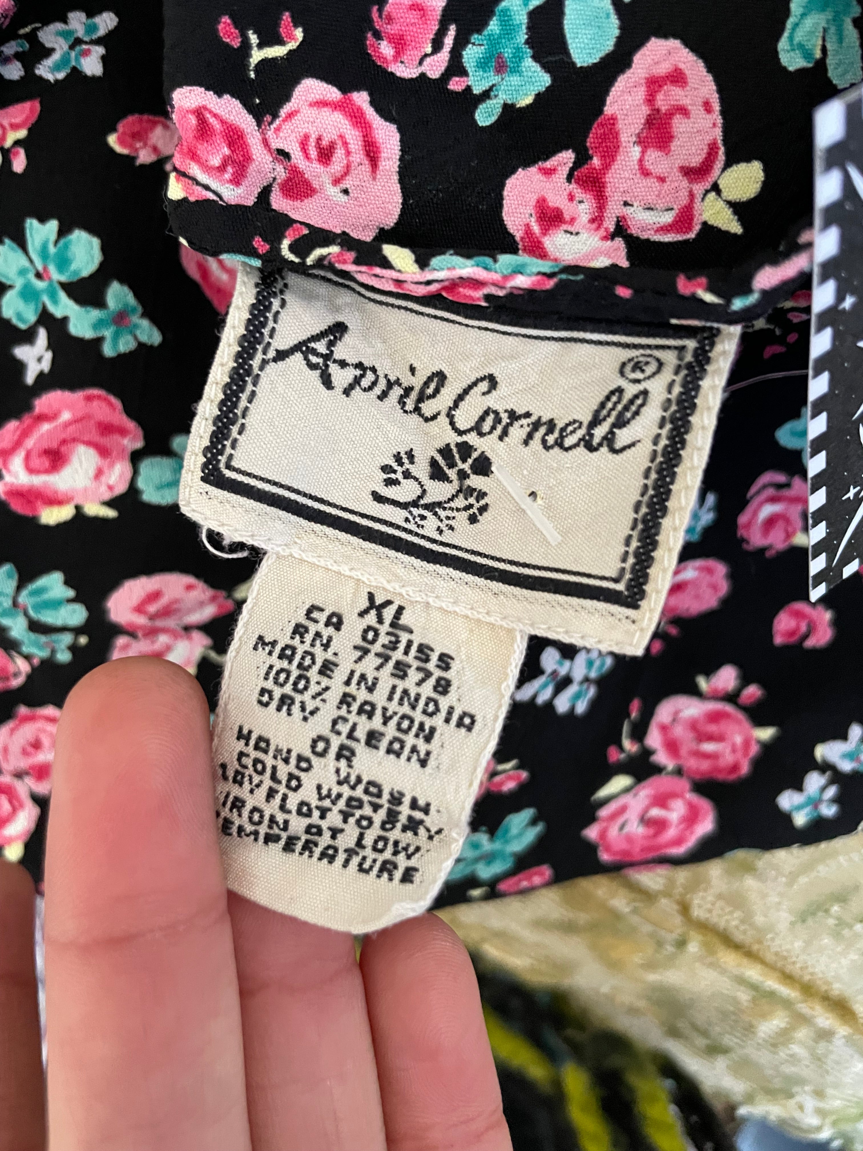 90s April Cornell Black Rose Midi Dress Size XL