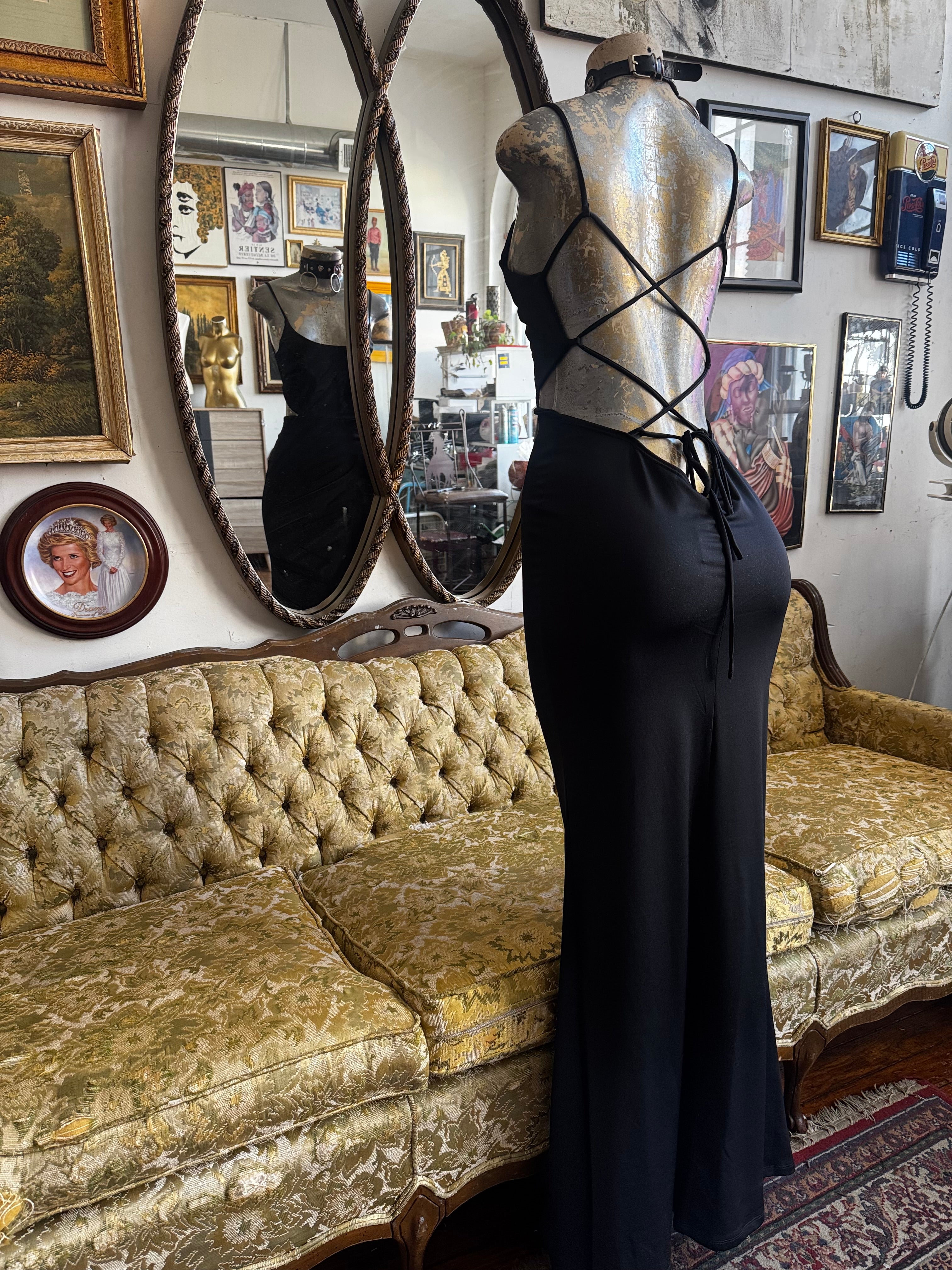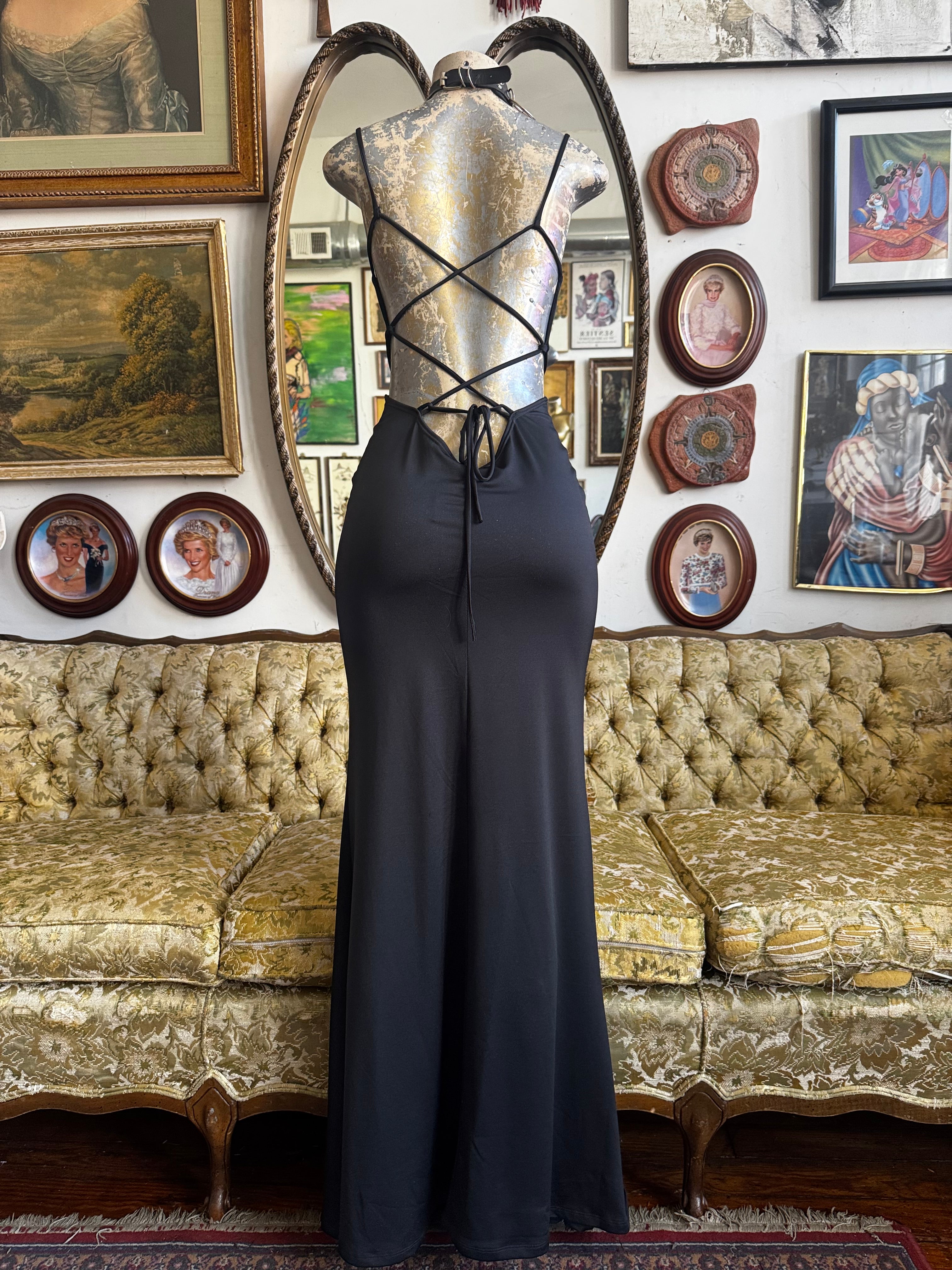 Privy Black Open Back Strappy Maxi Dress Size Large