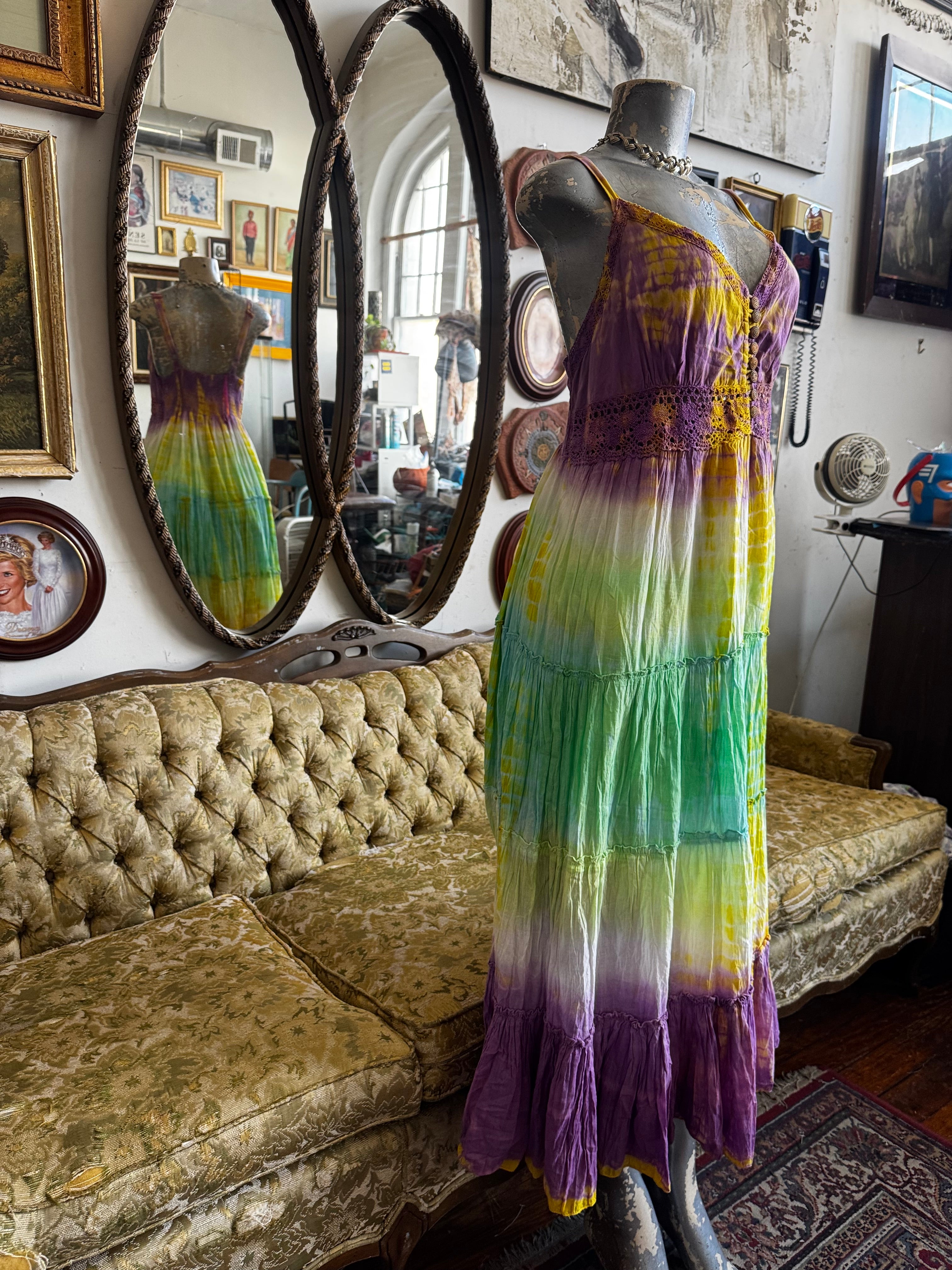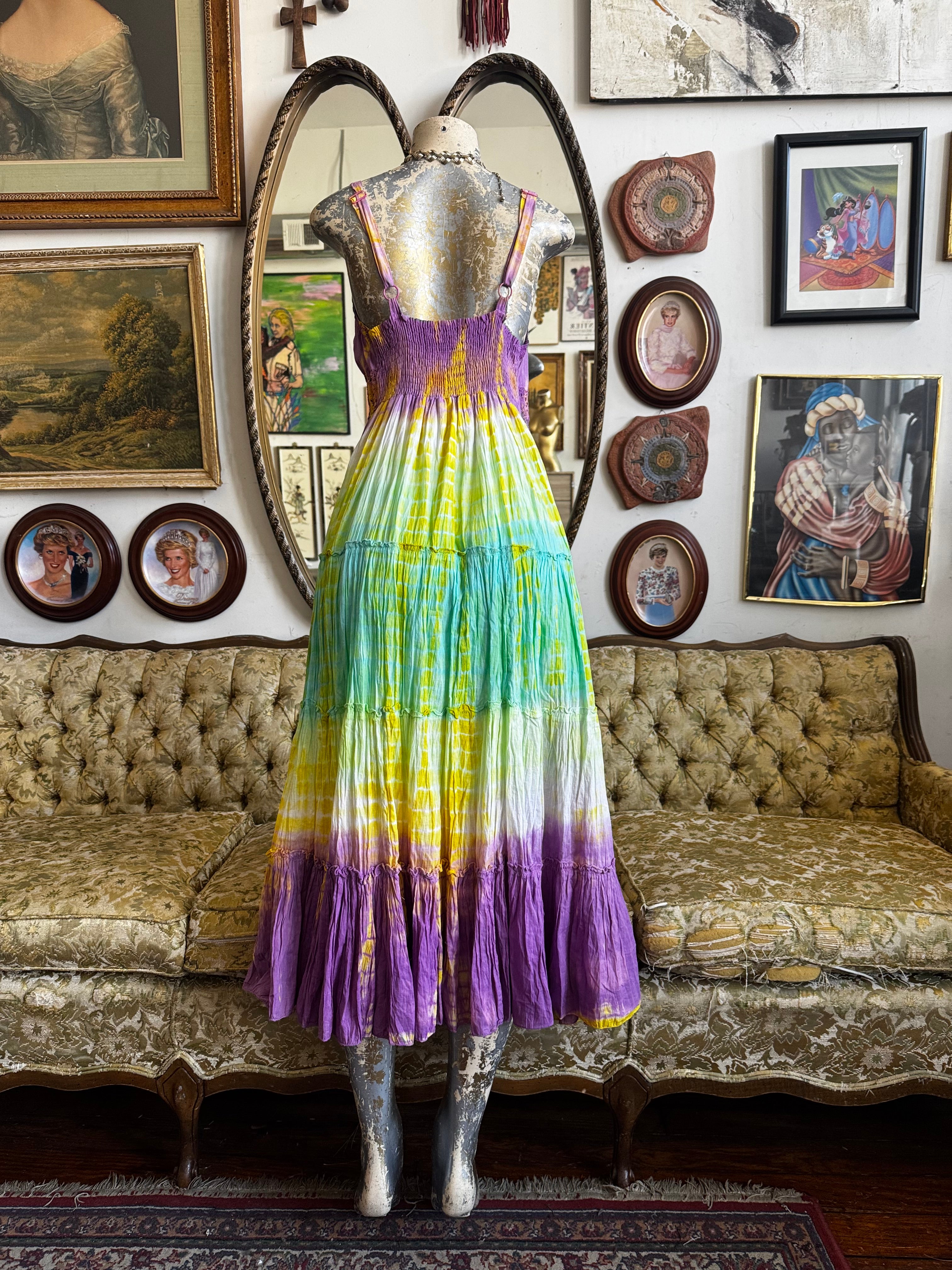Pastel Tie Dye Tiered Maxi Dress Size Medium