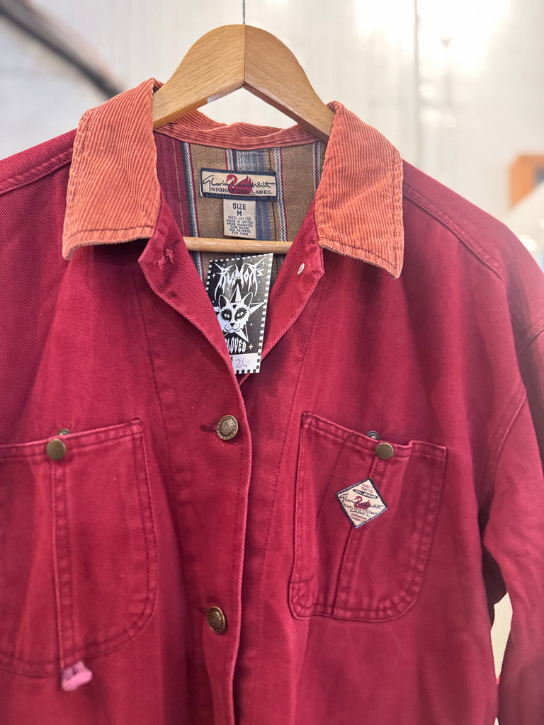 90s Gloria Vanderbuilt Cherry Red Chore Jacket Size M