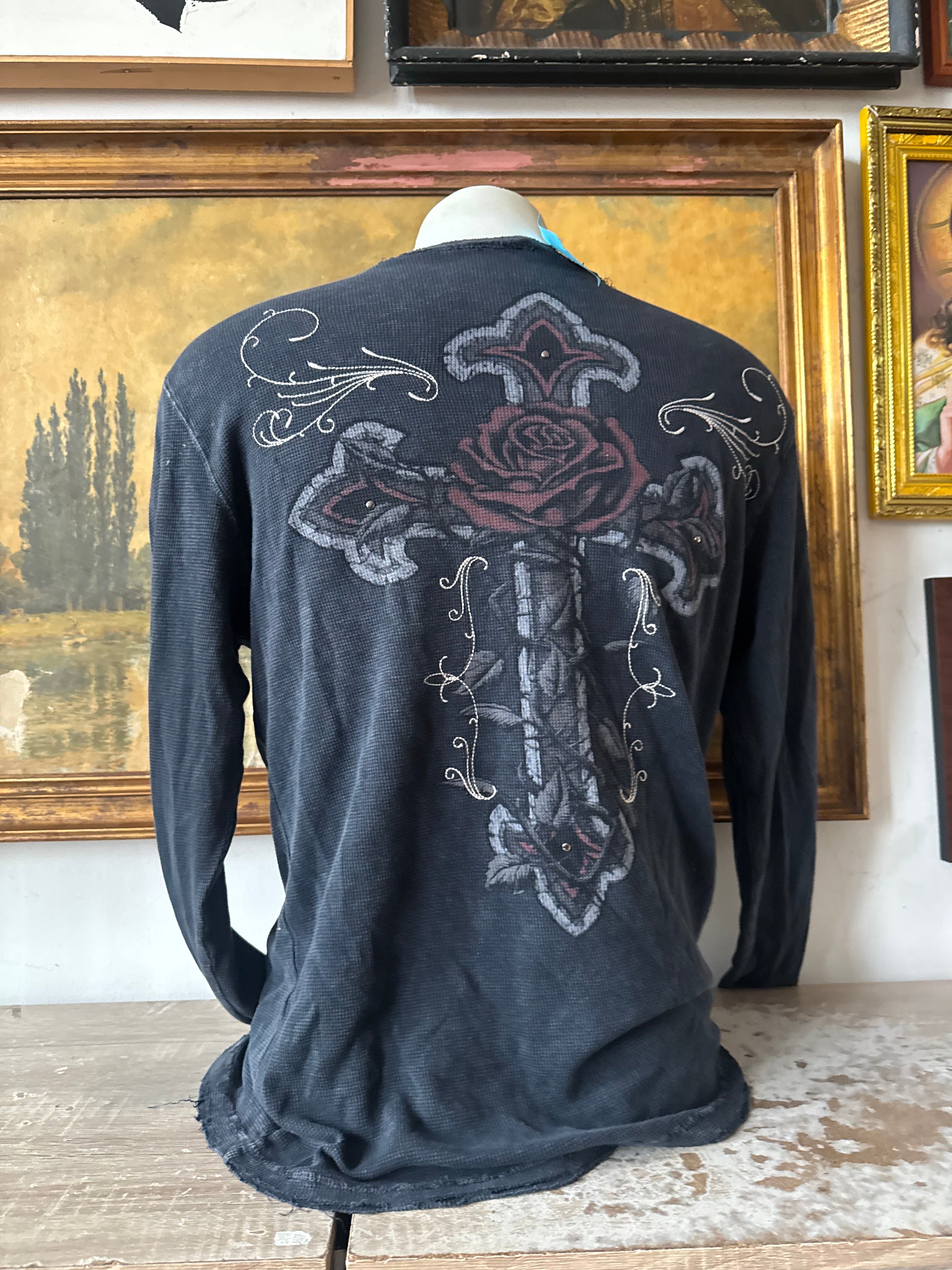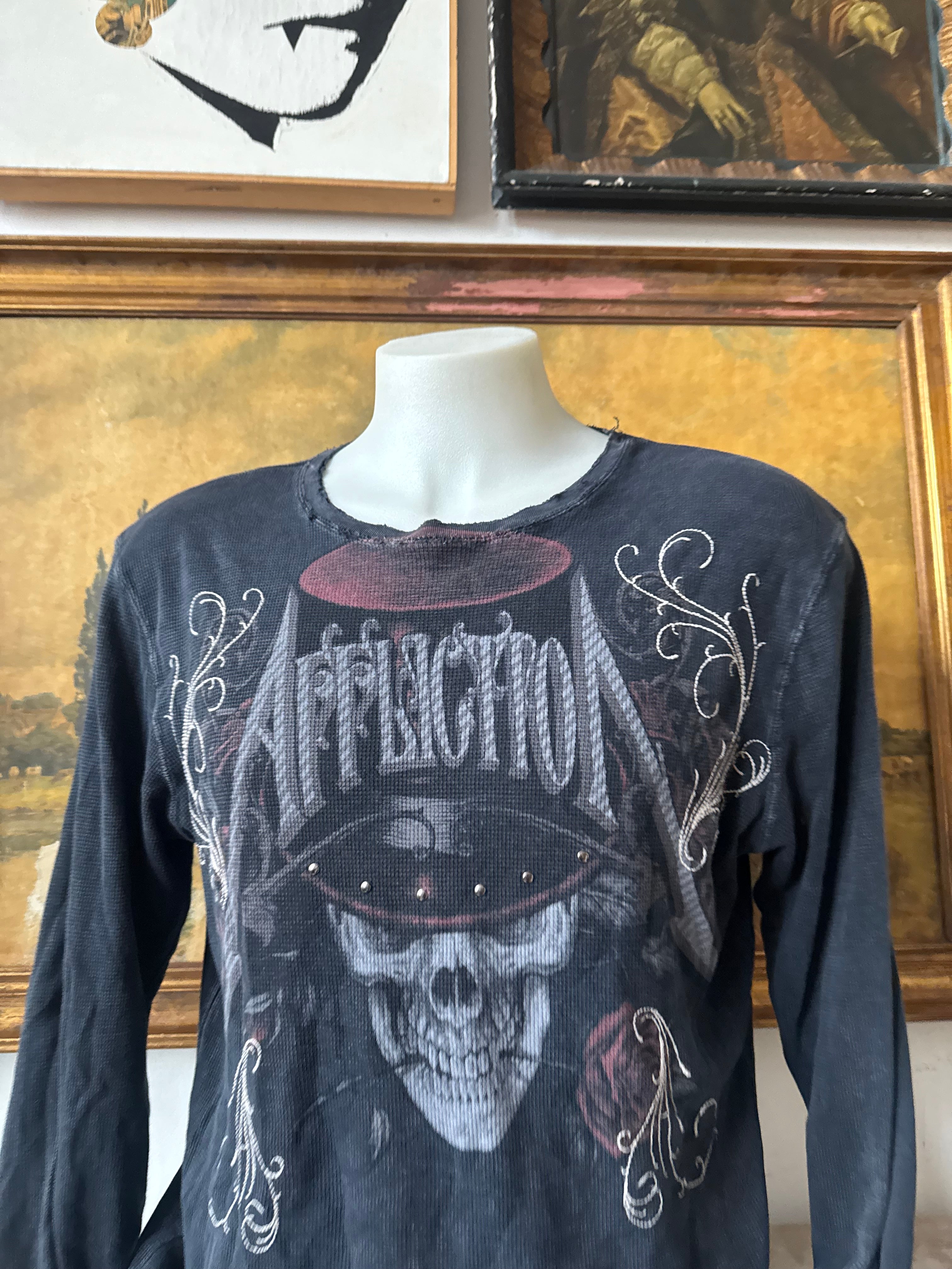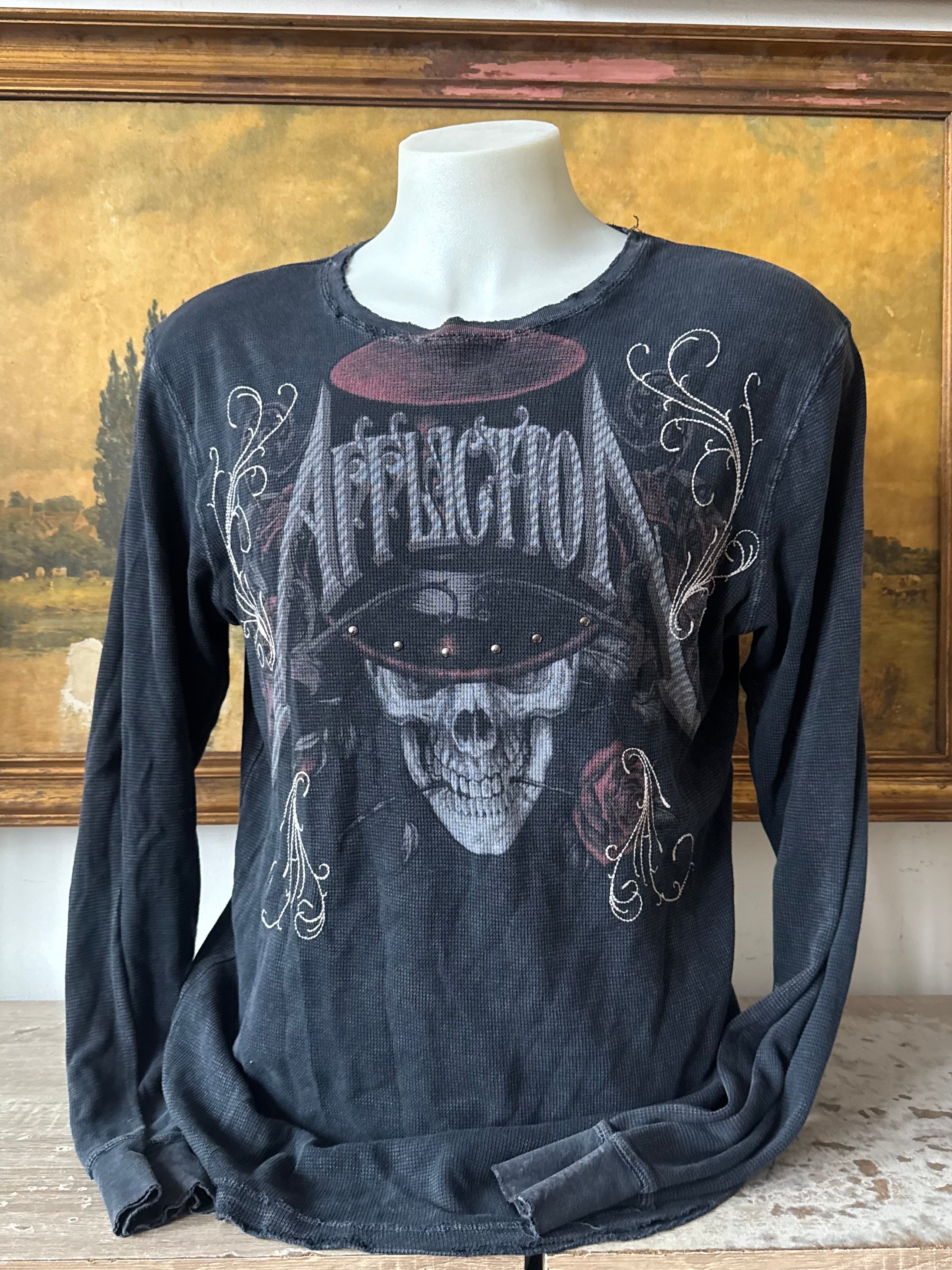 Affliction Studded Skull Thermal Longsleeve Size XL