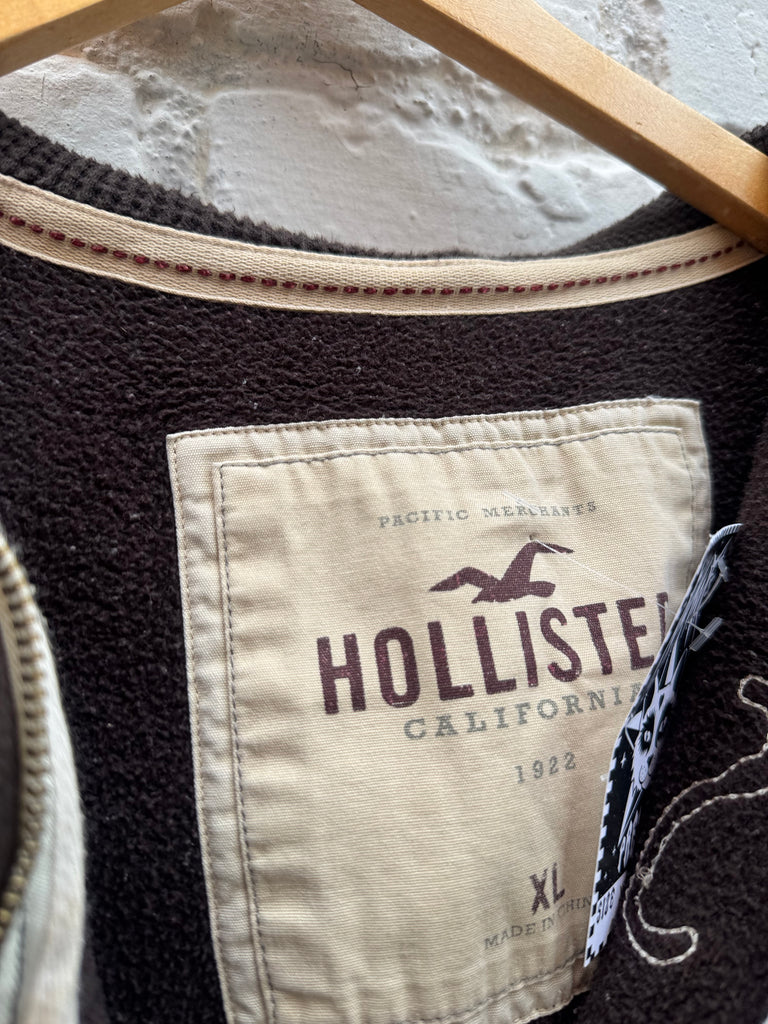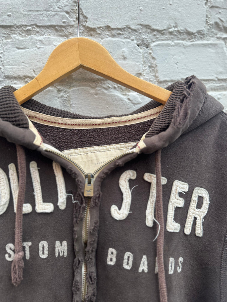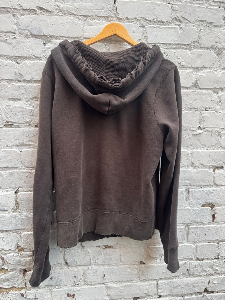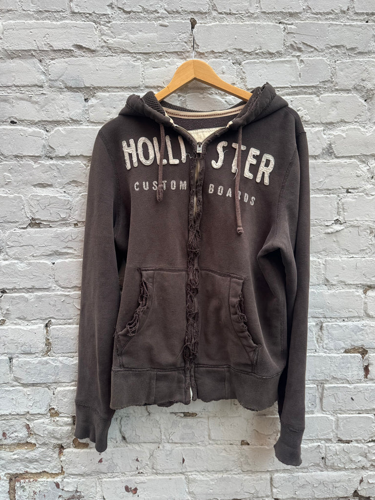 2000s Hollister Brown Distressed Zip Front Hoodie Size XL AS IS