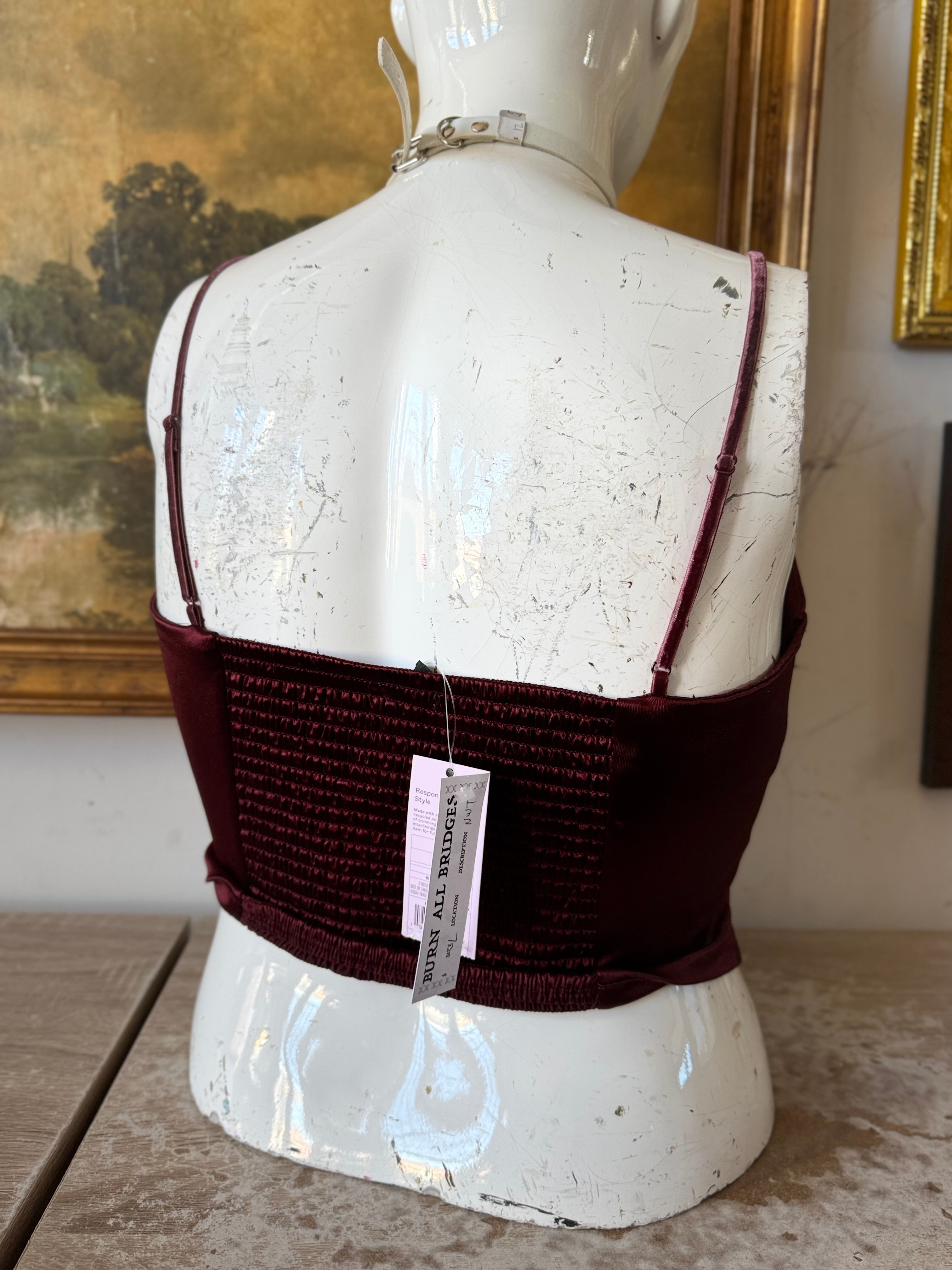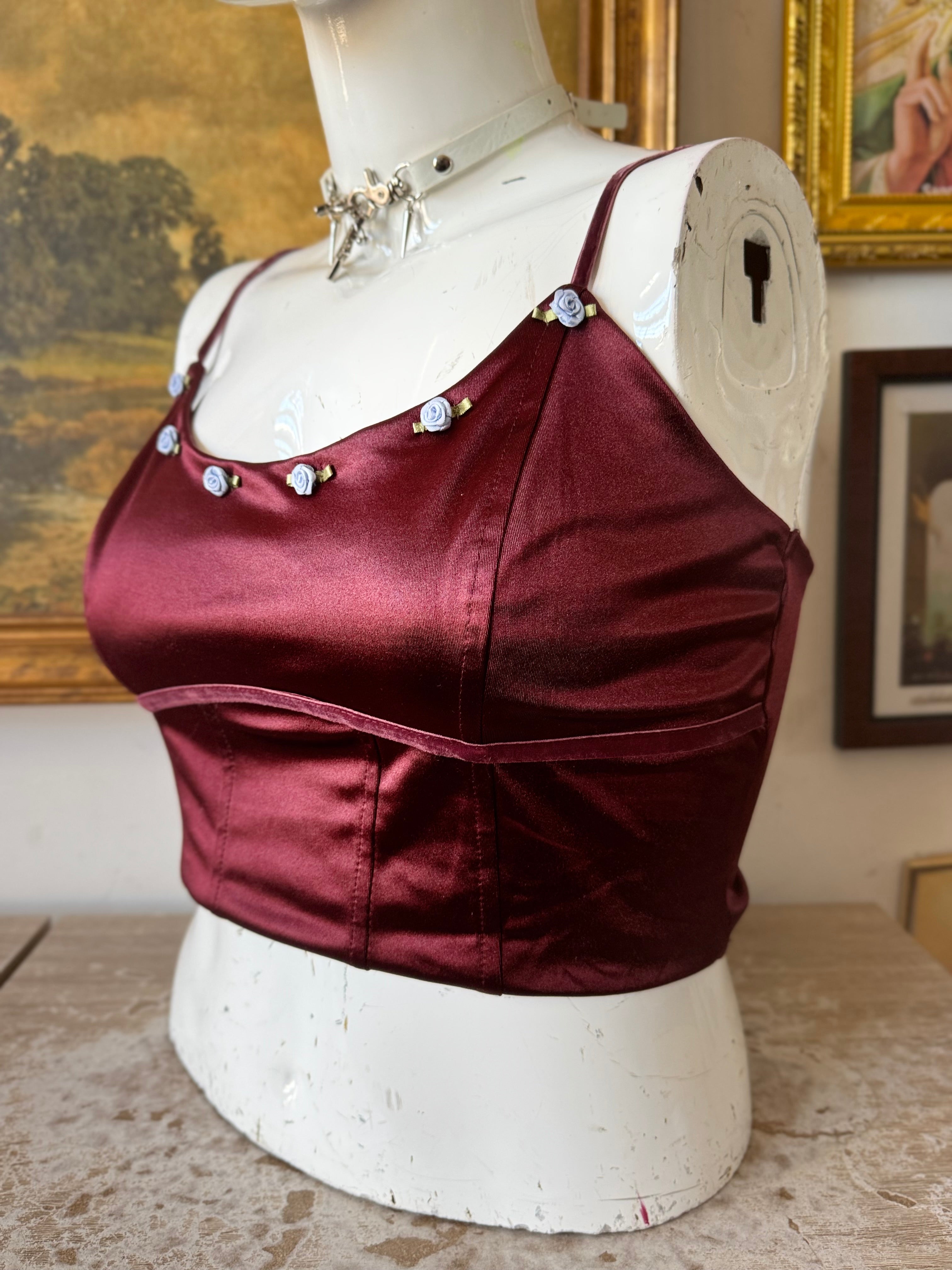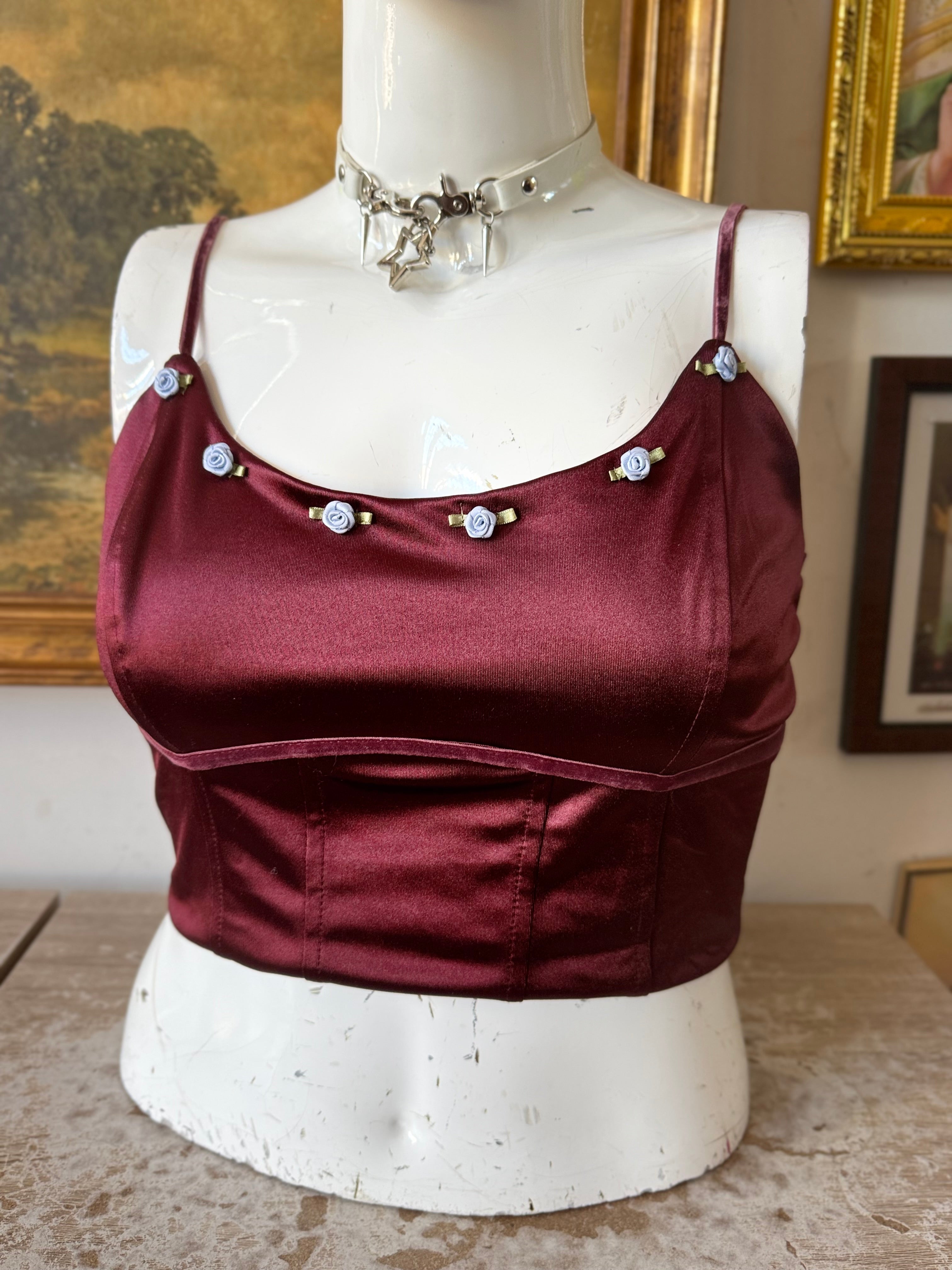 NWT Elegant Satin Crop Top w Floral Bust Size Large