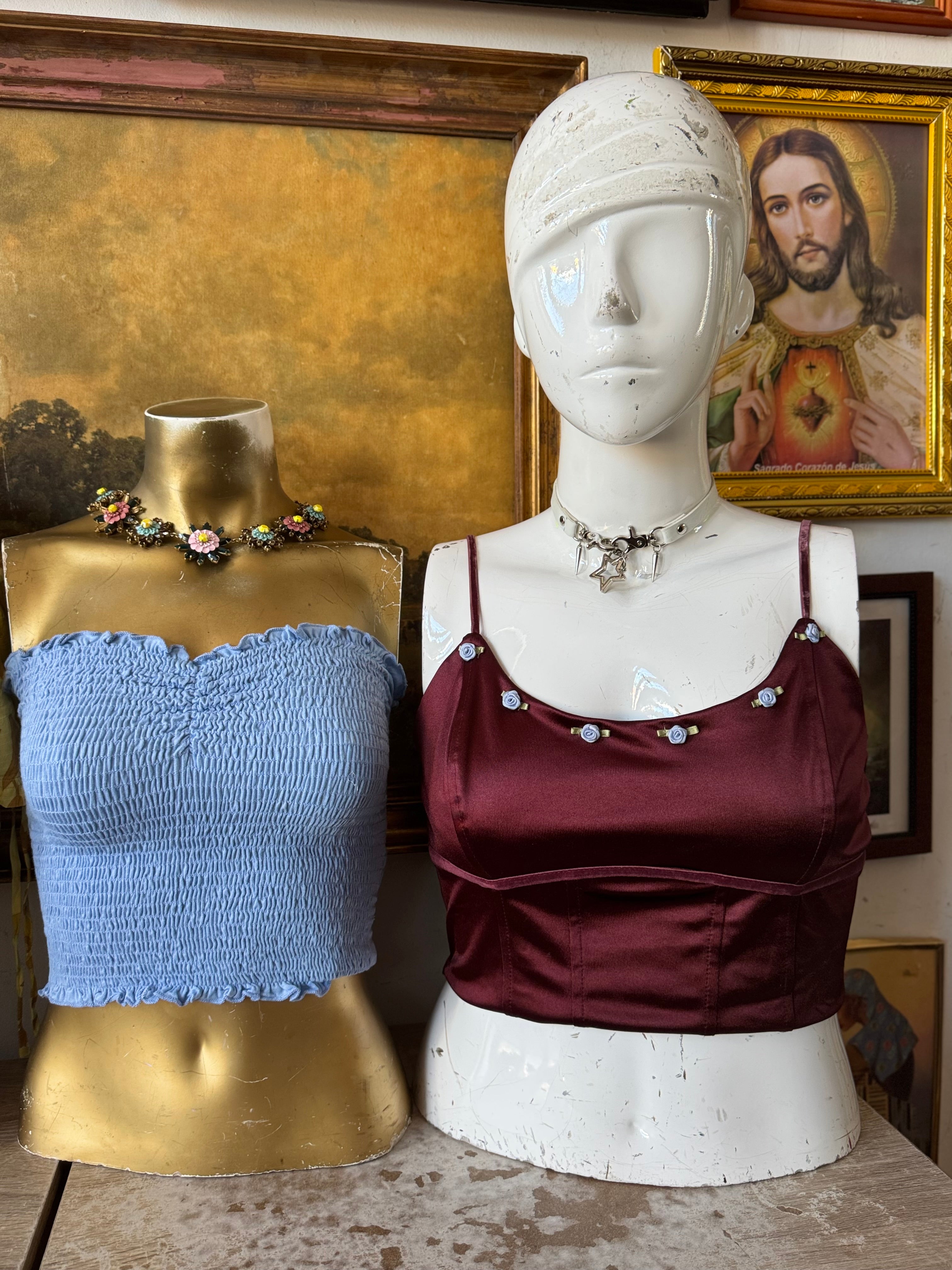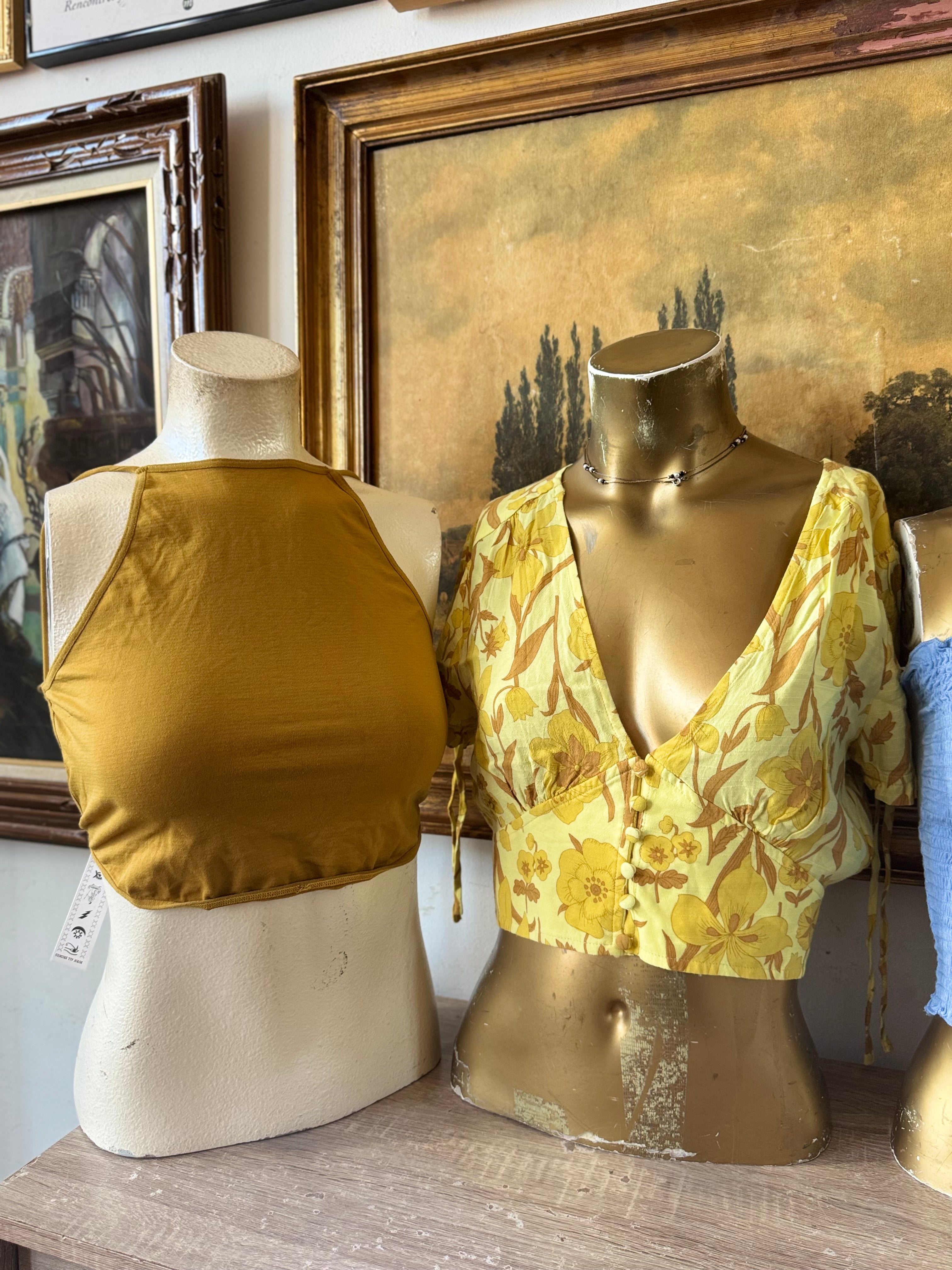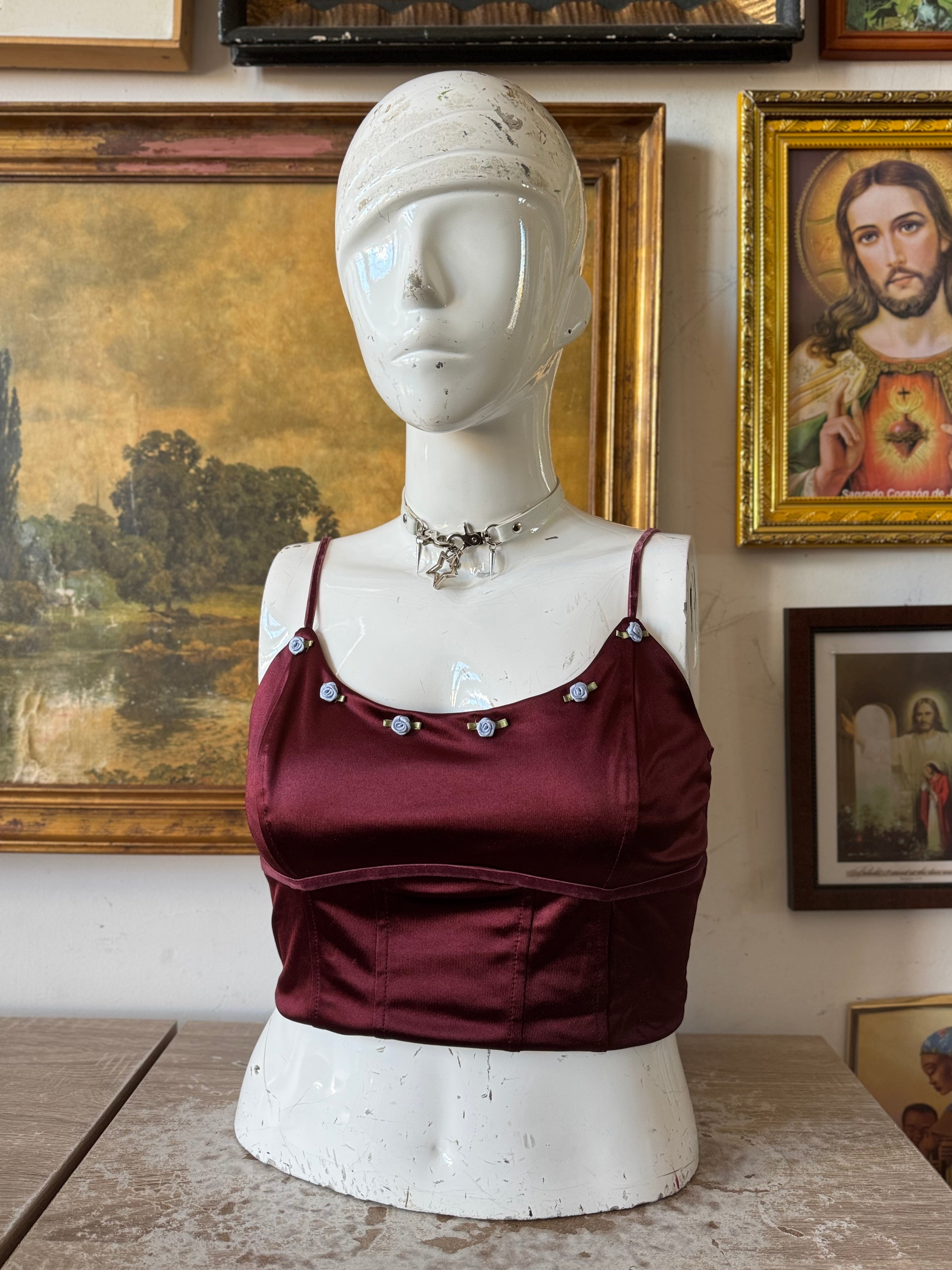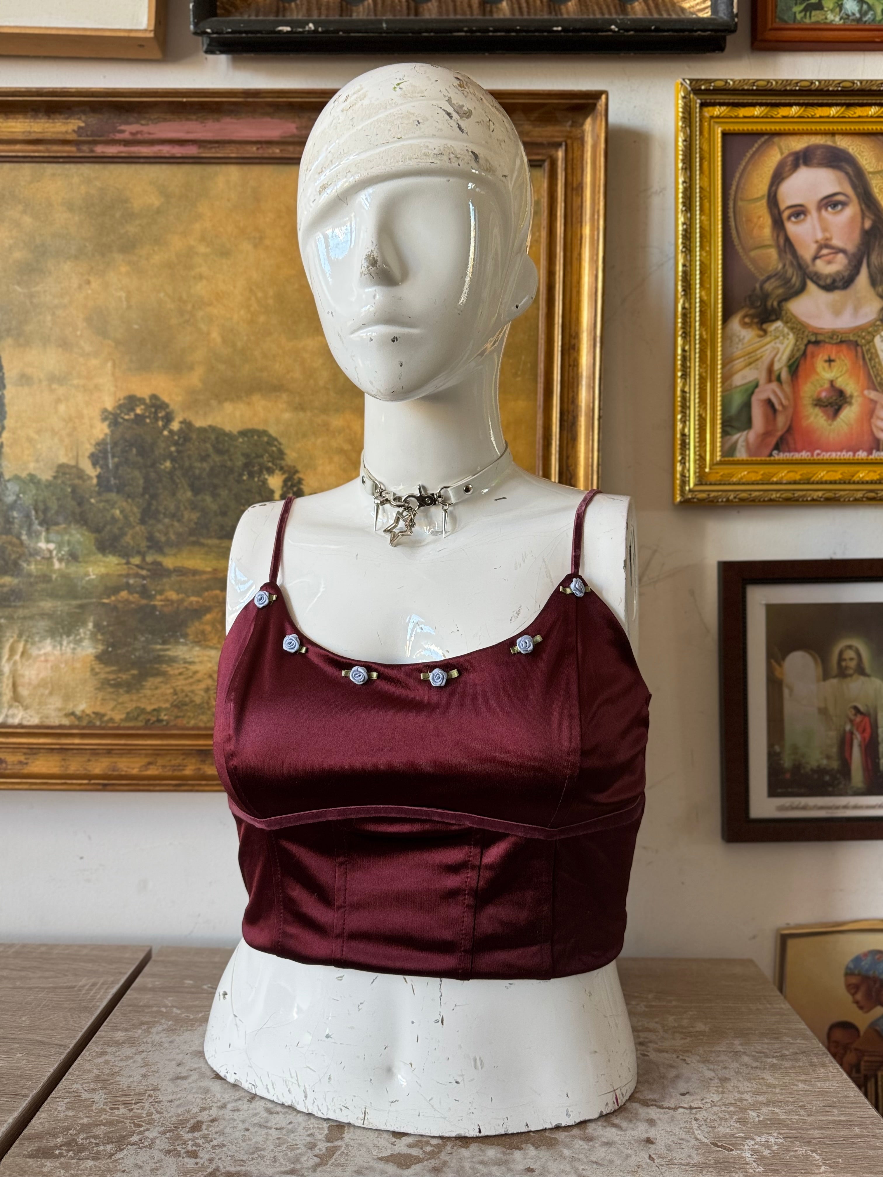 NWT Elegant Satin Crop Top w Floral Bust Size Large