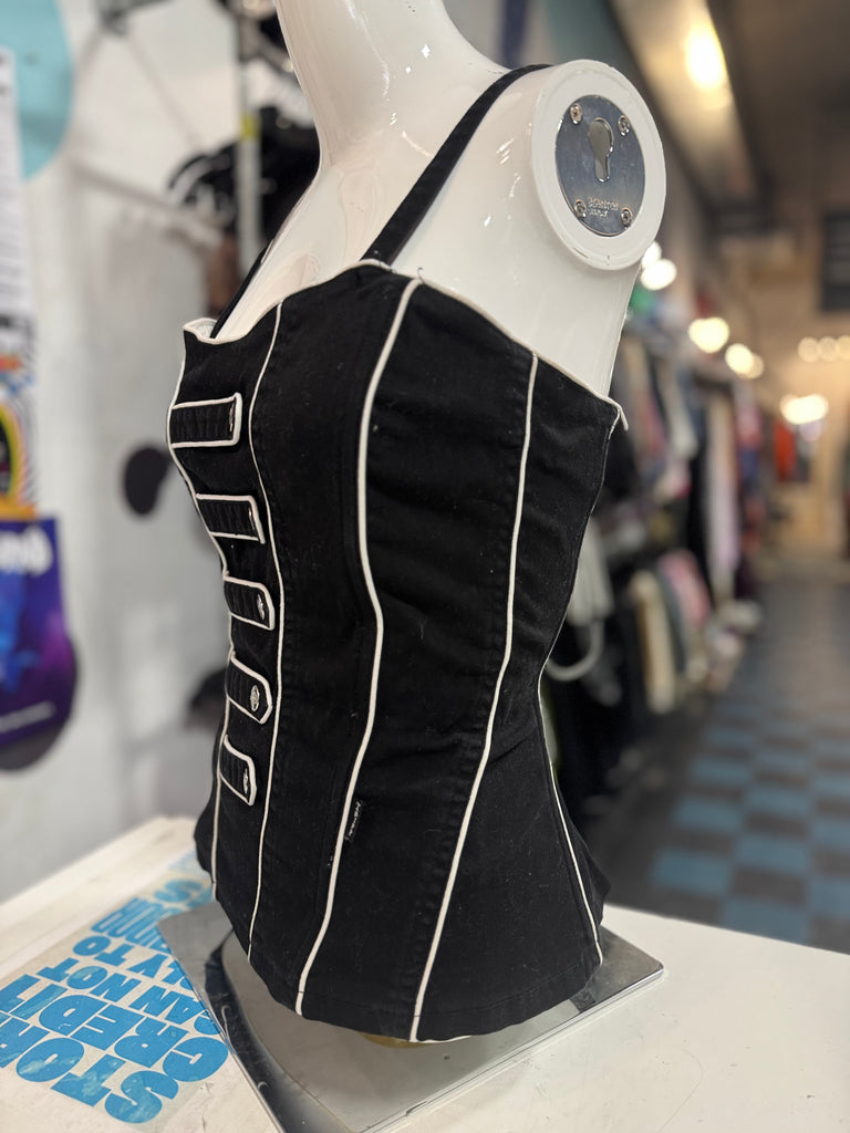 TRIPP Black Contrast Piping Military Tank with Boning Size M AS IS
