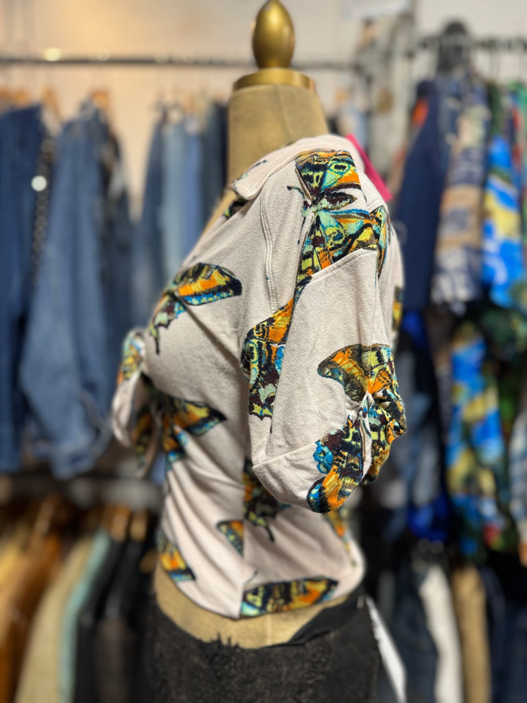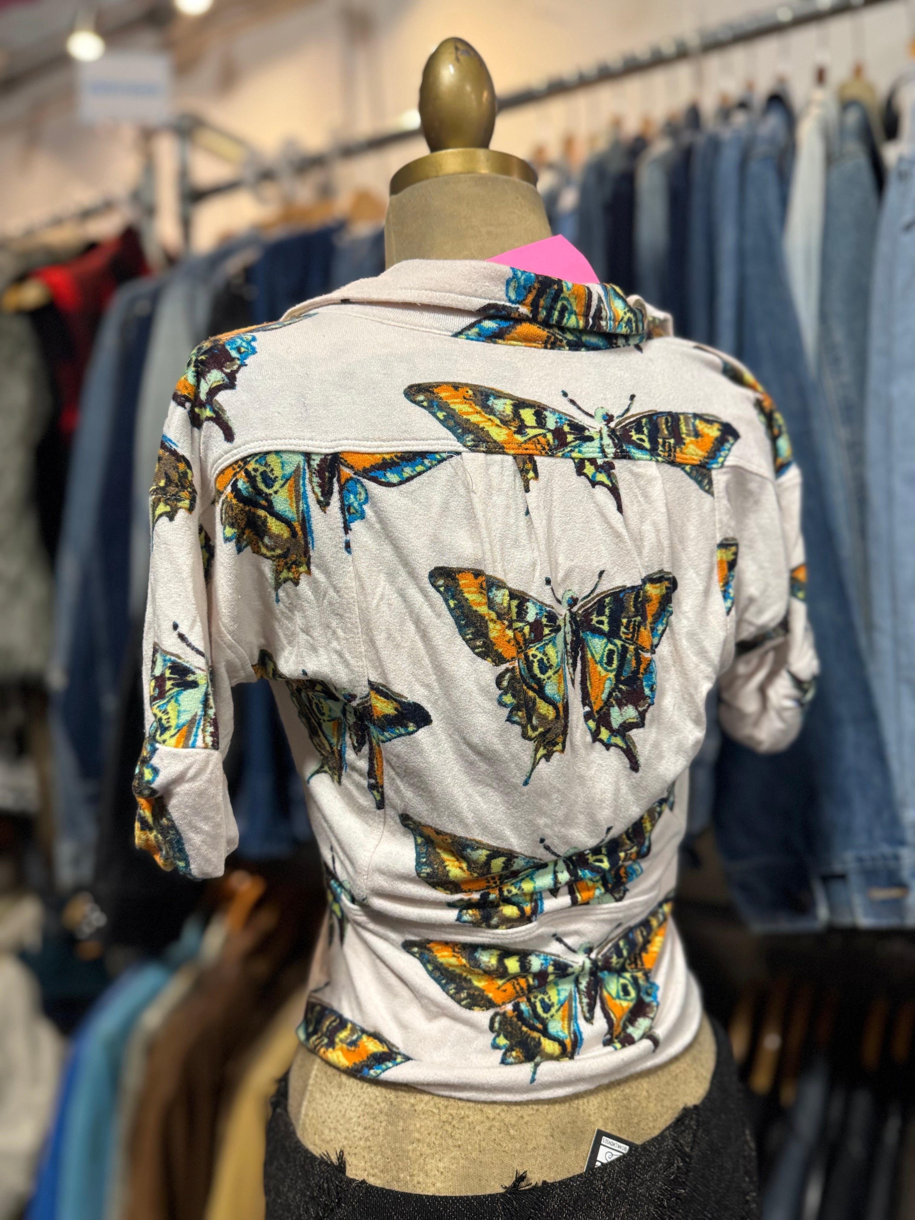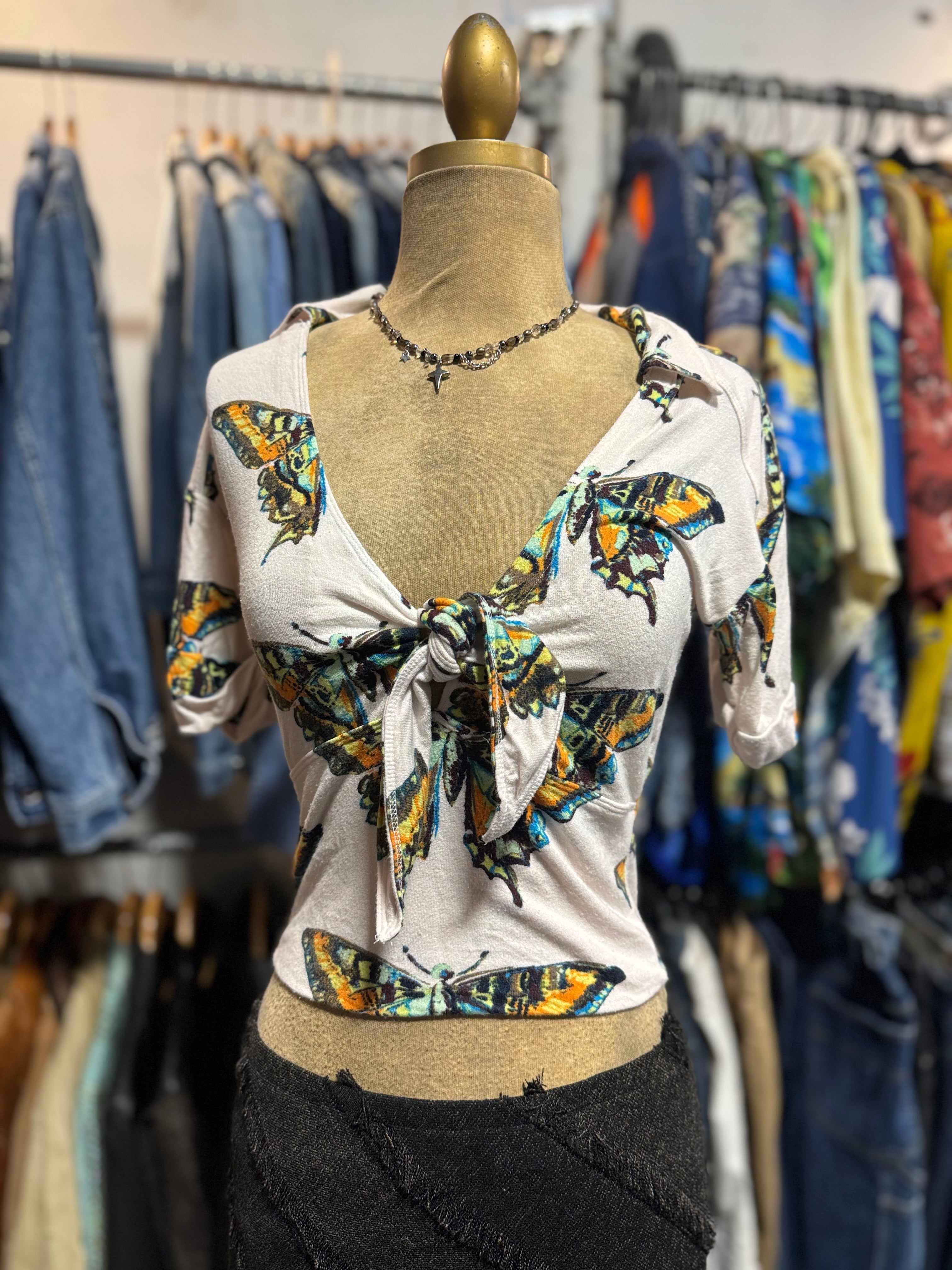 Expertly crafted from soft, stretchy fabric, this Free People Butterfly Top combines comfort with style. Featuring a vibrant printed design, this size S top exudes fun and flair. Perfect for any occasion, it offers a flattering fit and effortless wear. Elevate your wardrobe with this must-have piece.