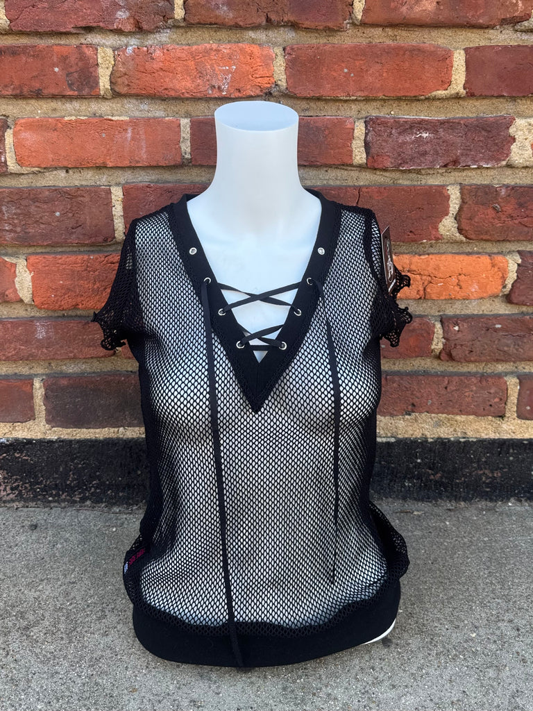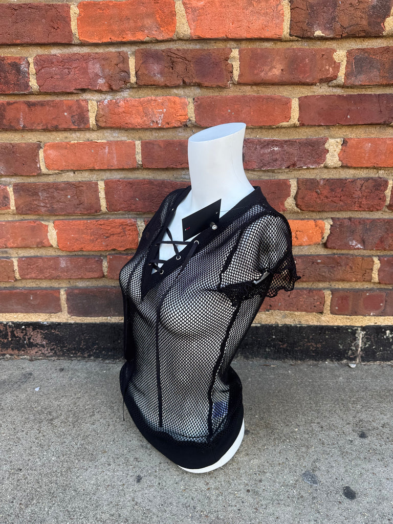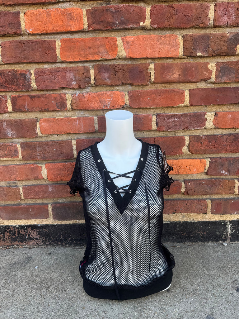Gangyoung Fishnet Embroidered Angel Wing Top Size XS