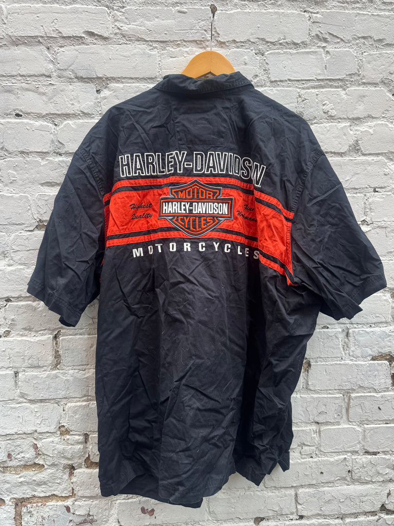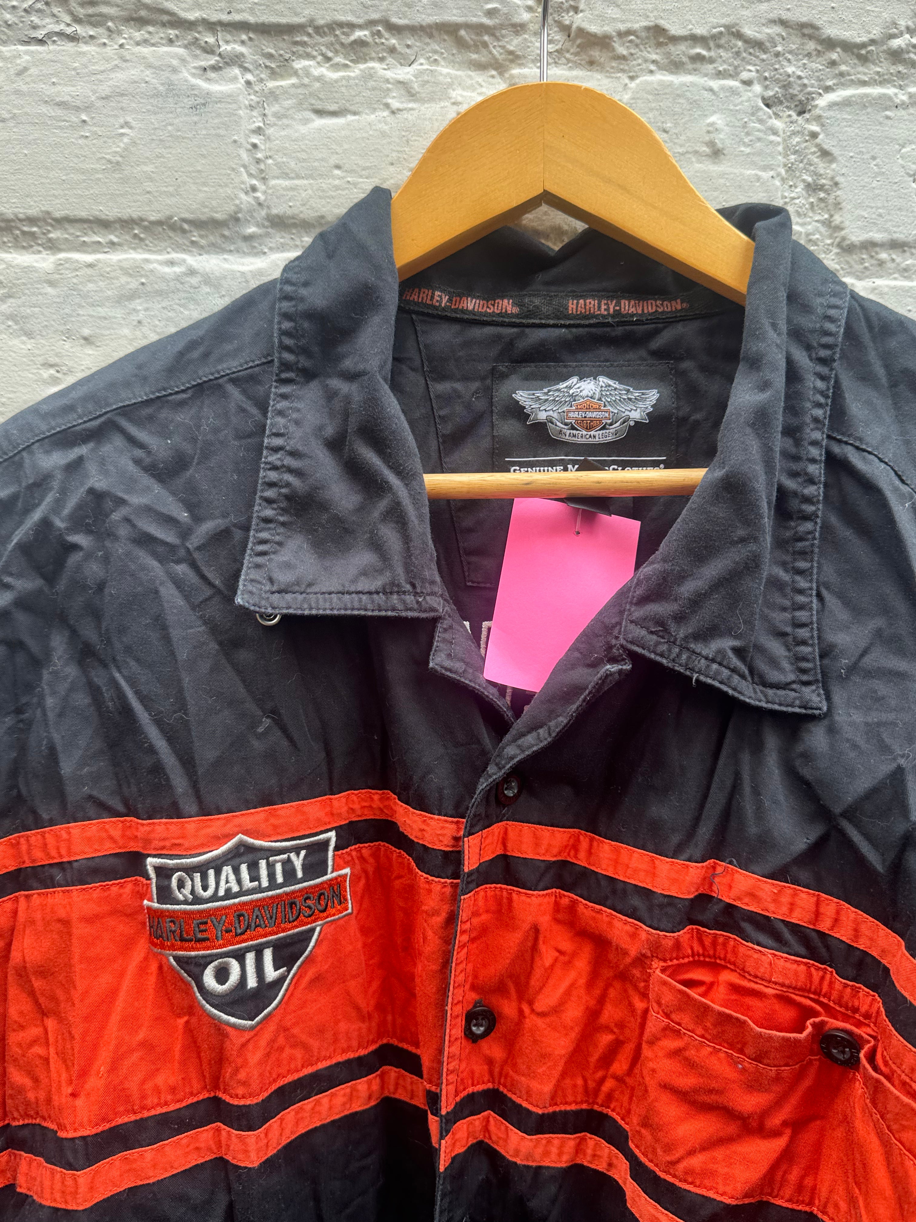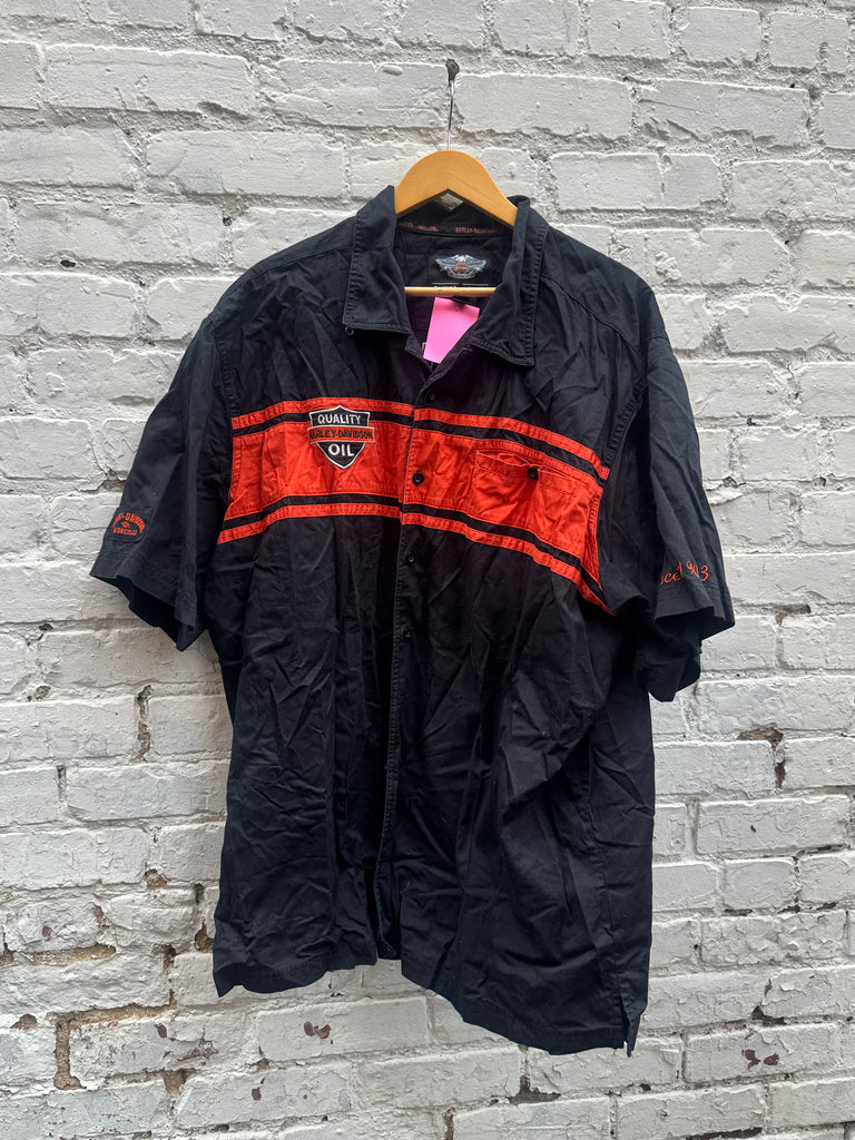Vintage Embroidered Haley Davidson “Quality Oil” Button Up Size 3XL