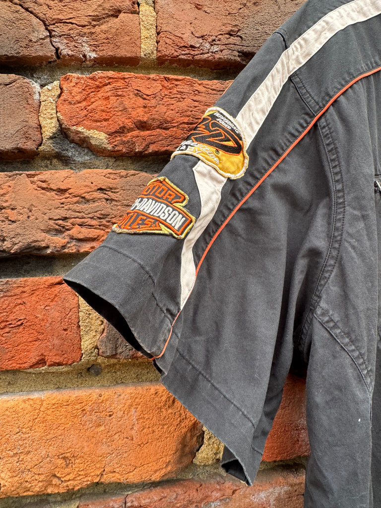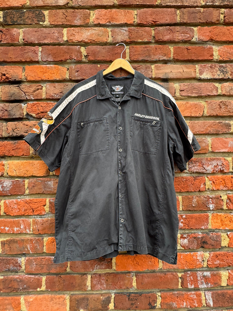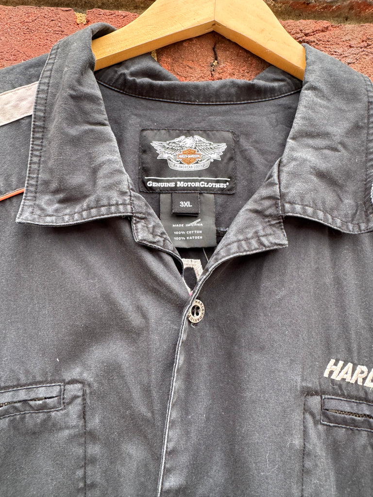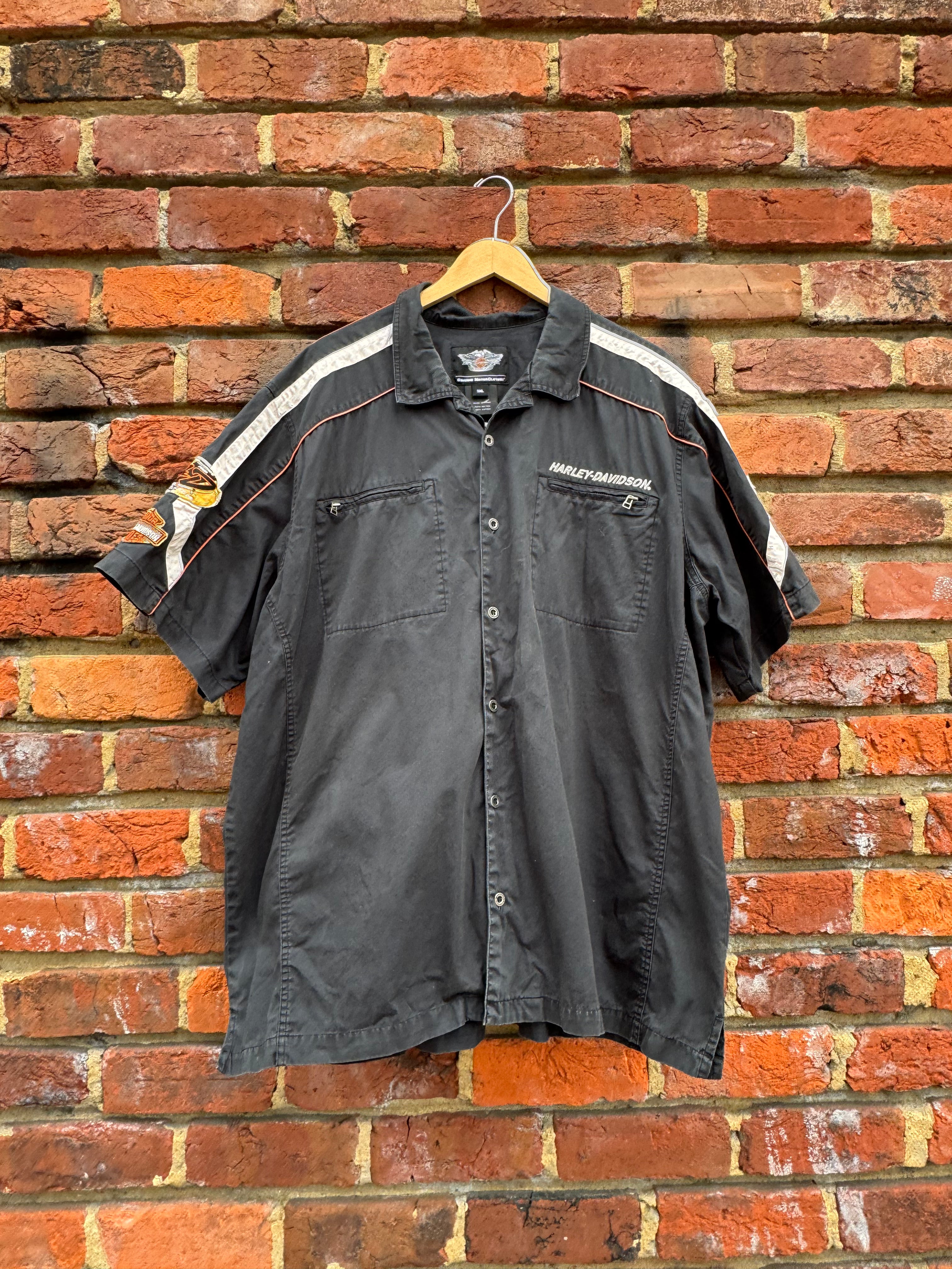 Vintage Embroidered Patch Harley Davidson Button Up Size 3XL