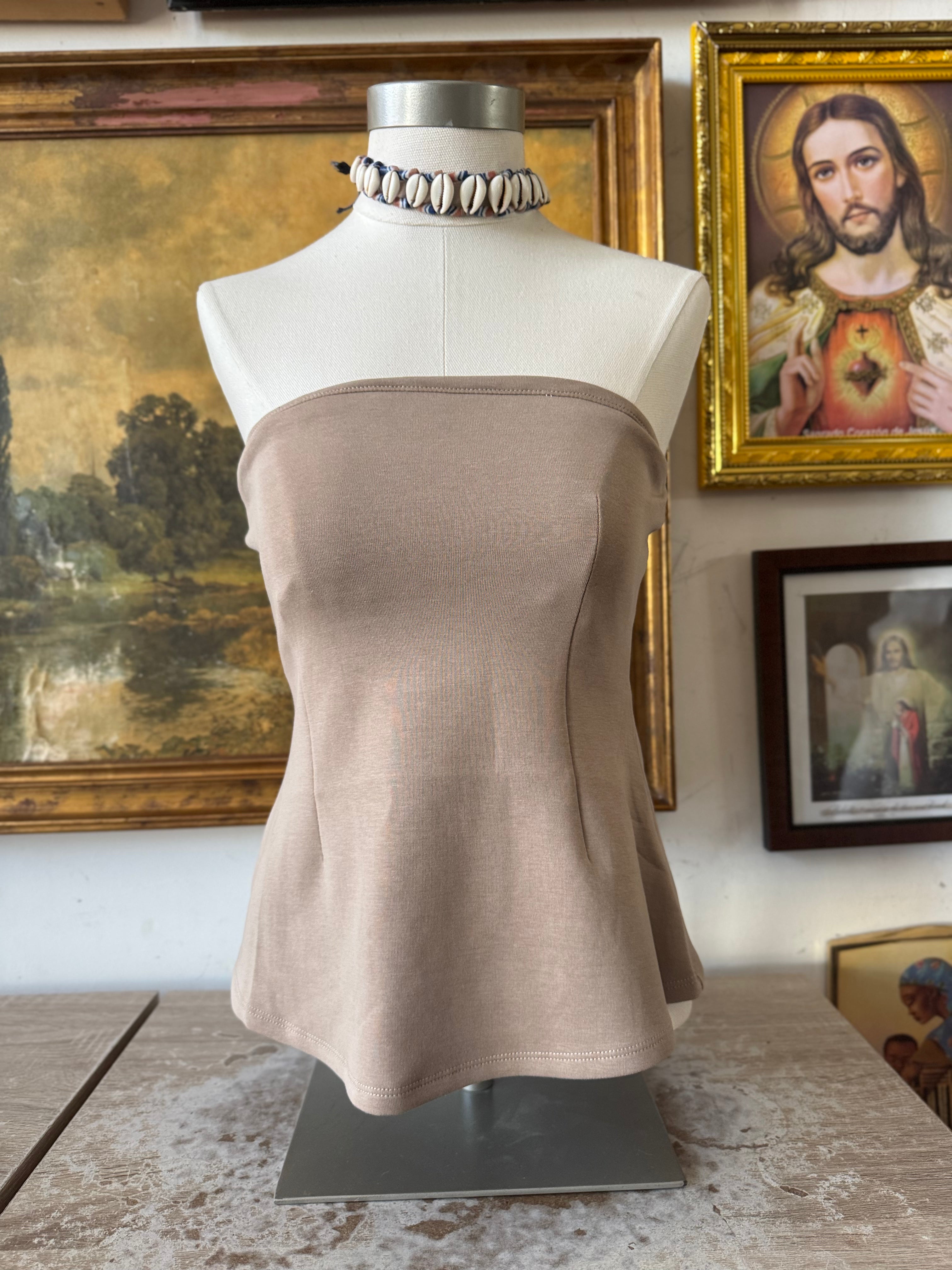 Khaki Spring Knit Jersey Tube Top