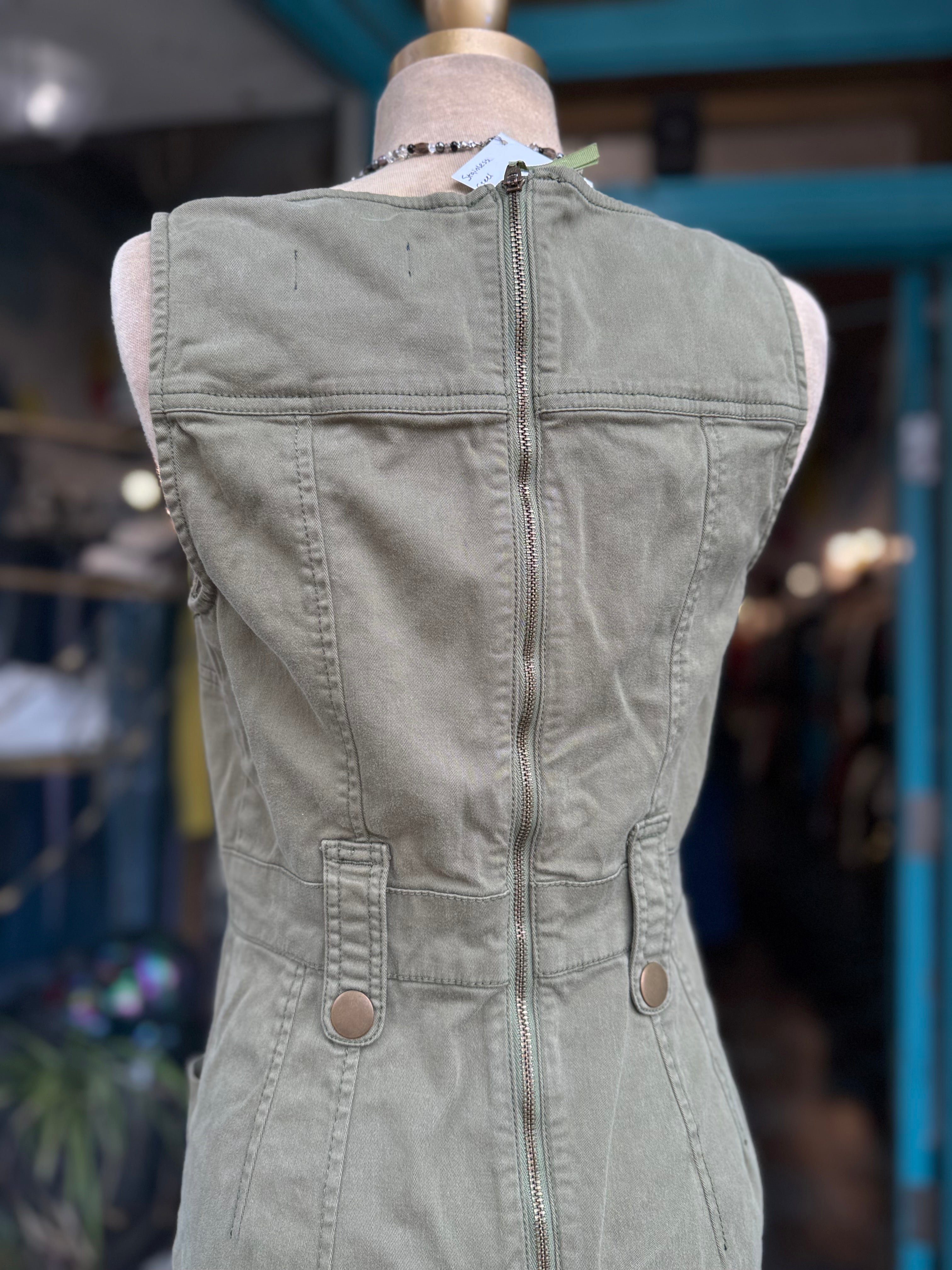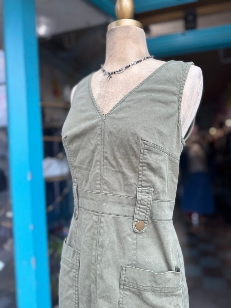 Maeve by Anthropologie Olive Green Cotton Surplus Style Dress Size Small