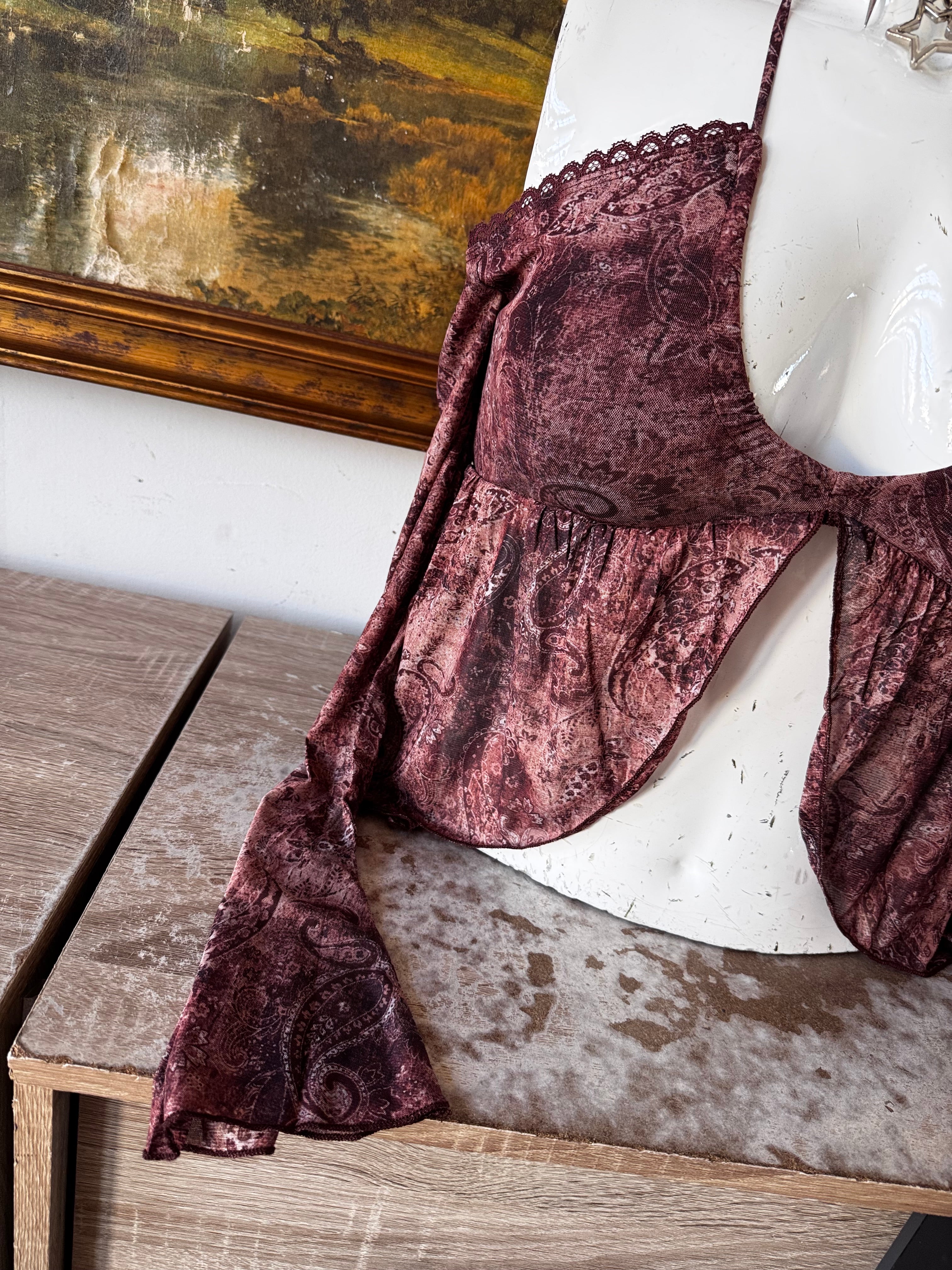 NWT Brown Paisley Flutter Top