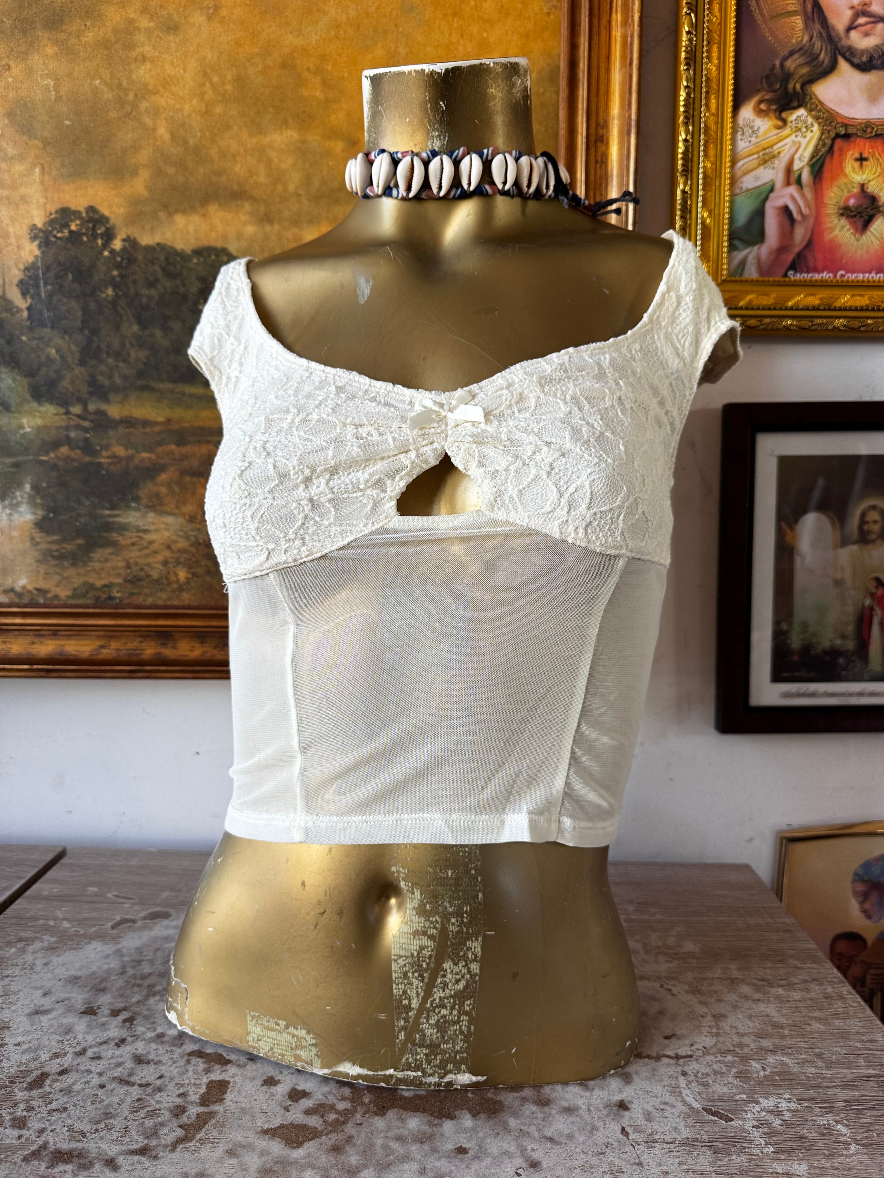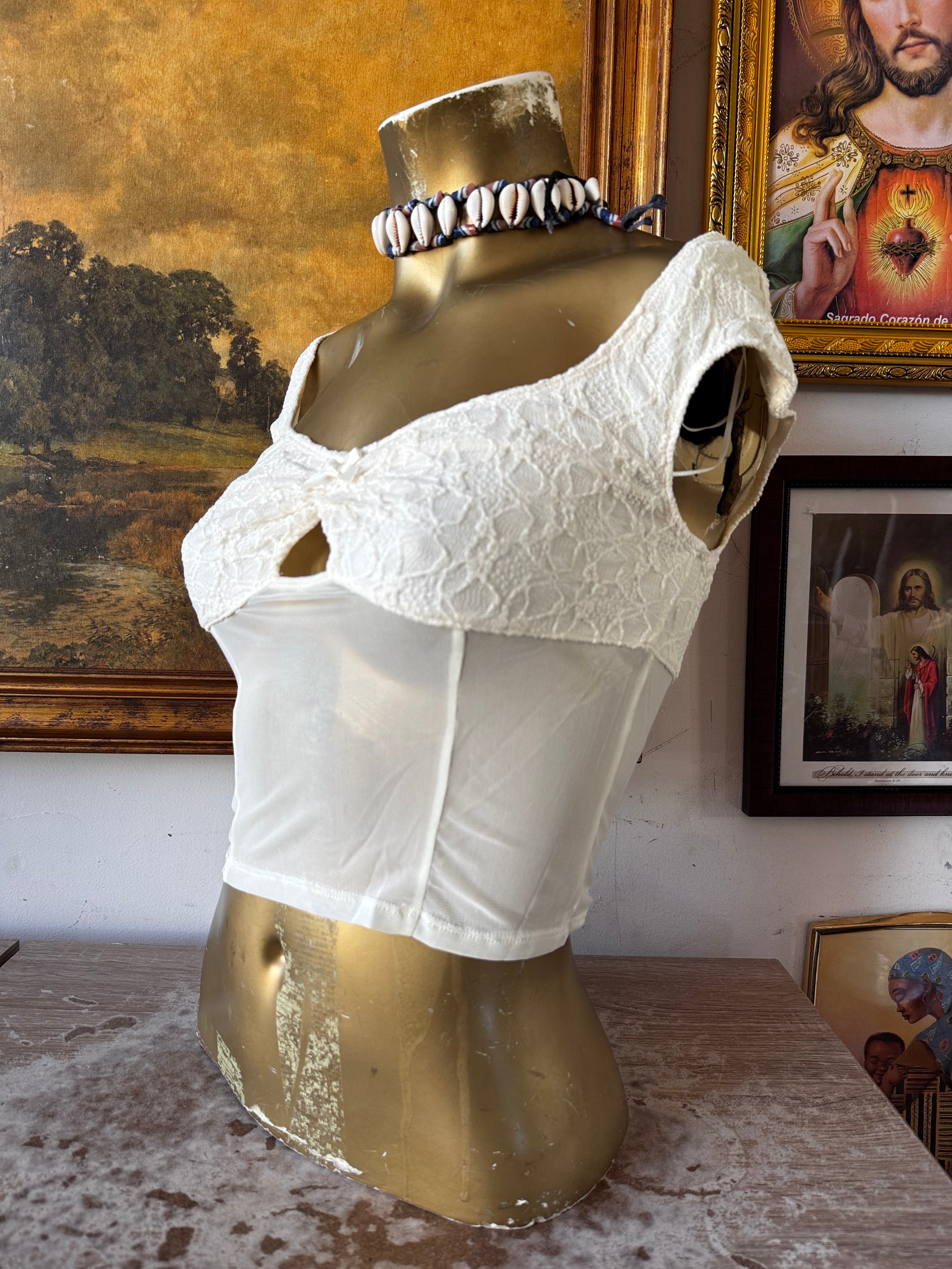 NWT Ivory Sweetheart Lace & Mesh Bodice Crop
