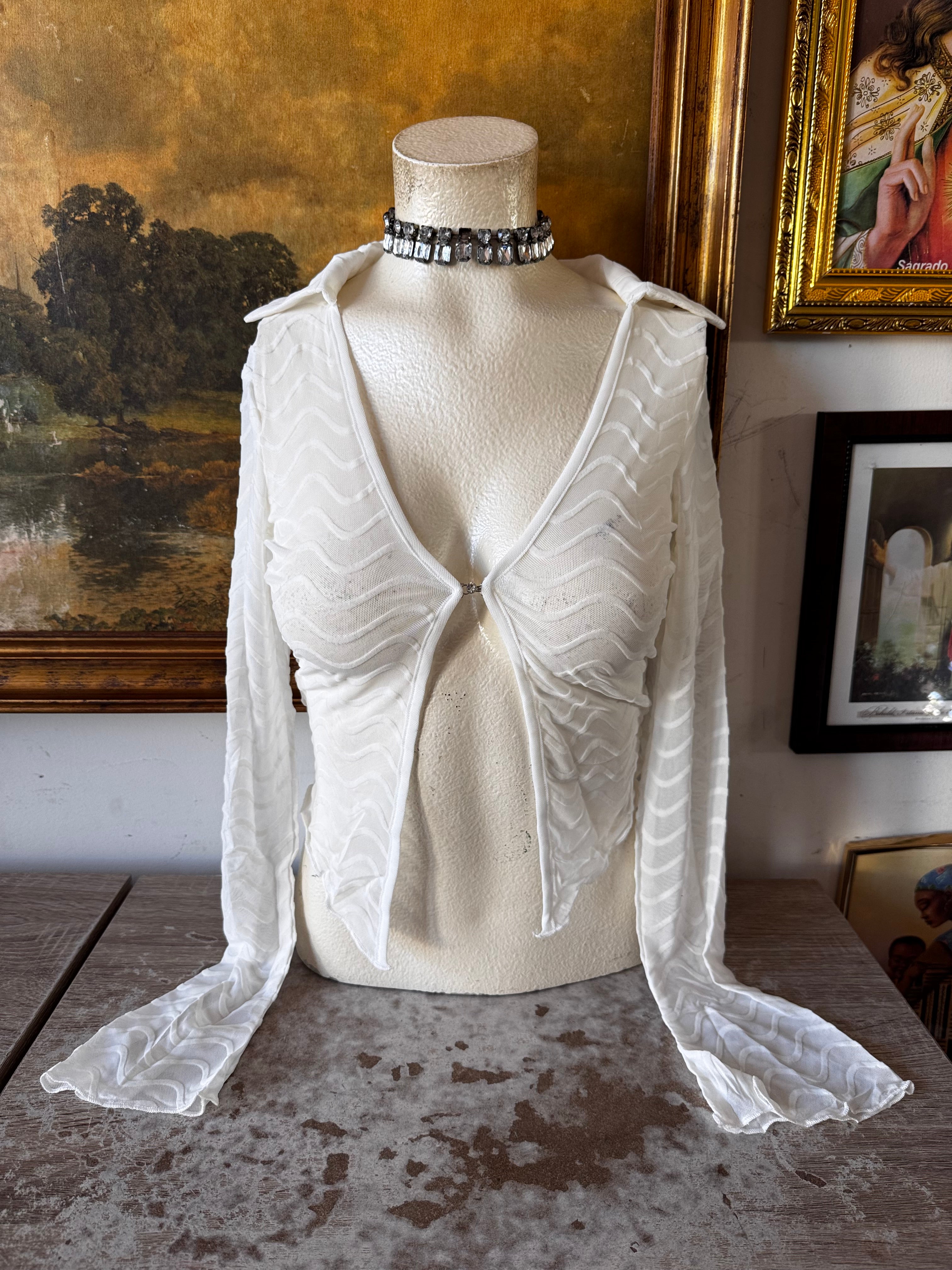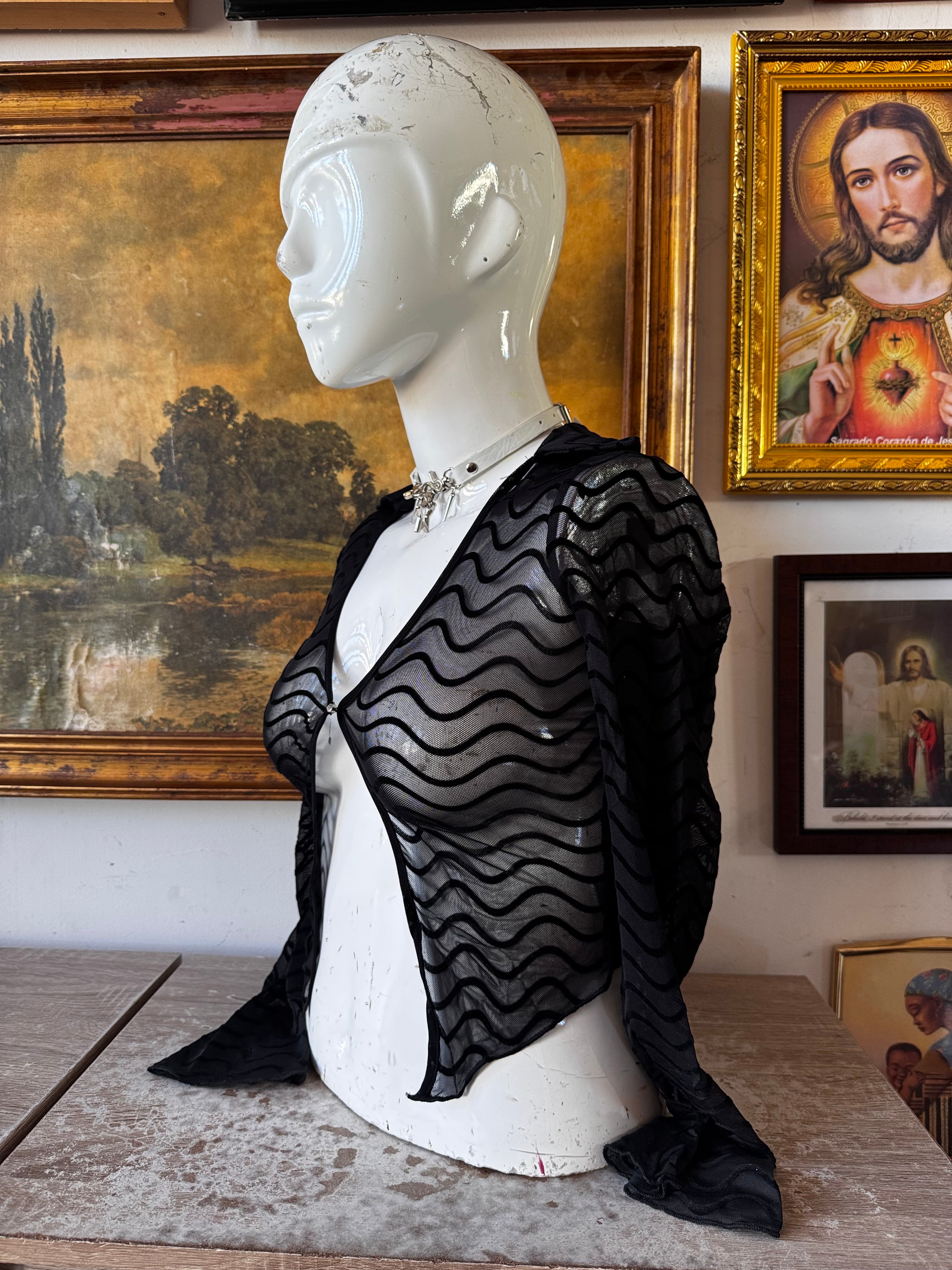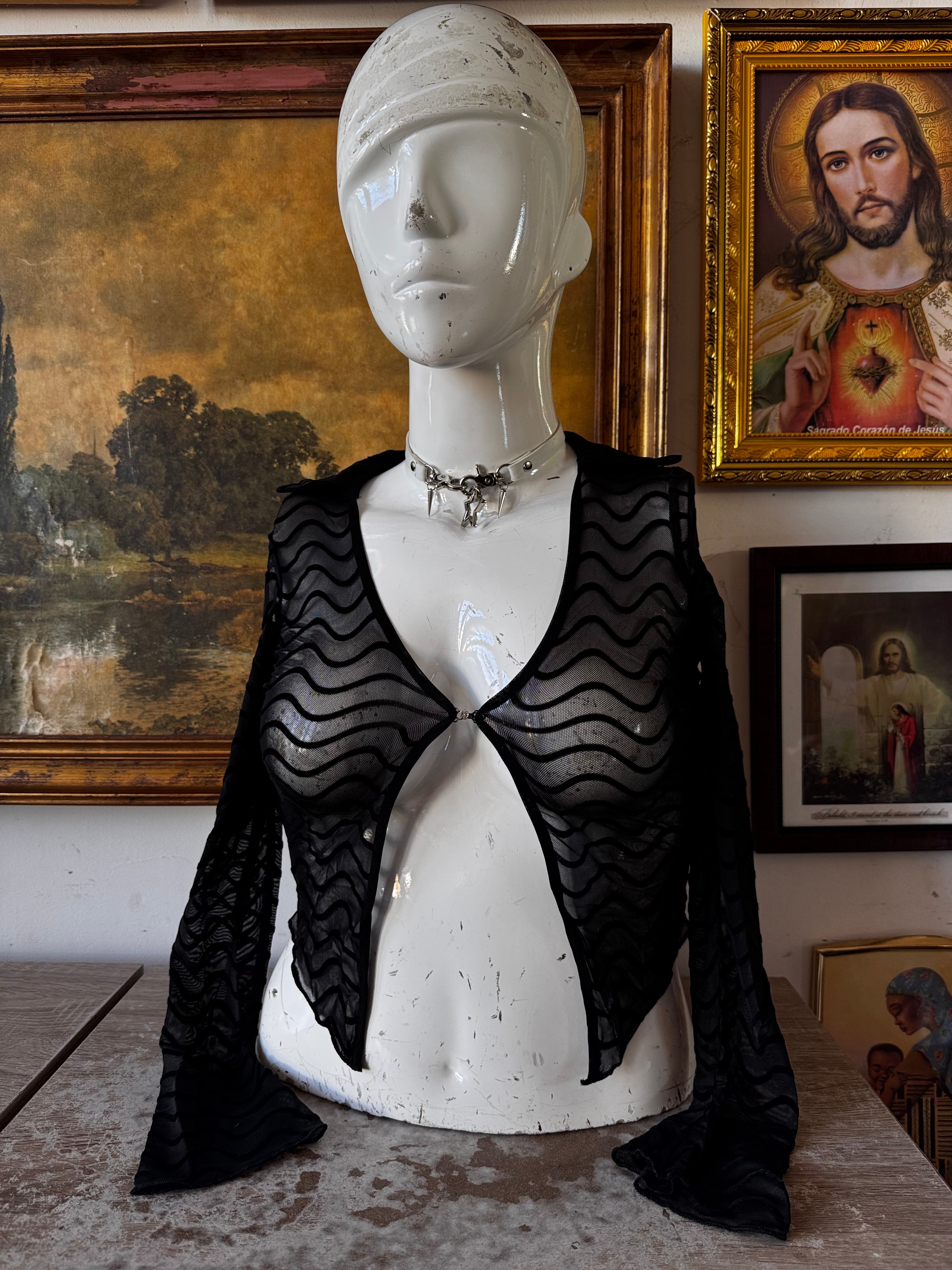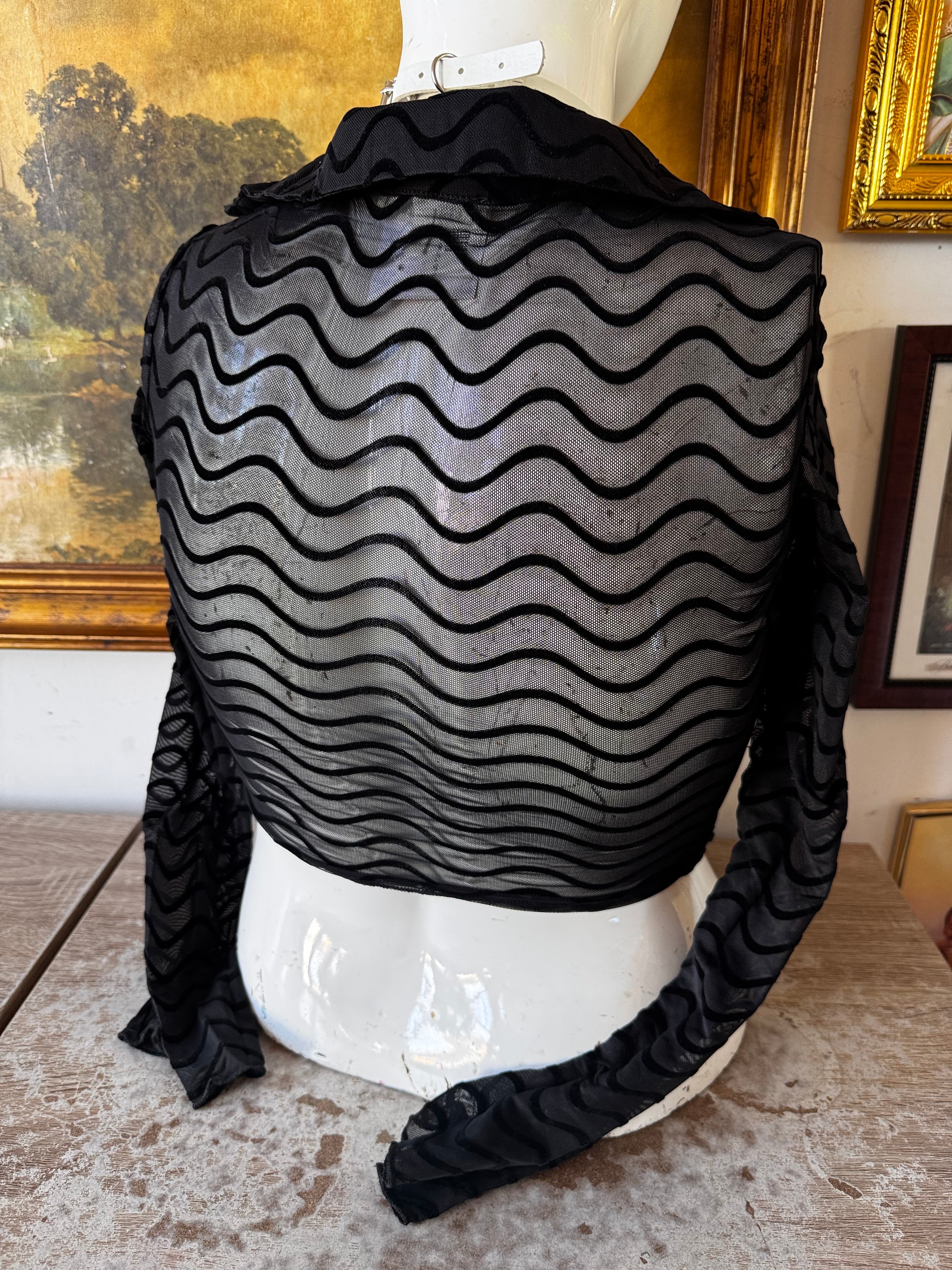 Mesh Long Sleeve Cover Up In Black and Ivory