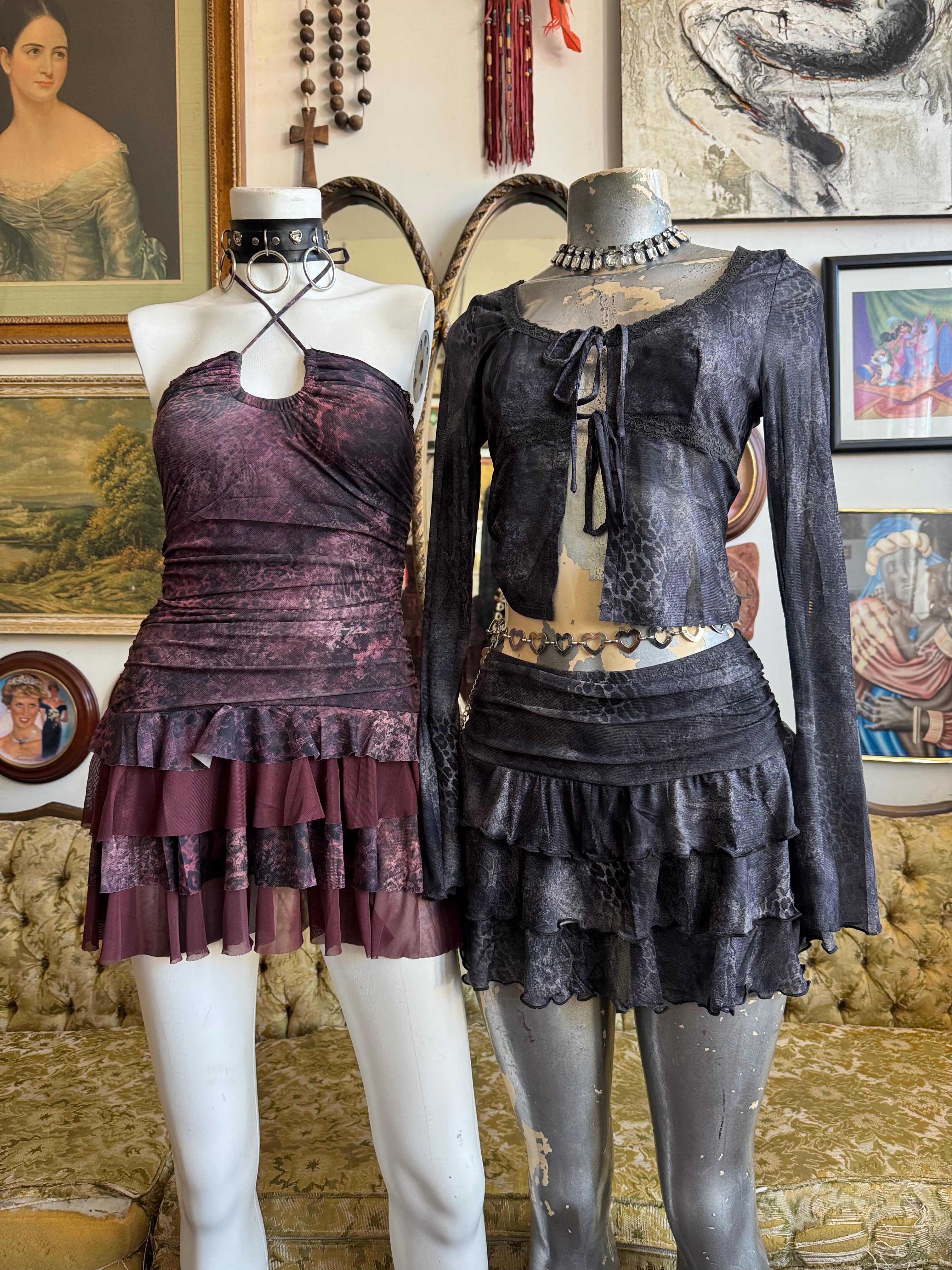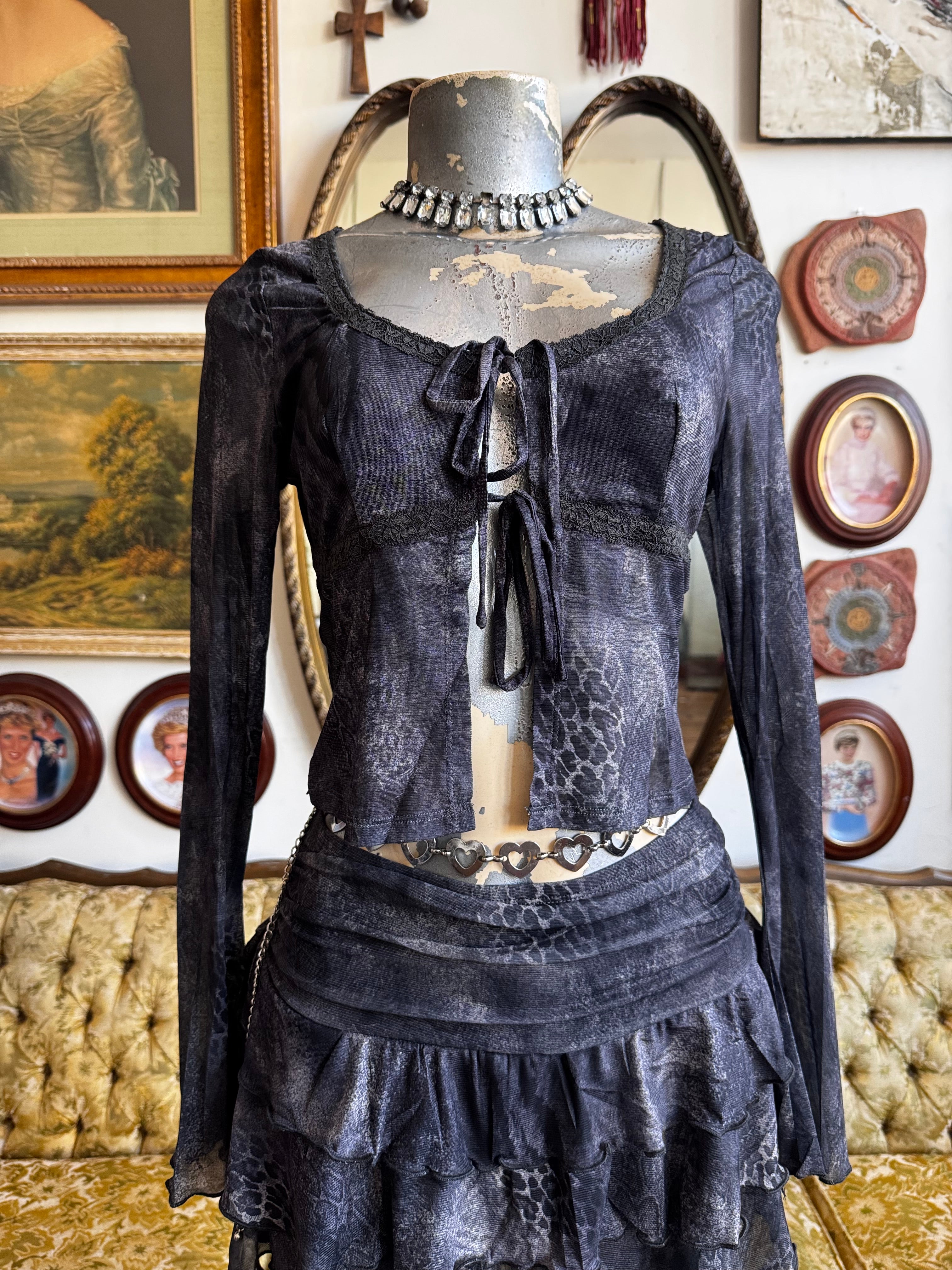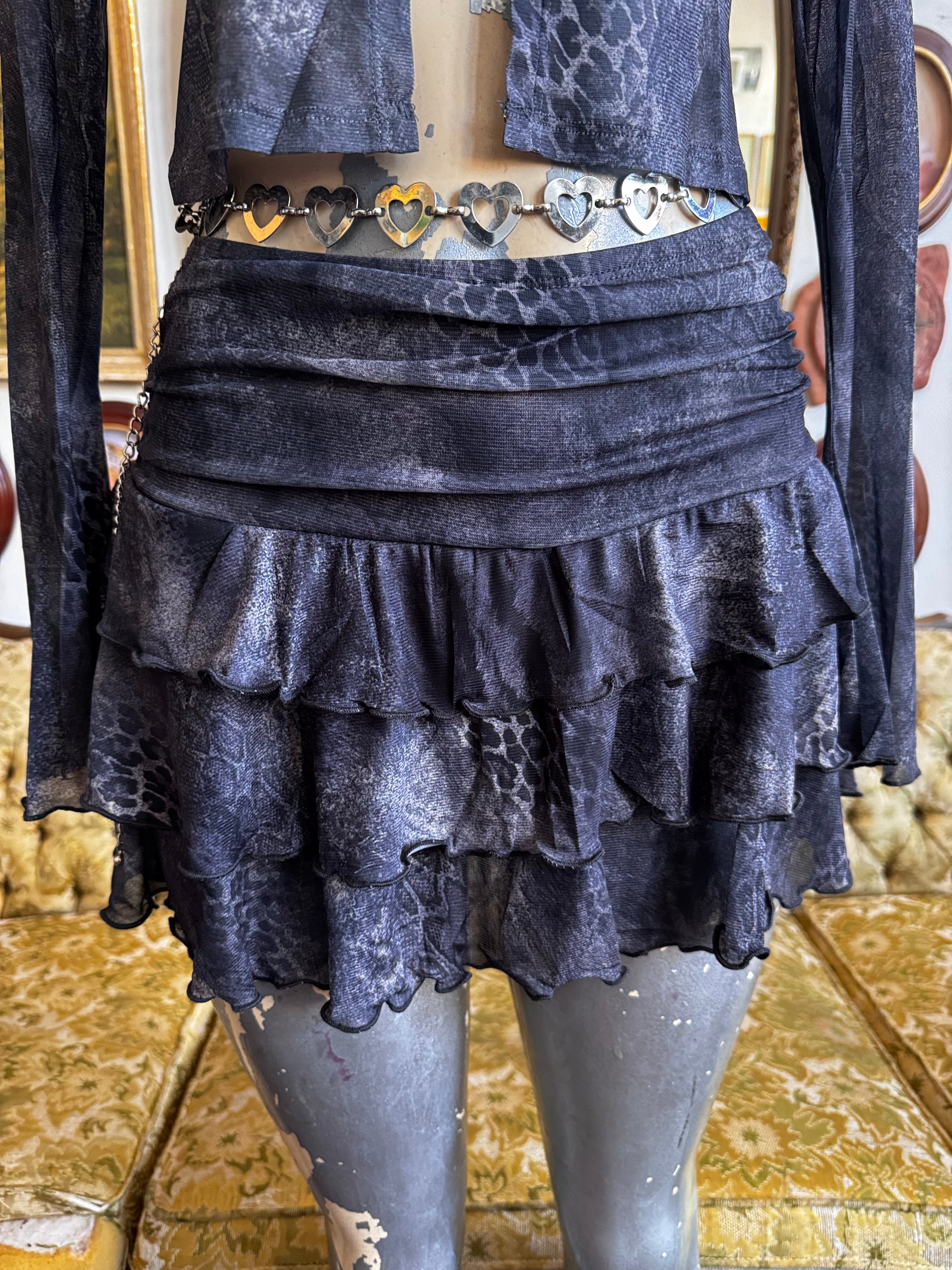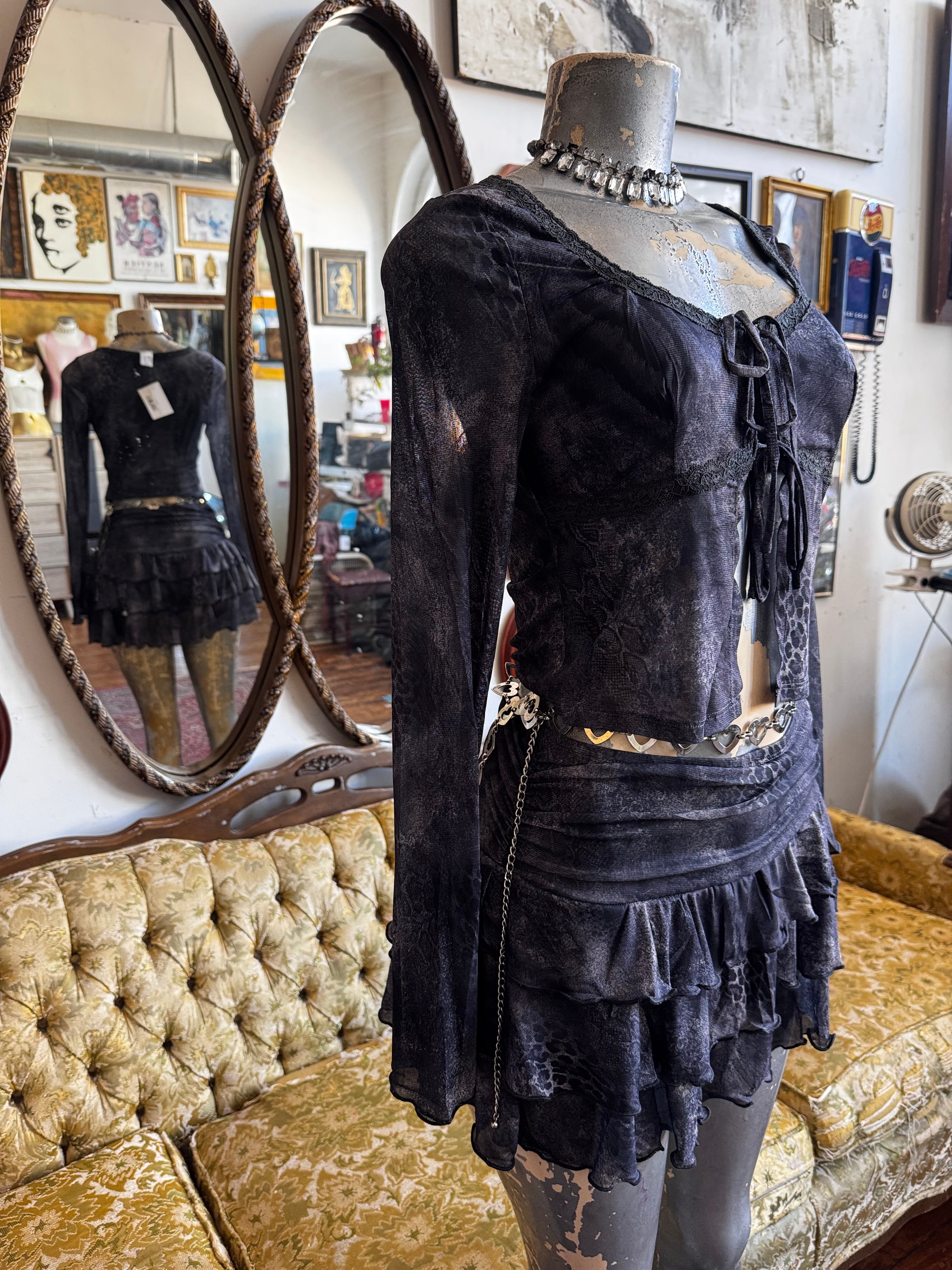 NWT Printed Long Sleeves Top And Ruffle Skirt Set