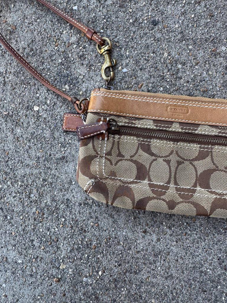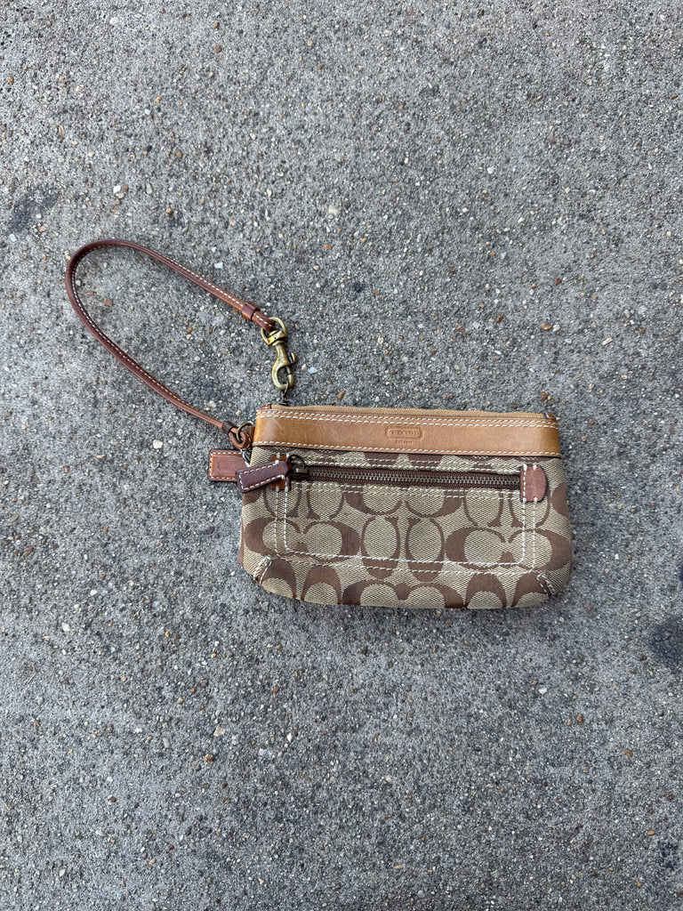 Brown Designer Logo Wristlet