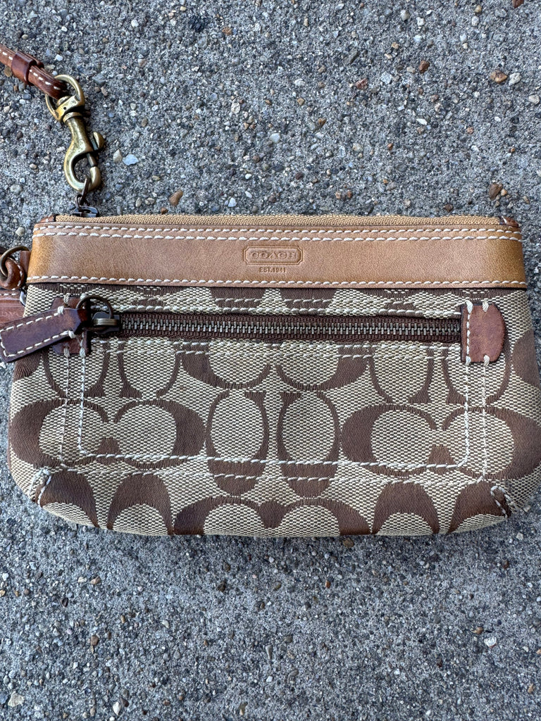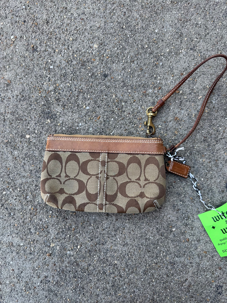 Brown Designer Logo Wristlet One Size