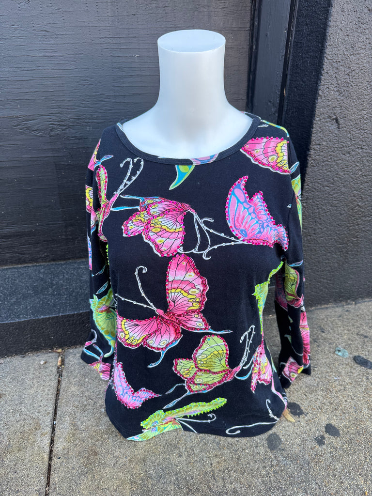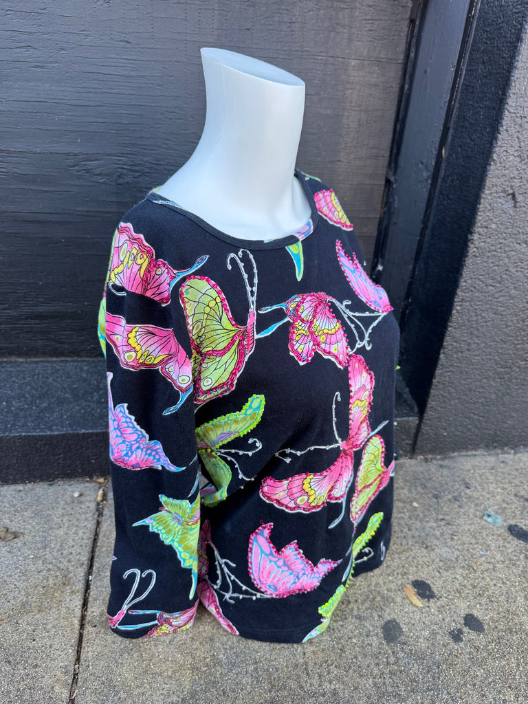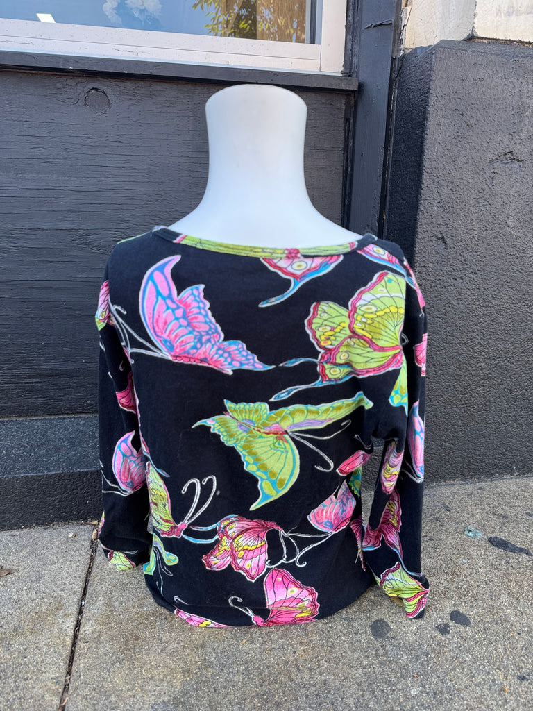 Y2K Butterfly Sequin 3/4 Length Top Size M