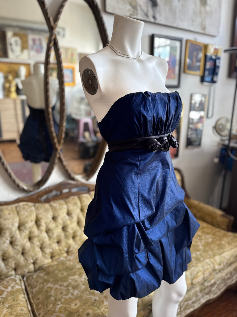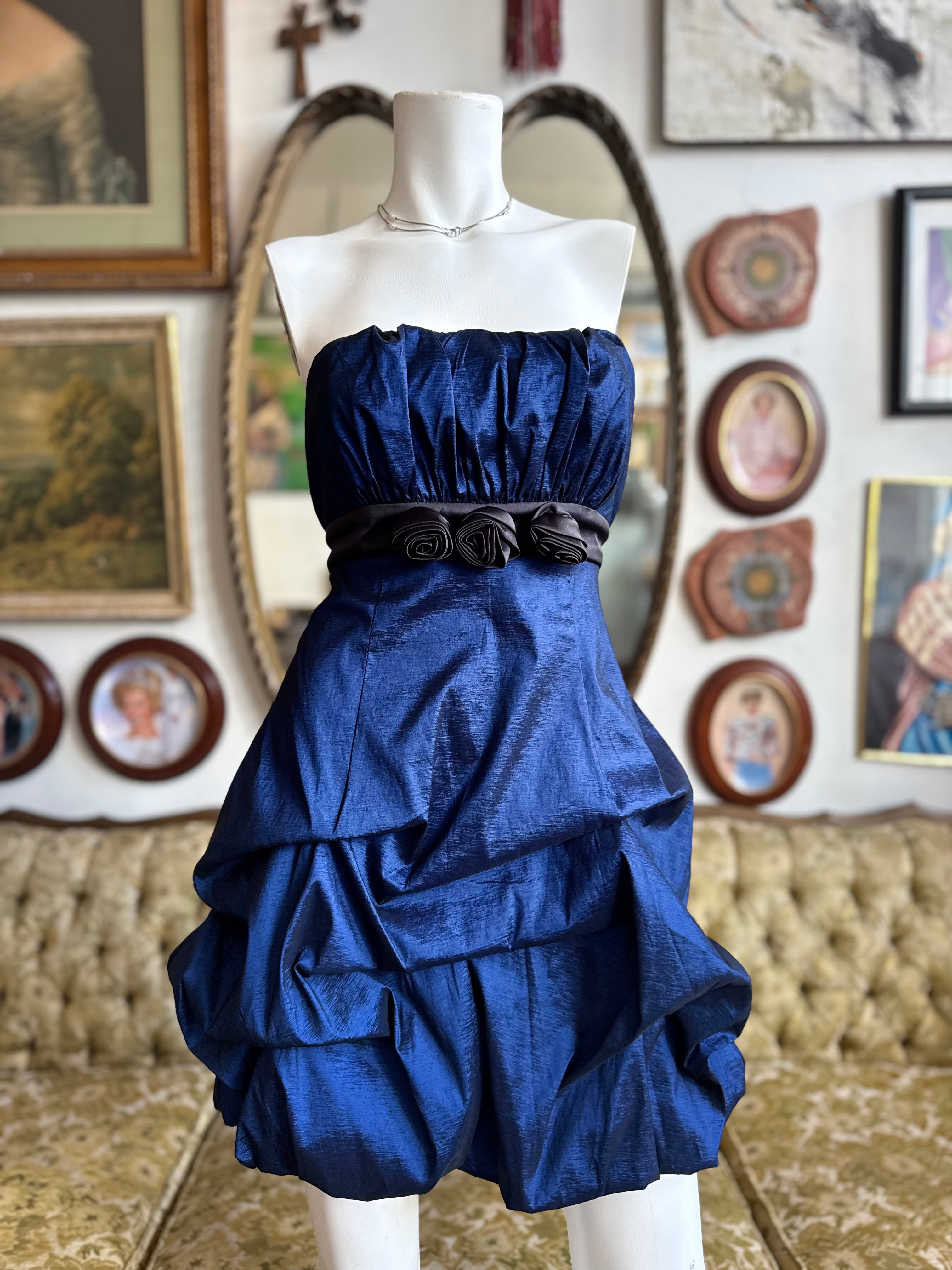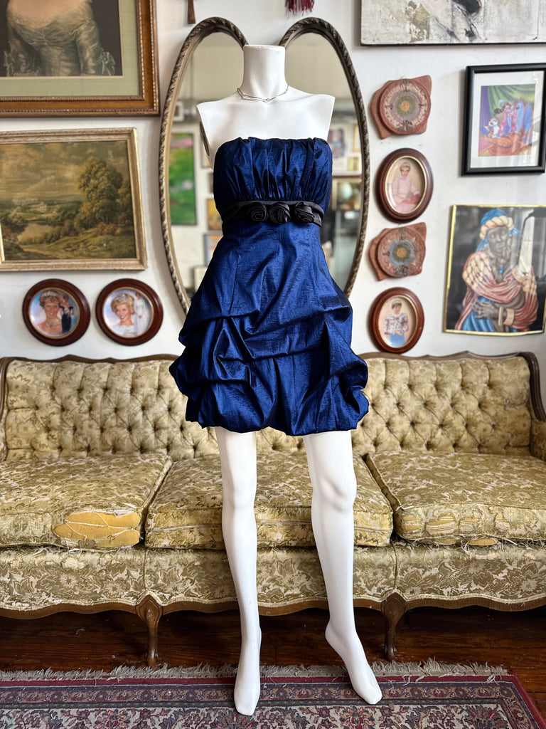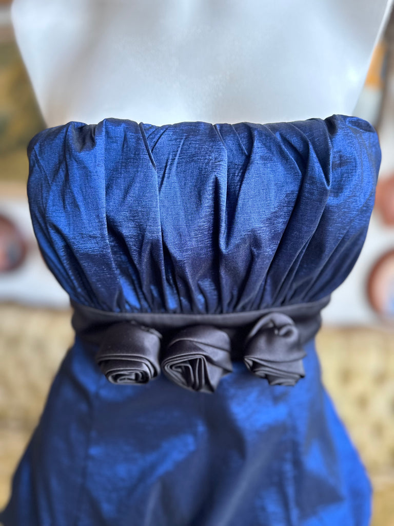 Y2K Royal Blue Ruched Rosette Party Dress Size 11/12
