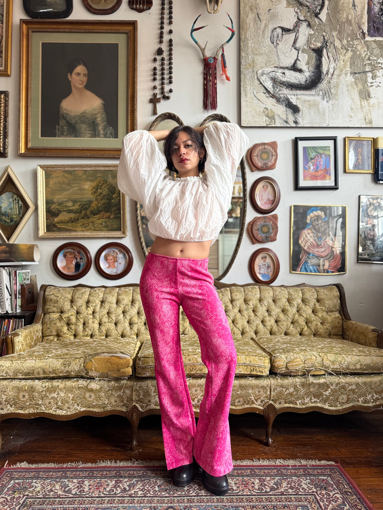 UO Pink Snakeskin Doflamingo Flare Pants Ladies Size 0/XS