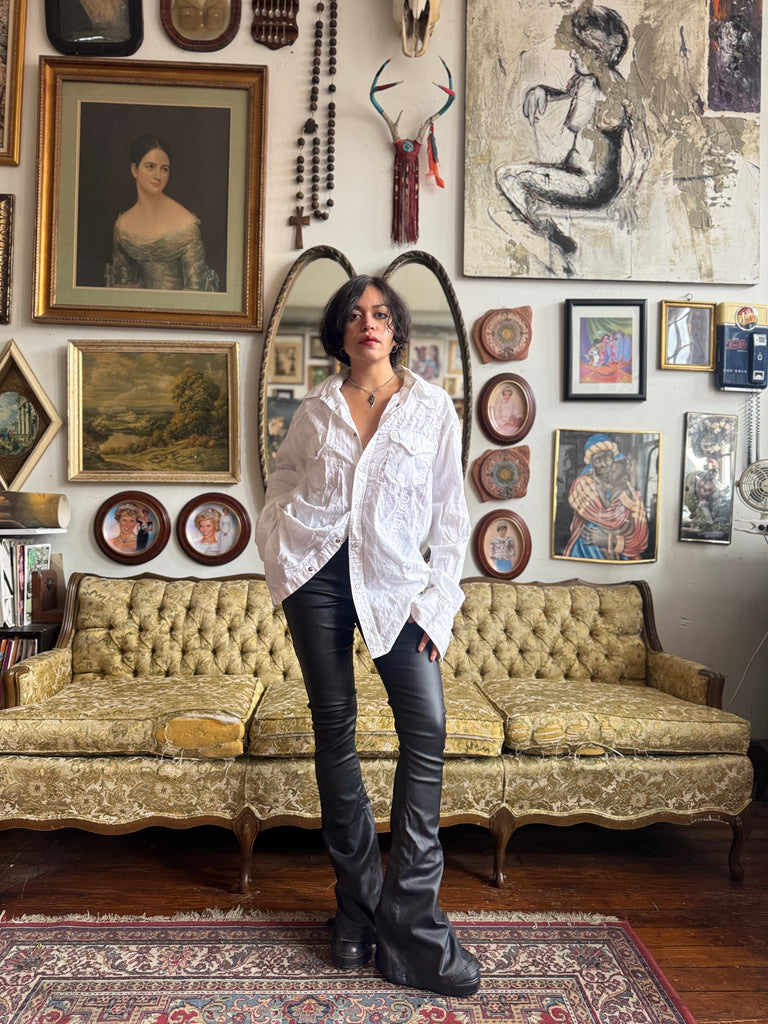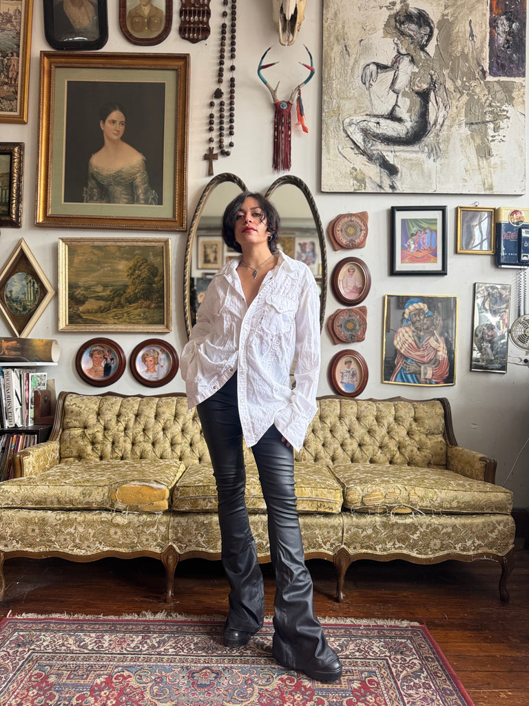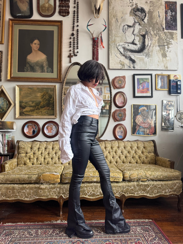Black Faux Leather High Waist Rock Star Flare Skin Tight Ladies Pants Size XS