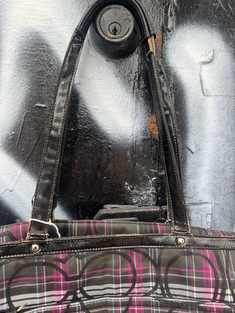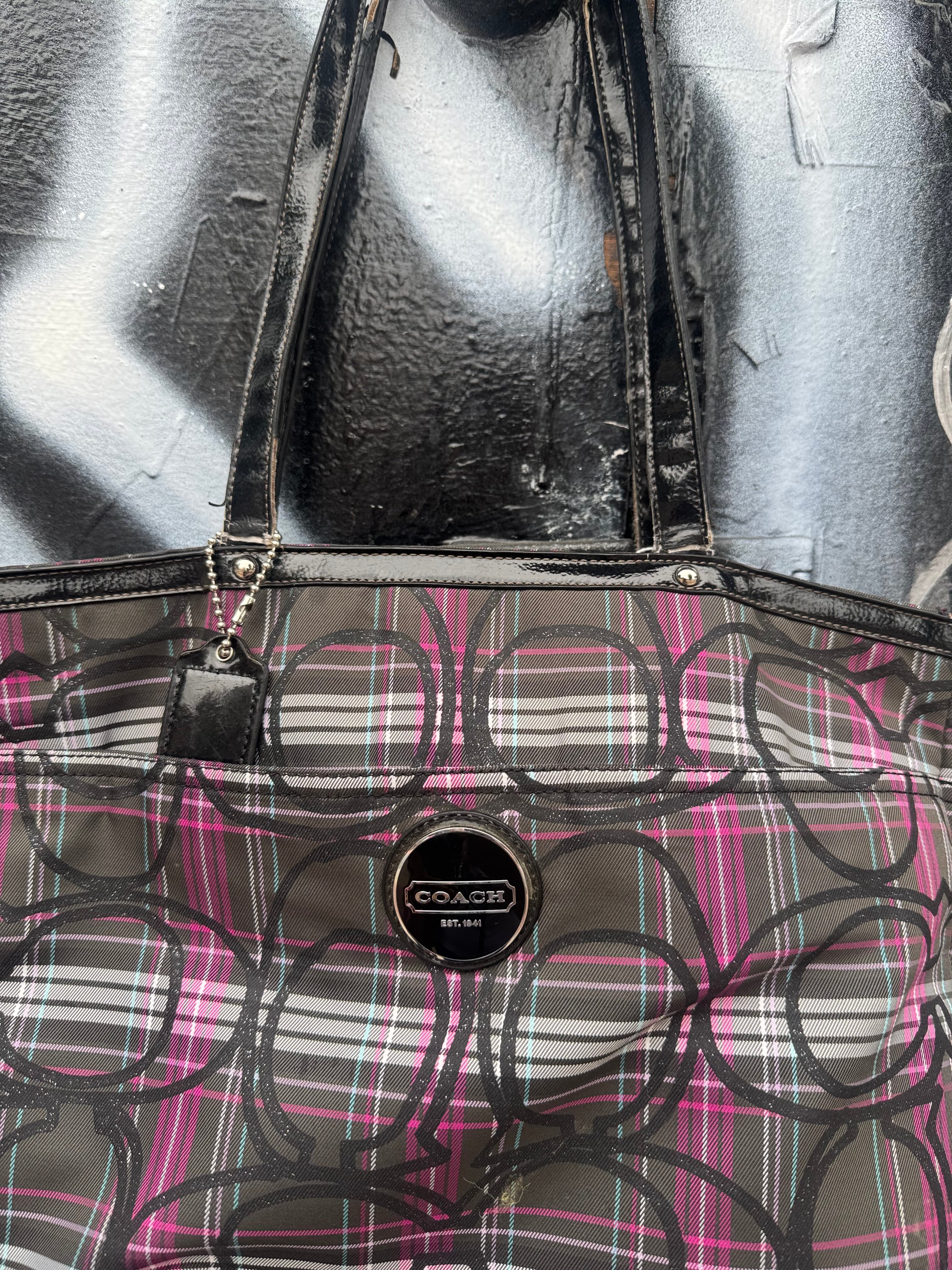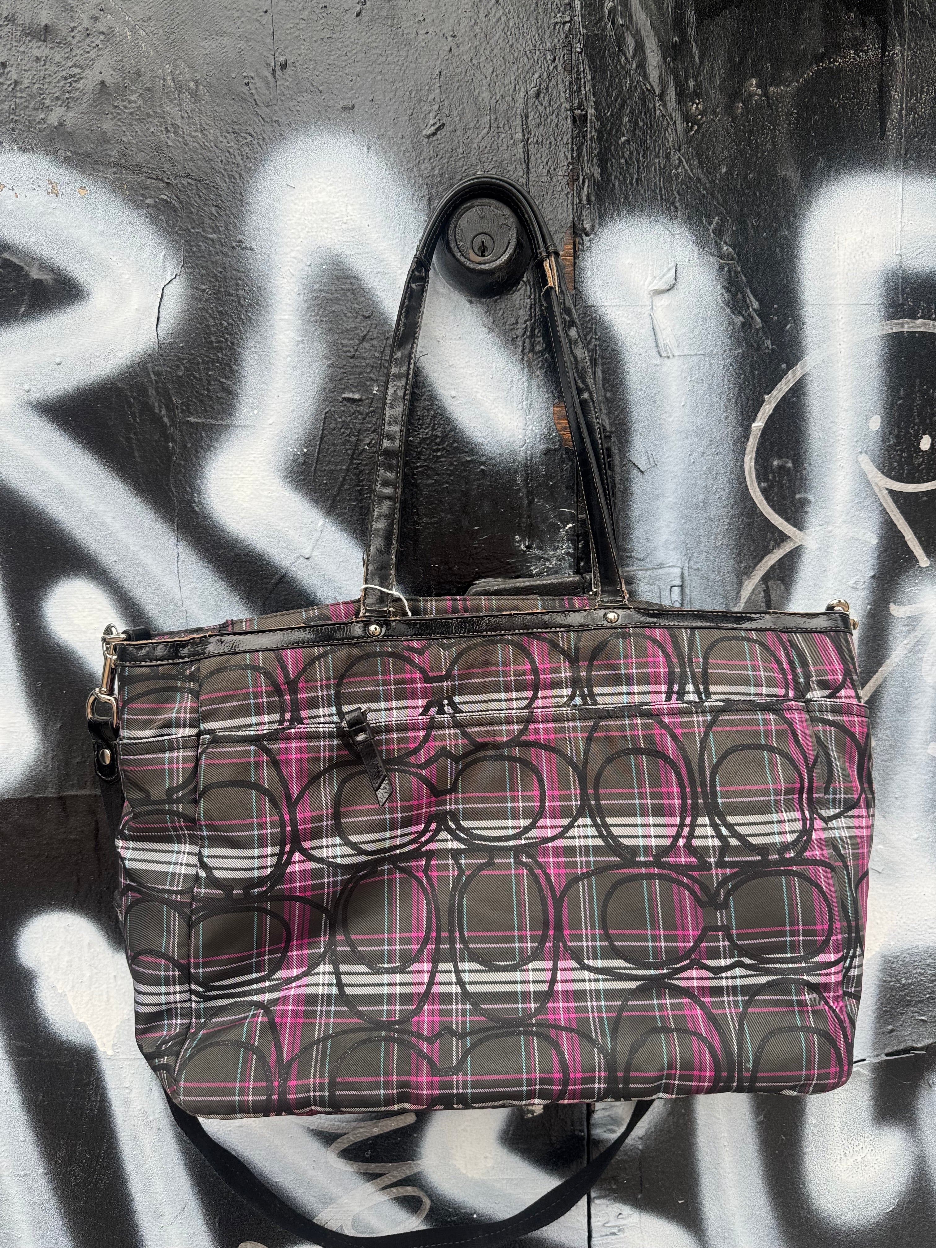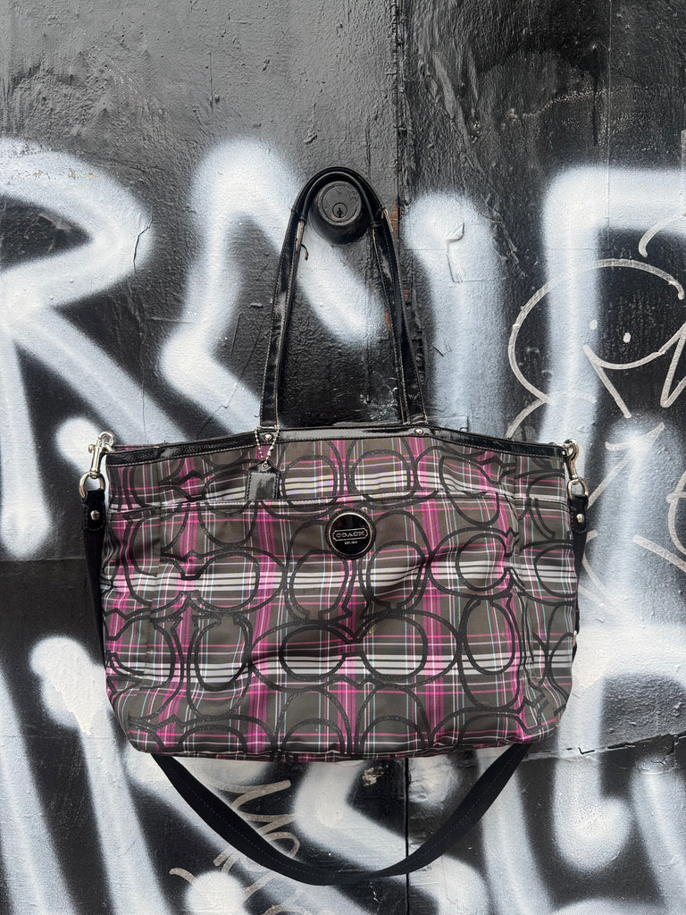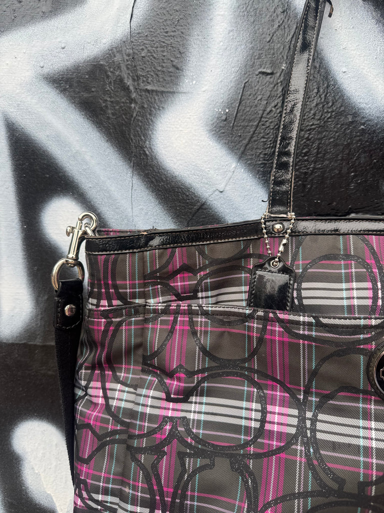 Pink & Black Plaid Coach Tote Bag