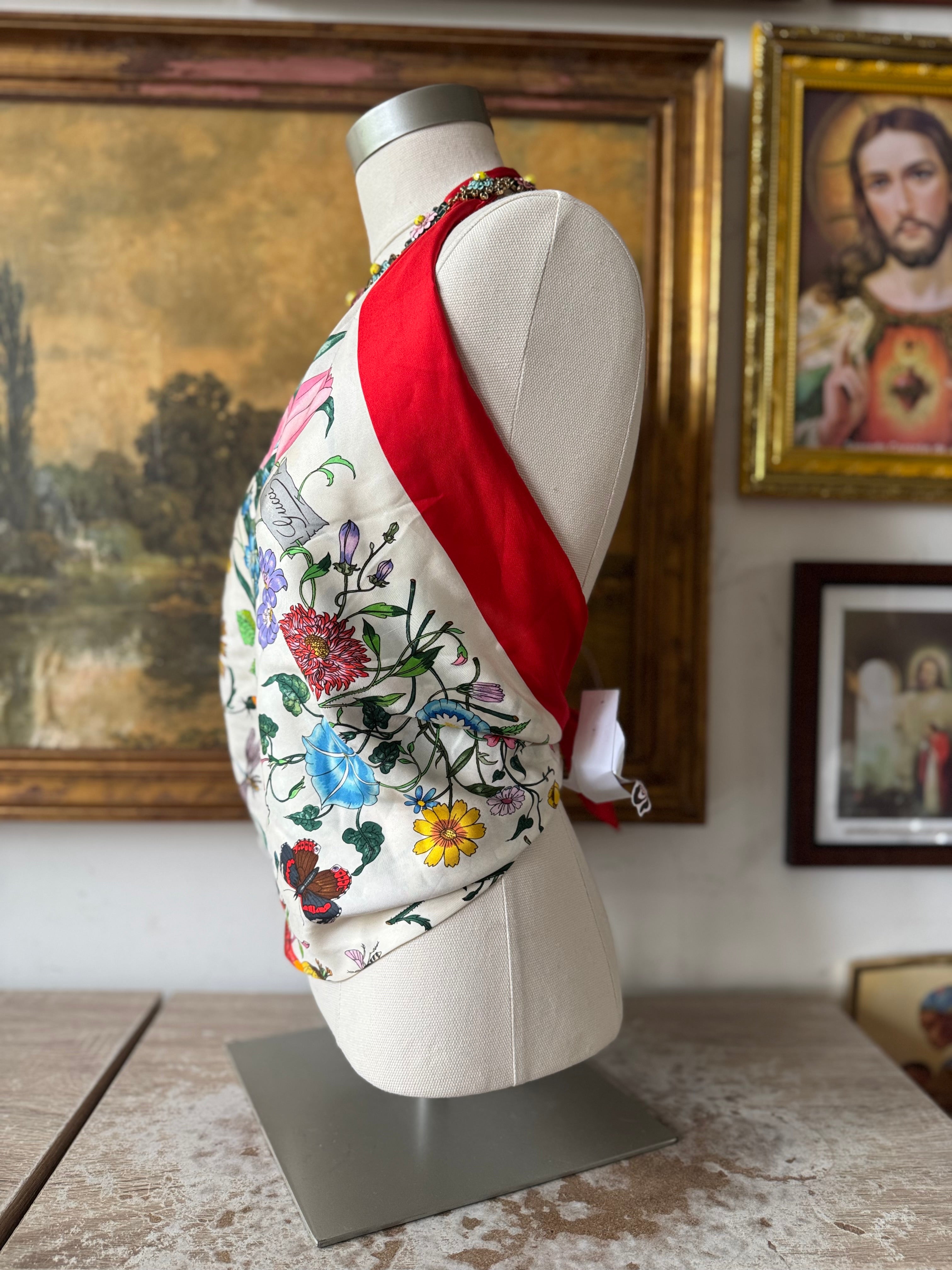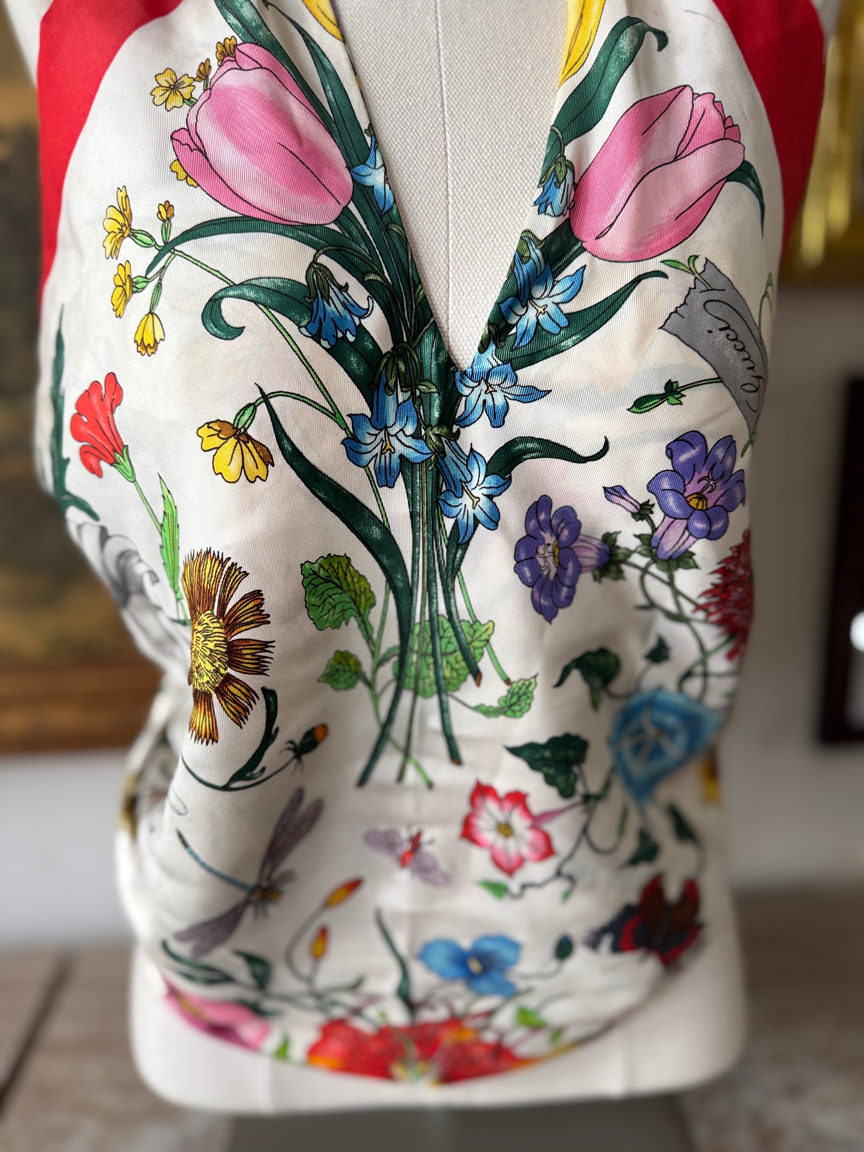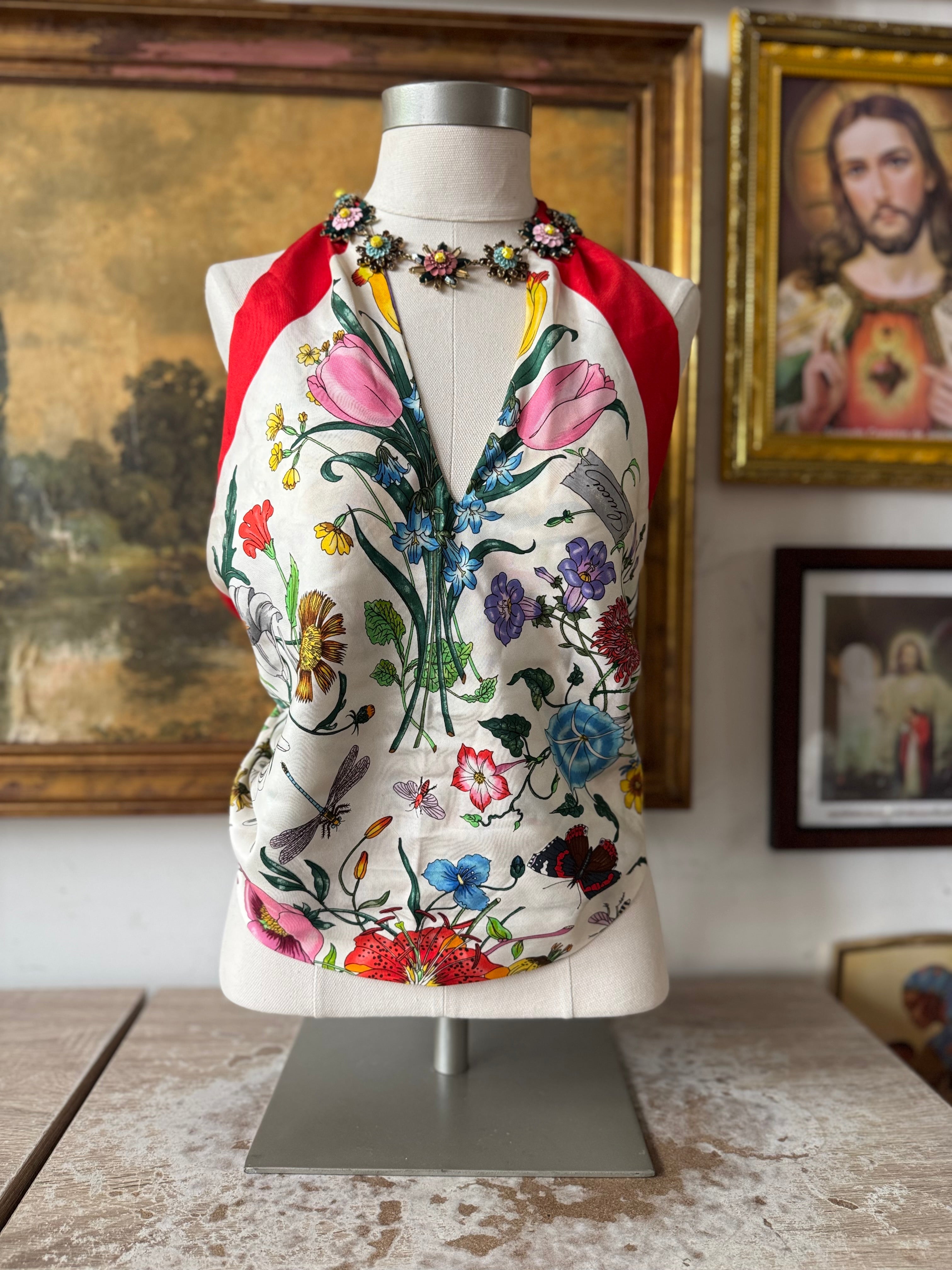 Gucci Designer Flora Print Silk Scarf Halter Top S/M