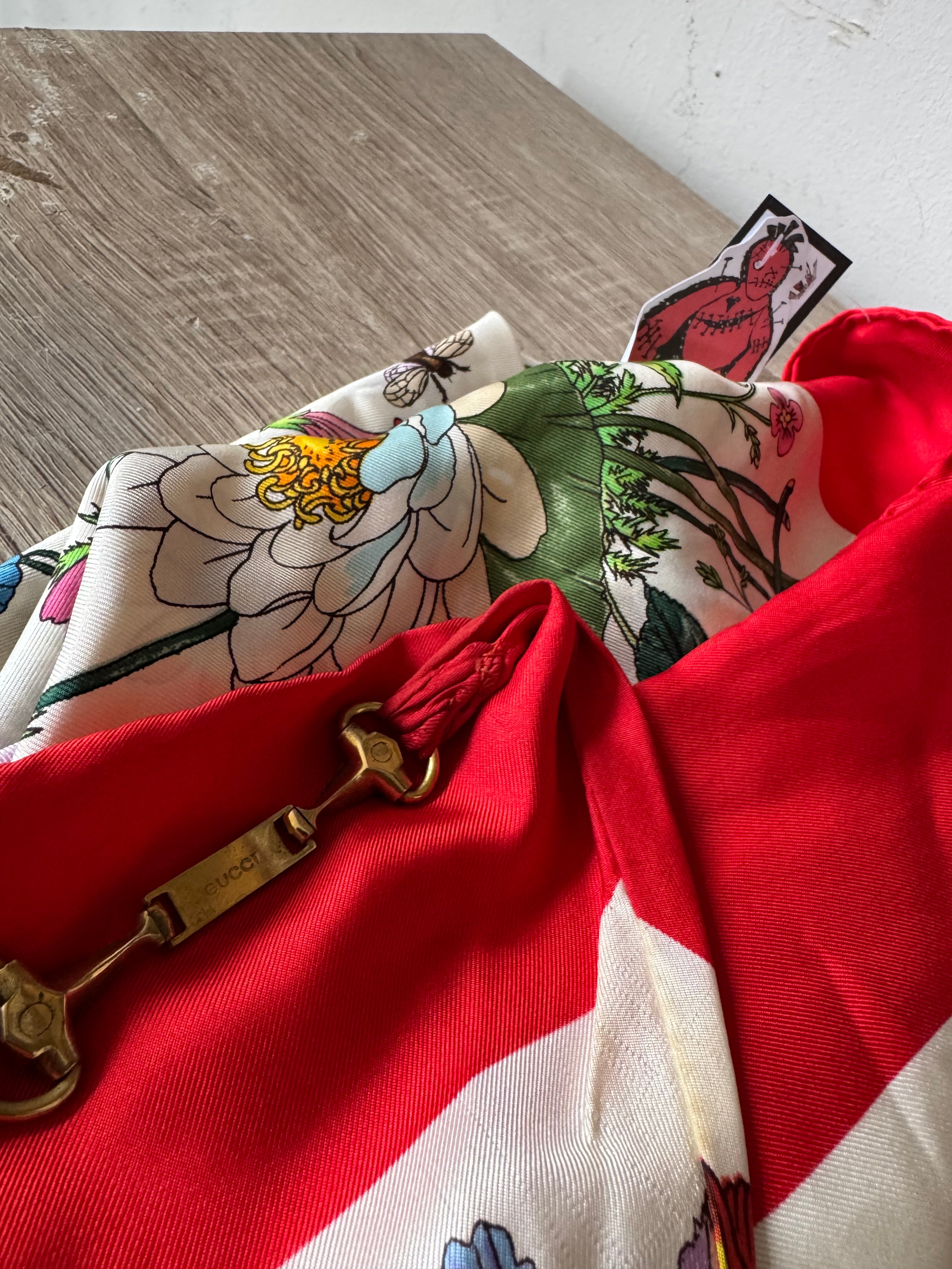 This is a authentic Gucci Flora print silk scarf. This iconic pattern was originally designed for the brand by the Italian artist Vittorio Accornero in 1966