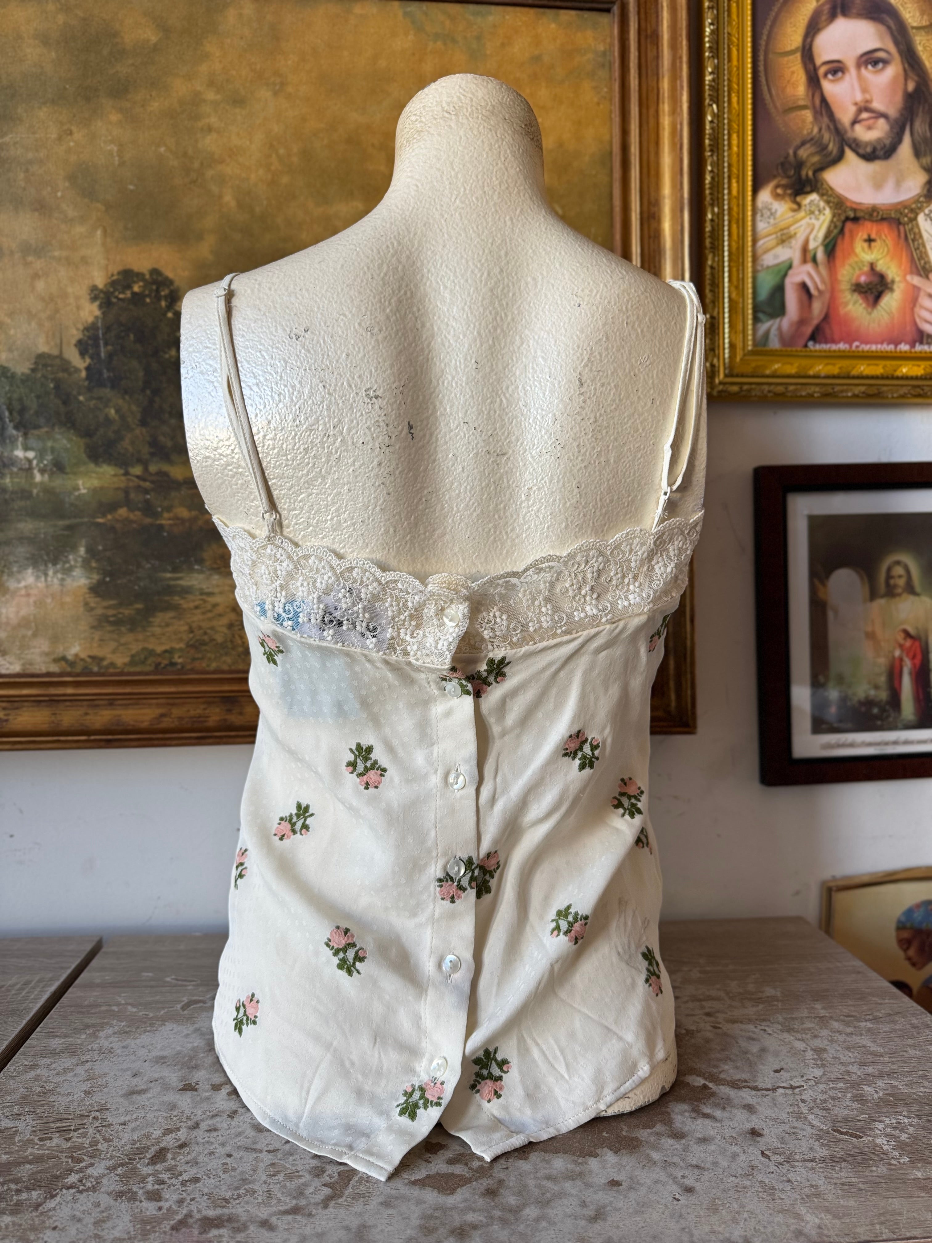 Embroidered Rose Chemise w Lace Trim Size Small by designer ROUJE