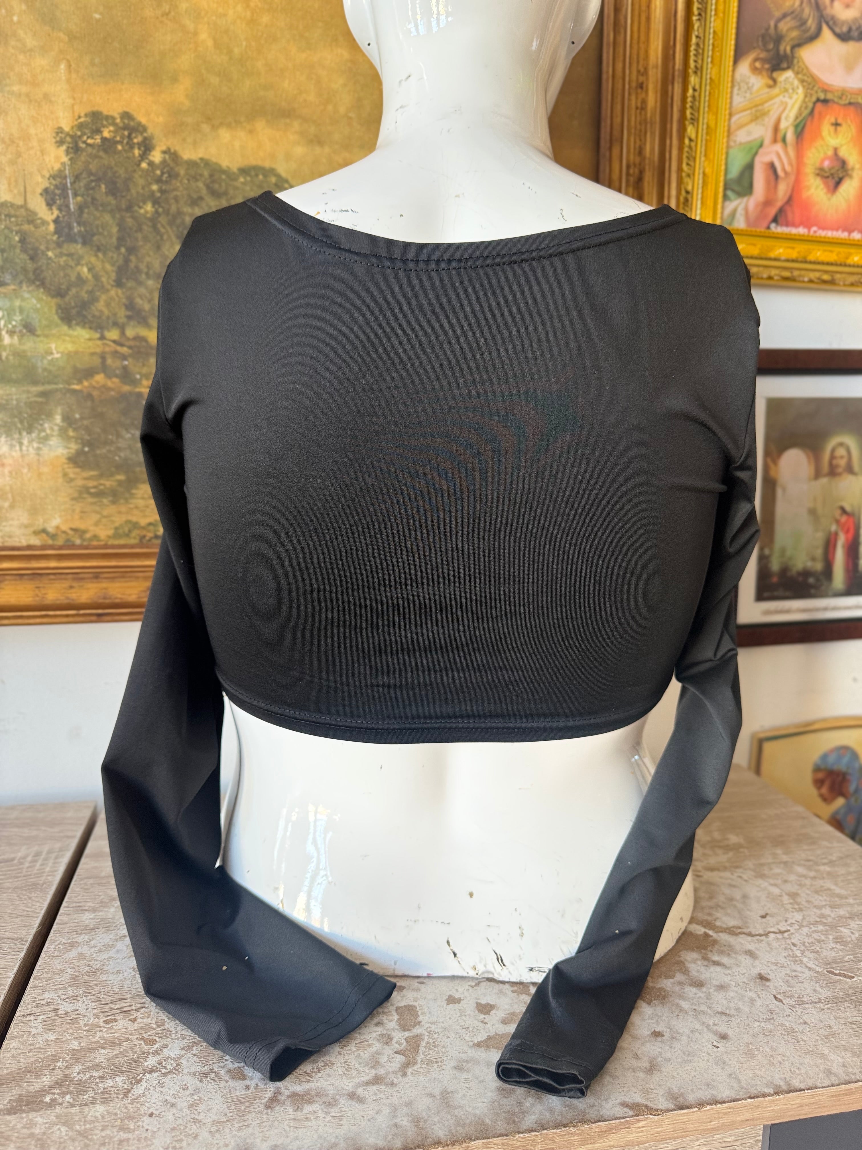Black Longsleeve O Ring Going Out Crop Top Size L