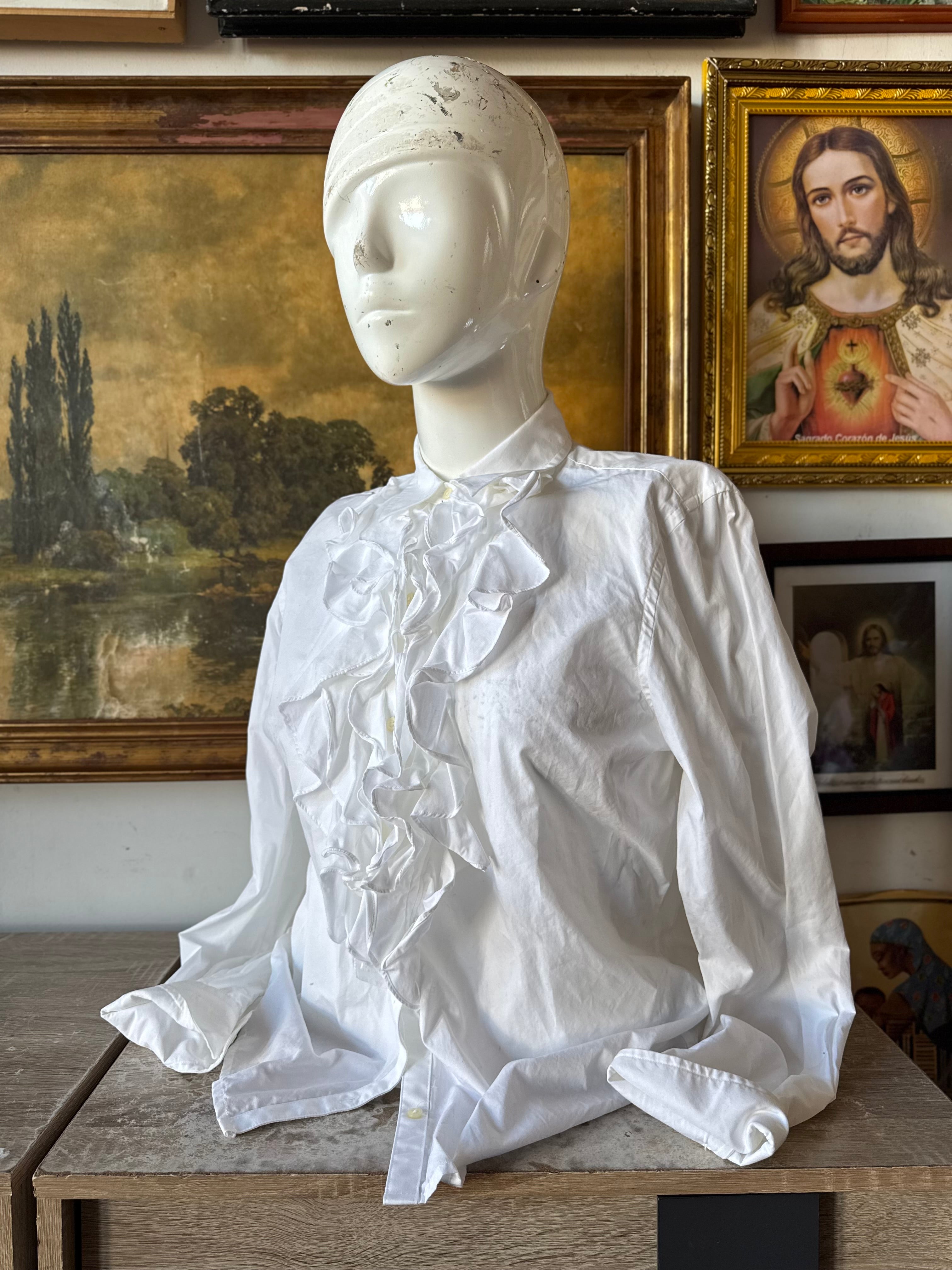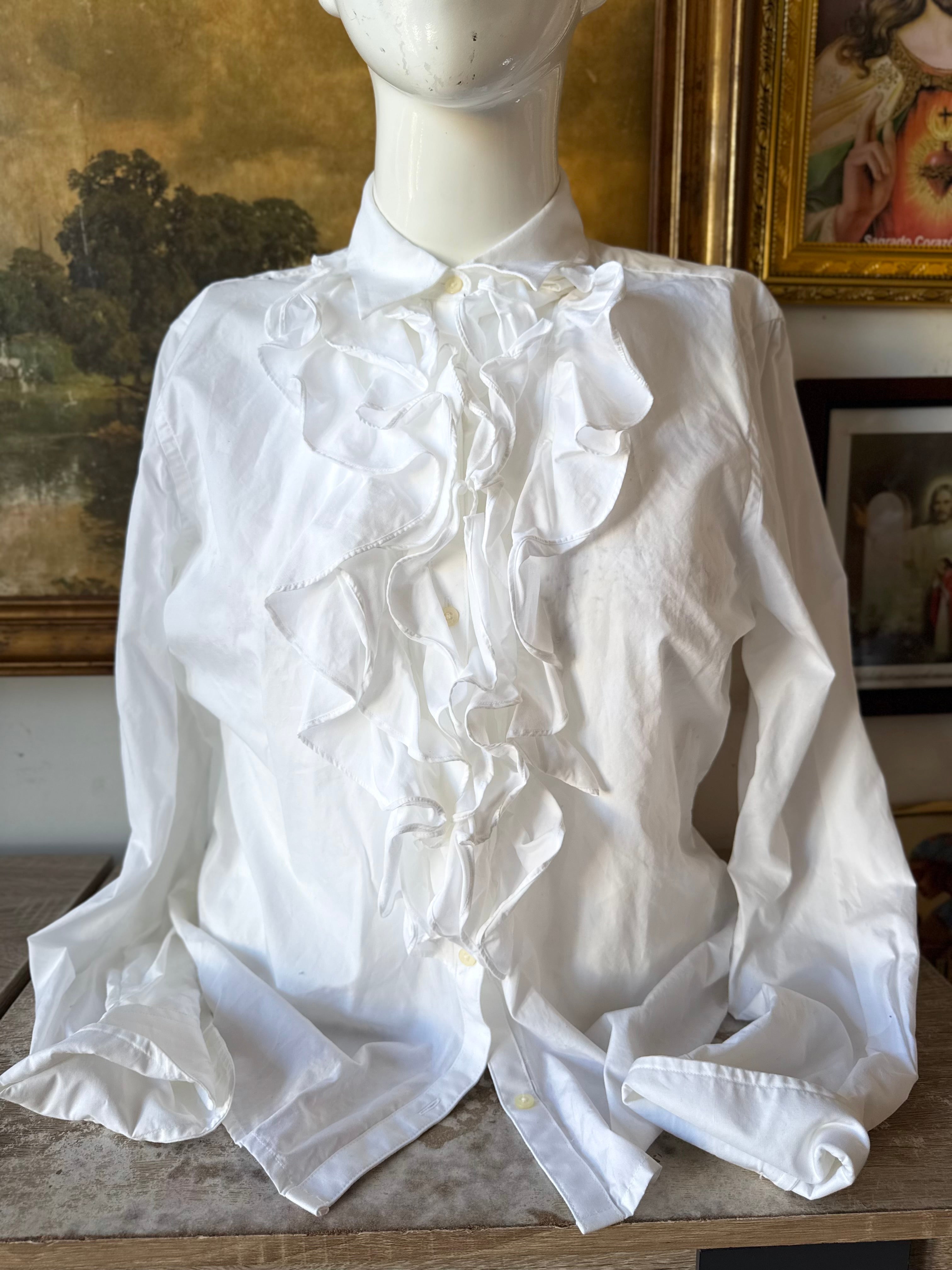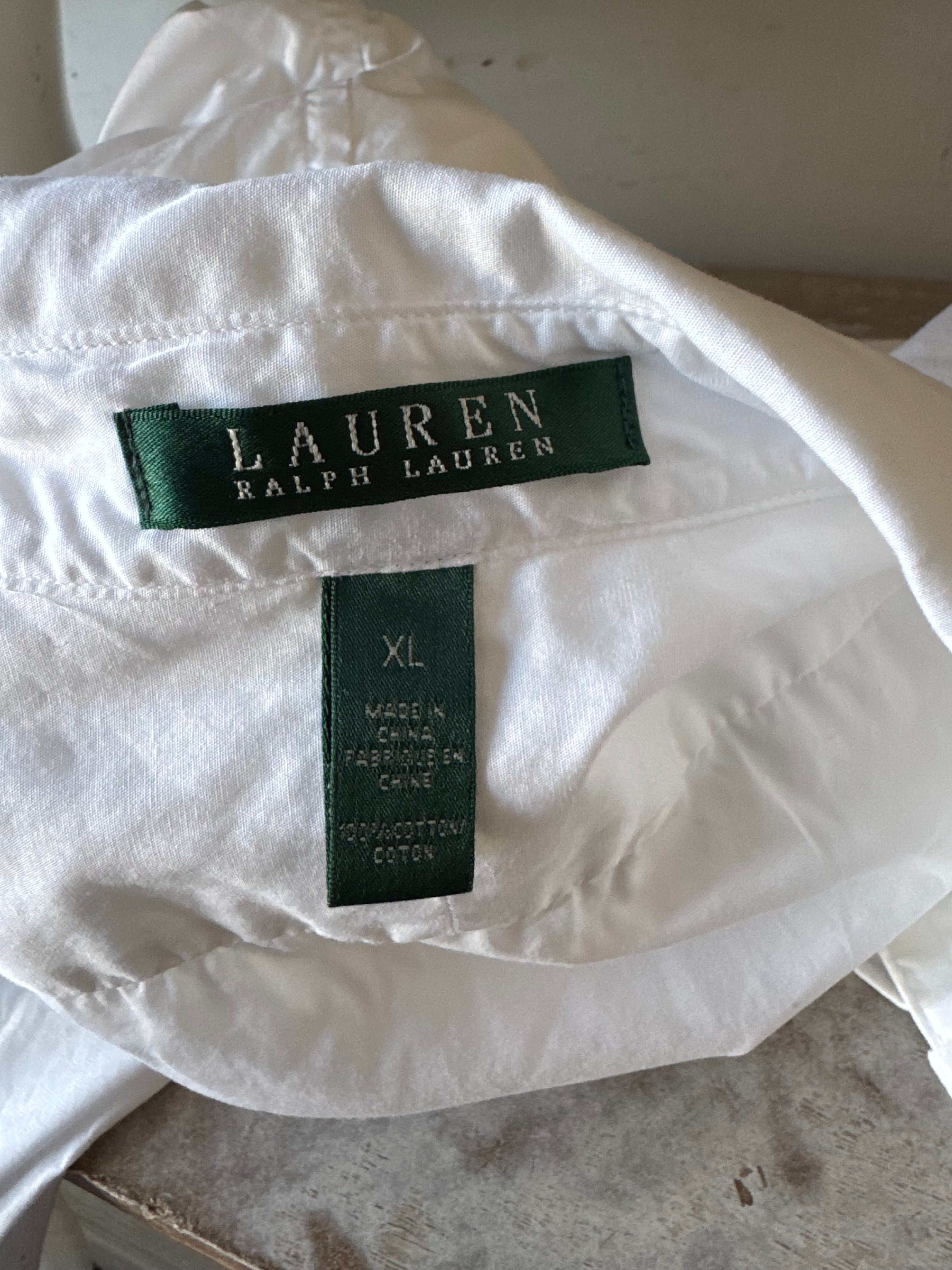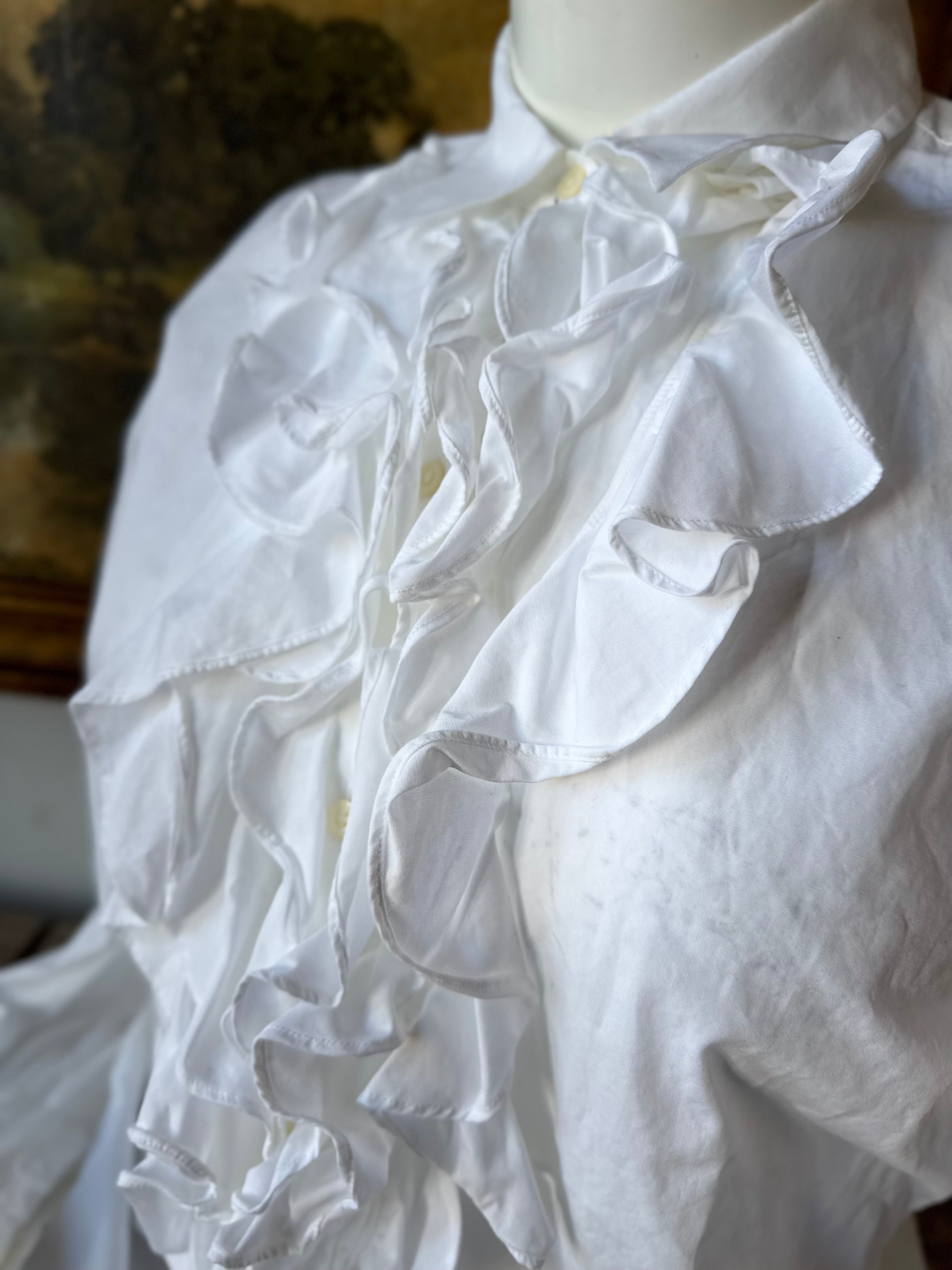 Vintage Ralph Lauren Ruffled White Cotton Blouse Size XL