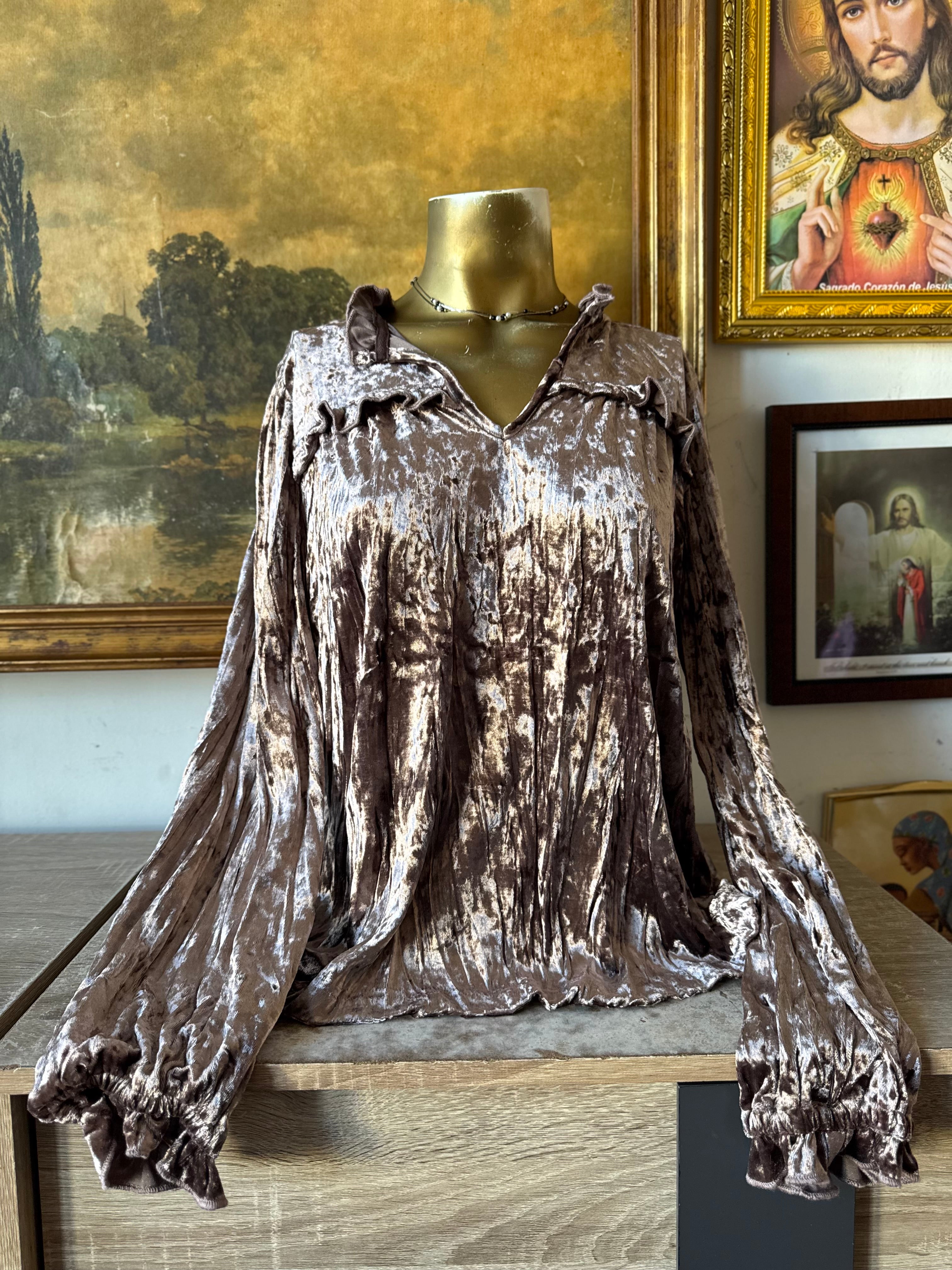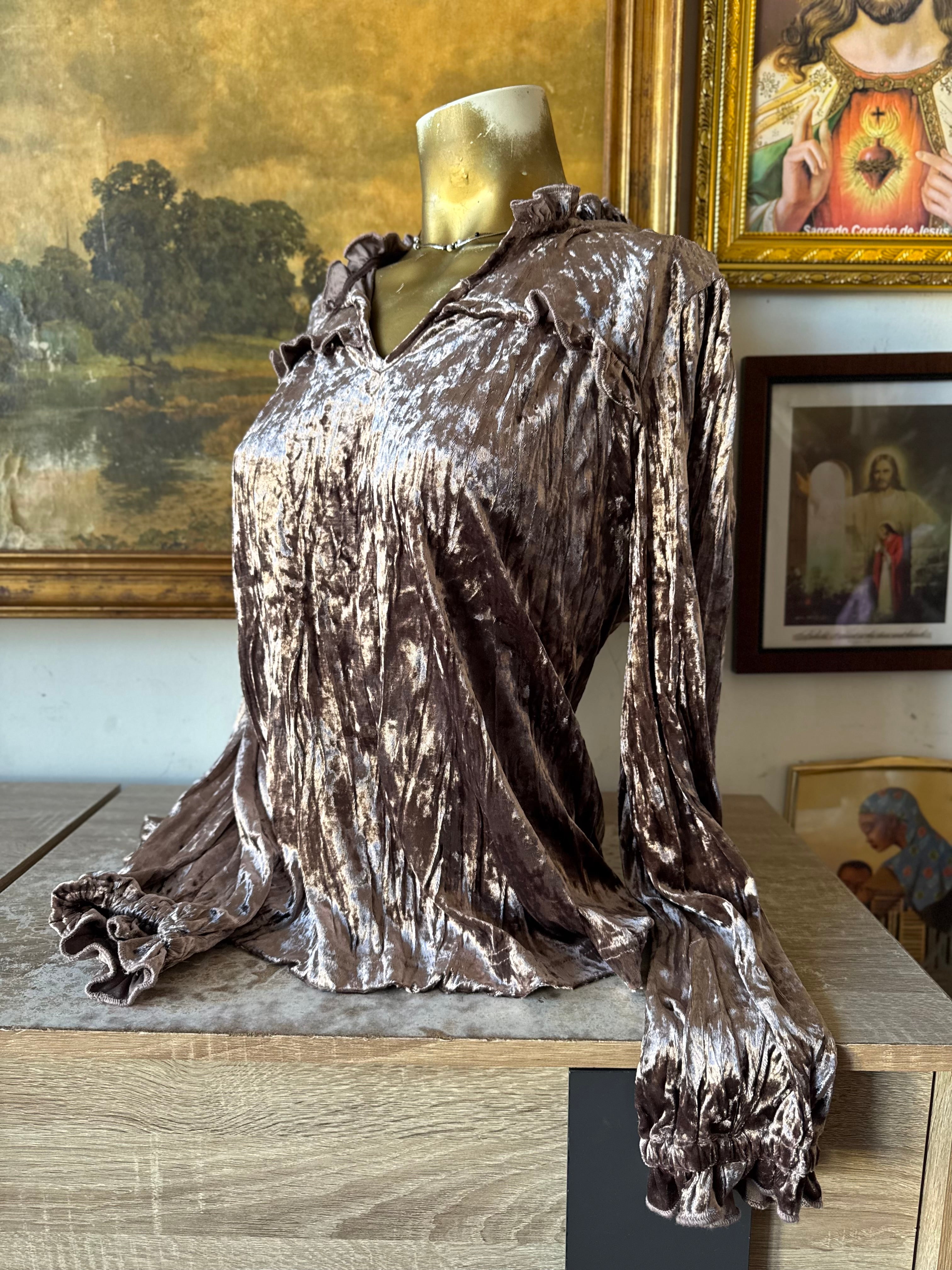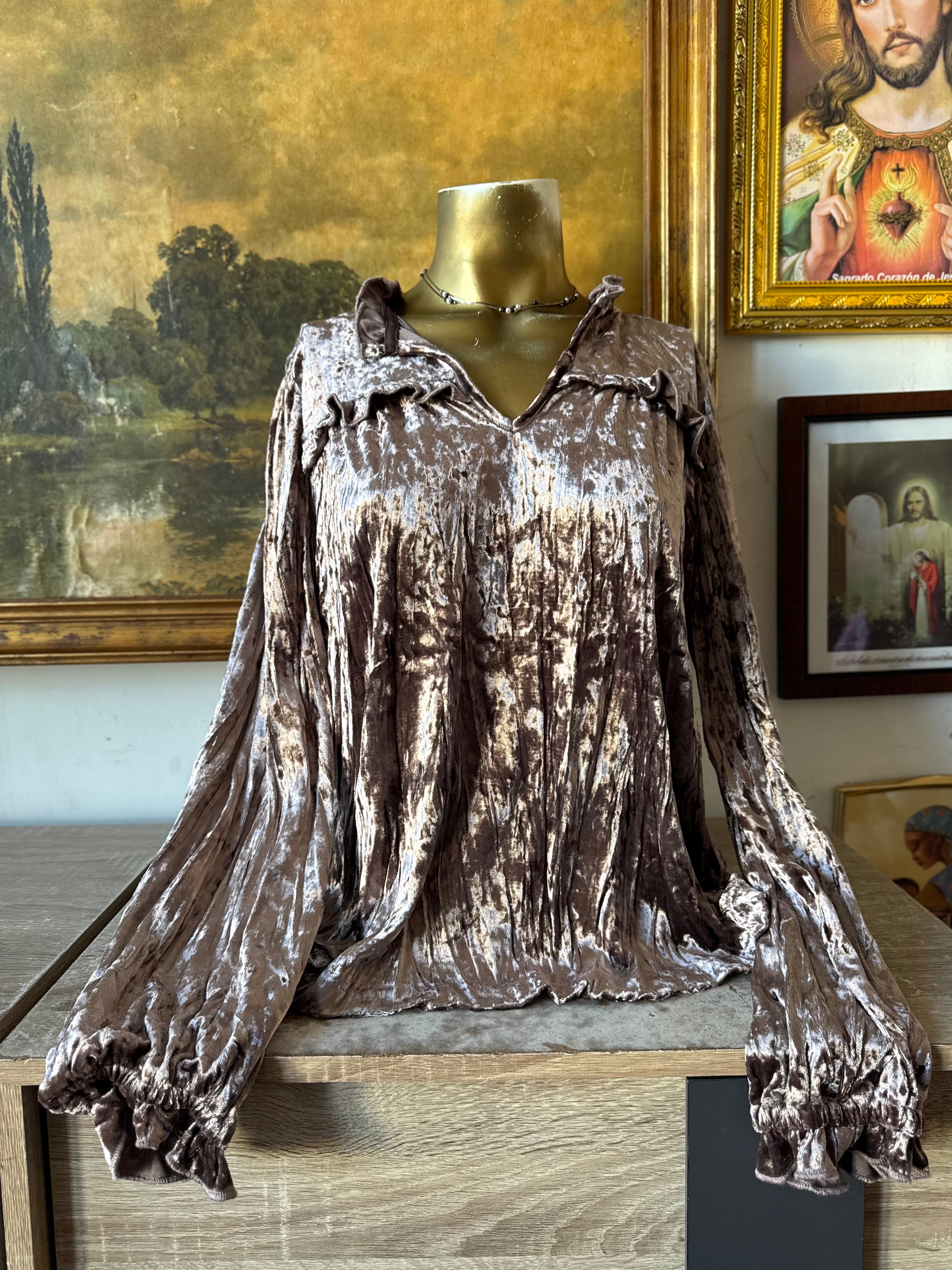 Crushed Velvet Whimsical Bell Sleeve V Neck Top Small by MYSTREE