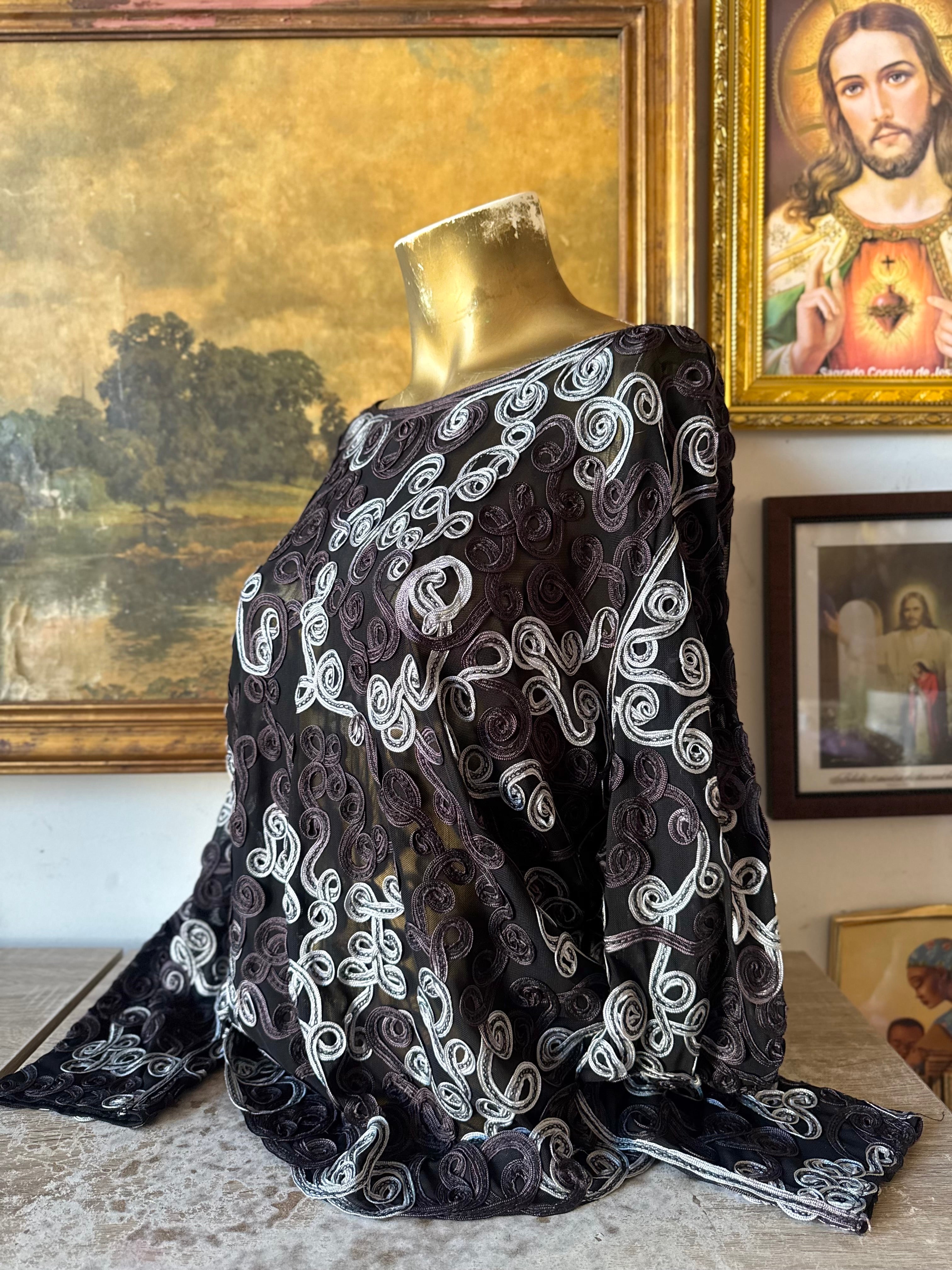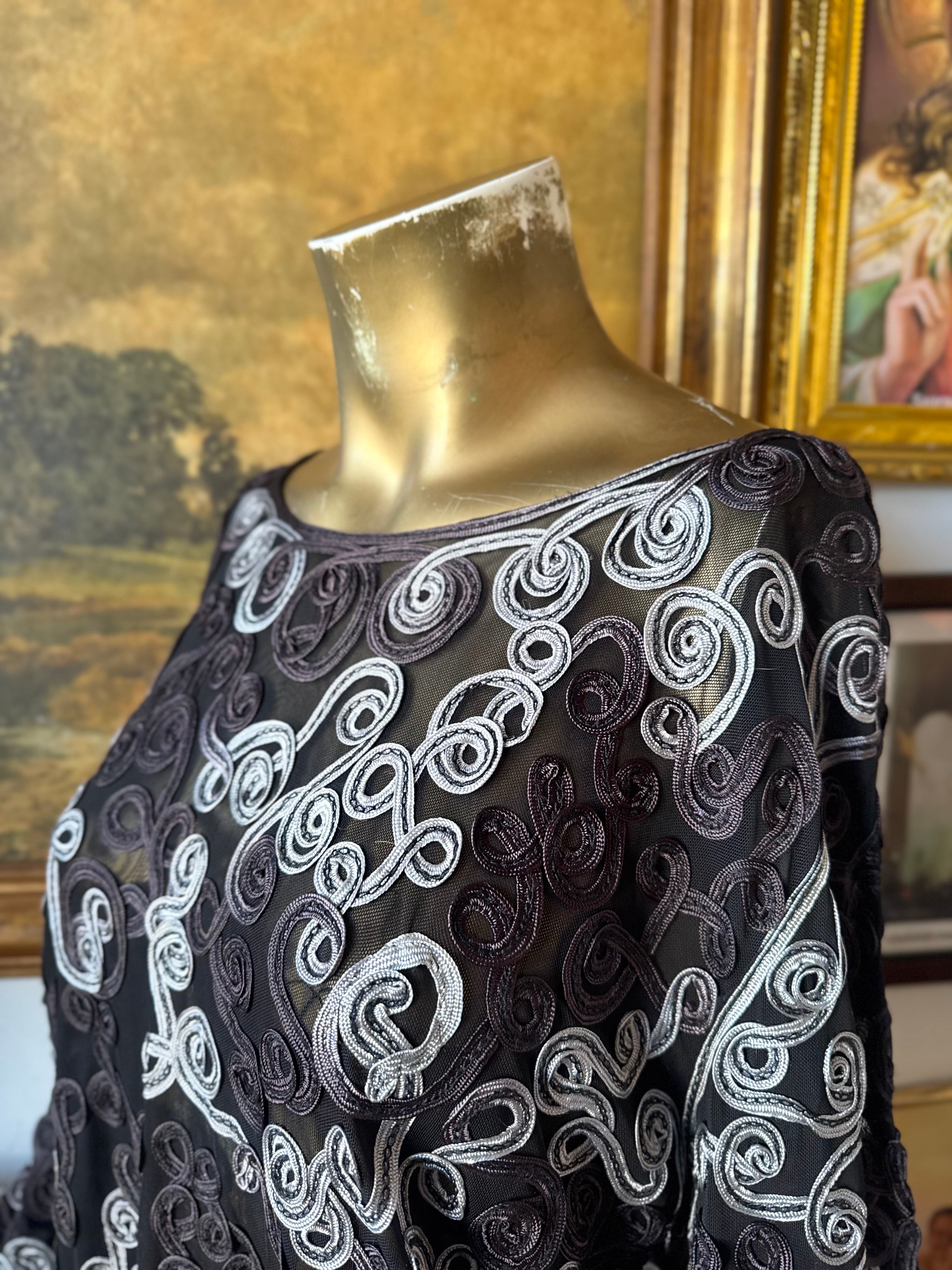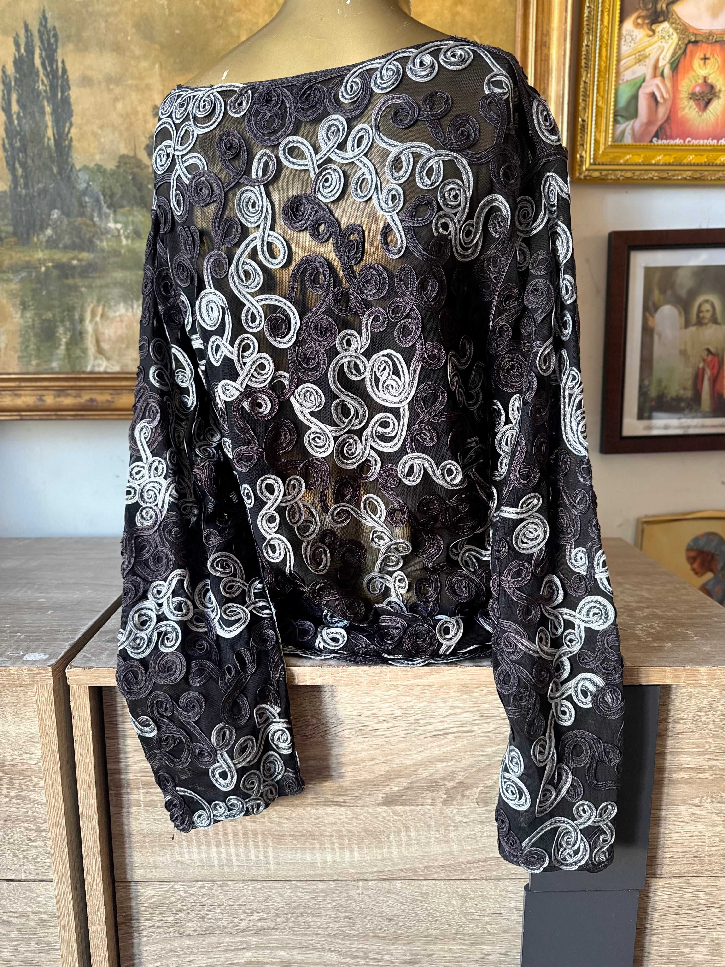 90s Abstract Sheer Embroidered Swirl long Sleeve Blouse Size Med by JAGUAR