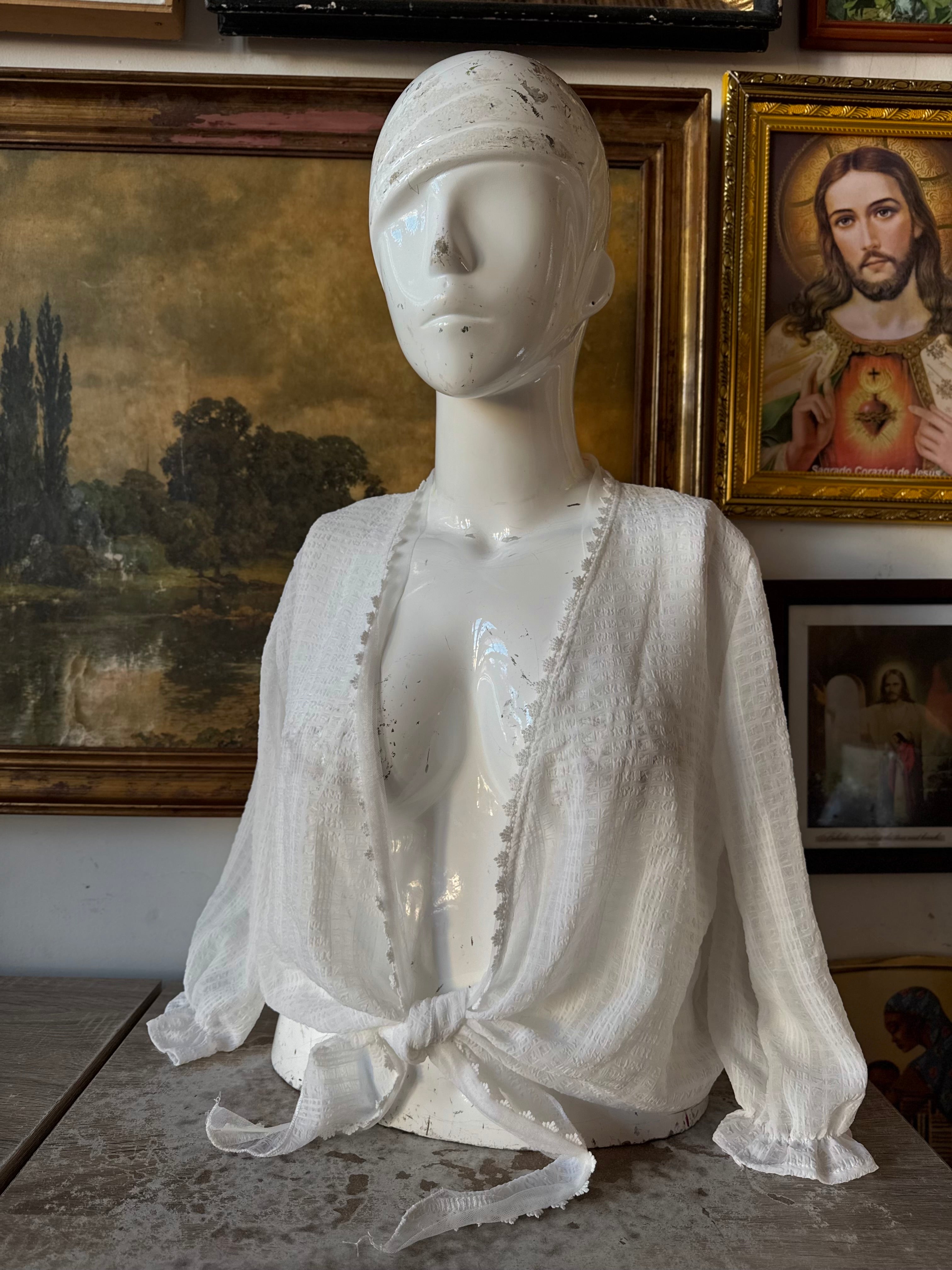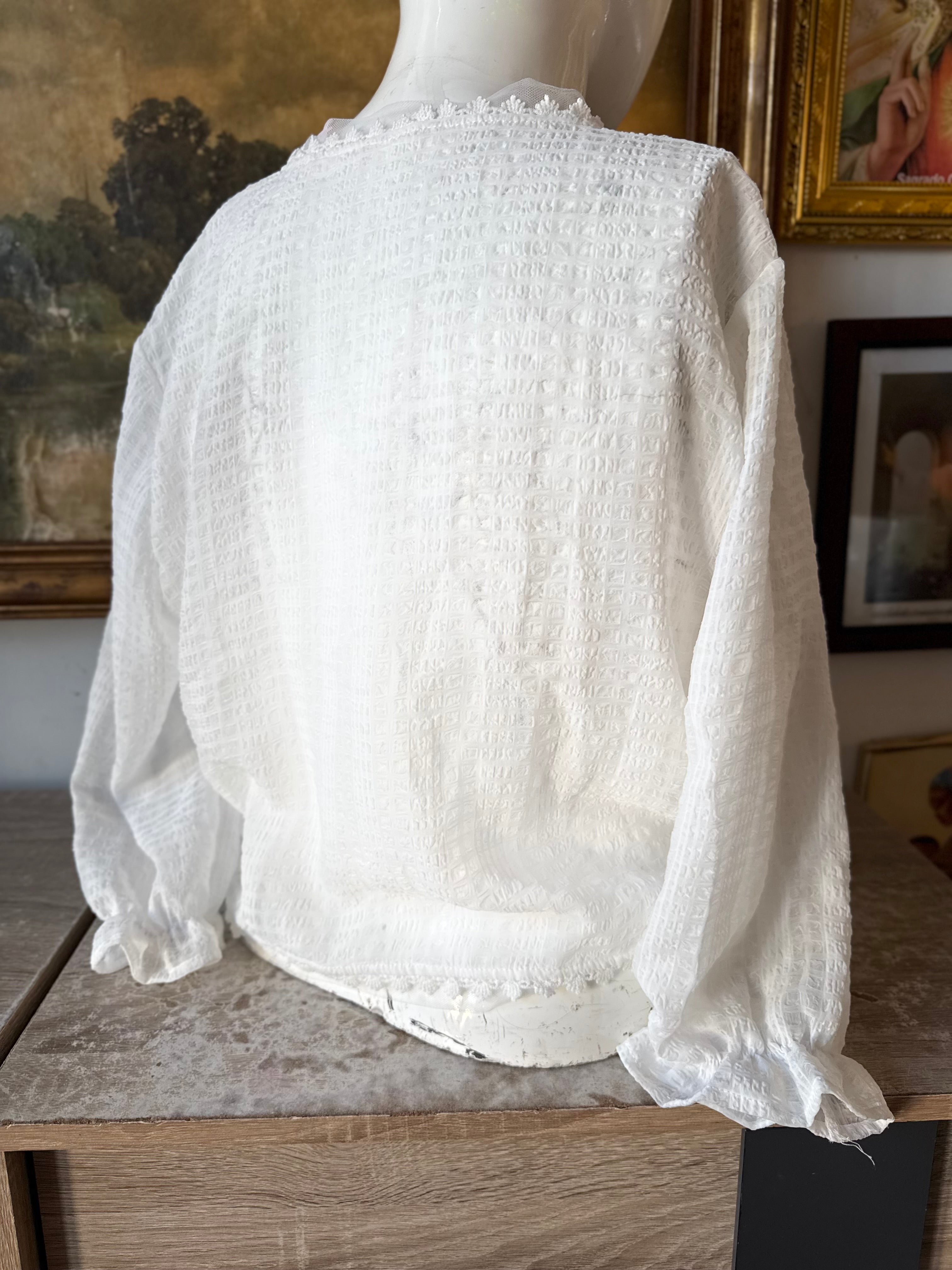 White Whimsical Tie Front Quarter Sleeve Top w Lace Size 2XL